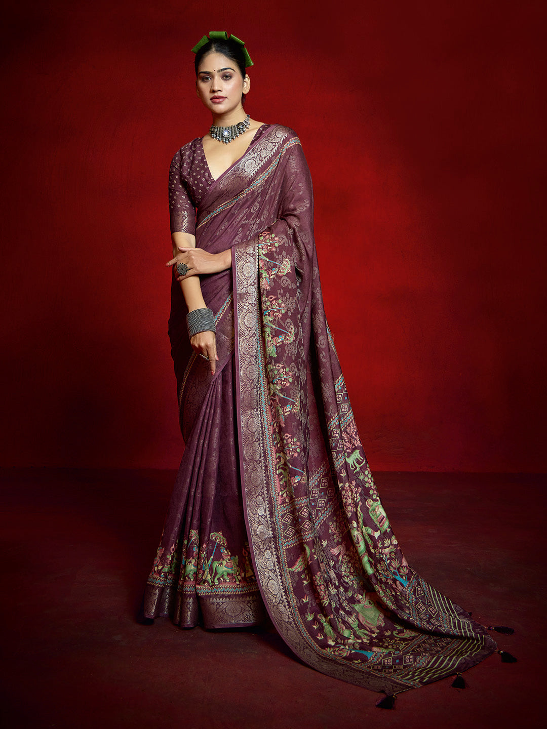 Note: The blouse shown in the pictures is just for Photoshoot purposes. The blouse you will get will be an attached running blouse.