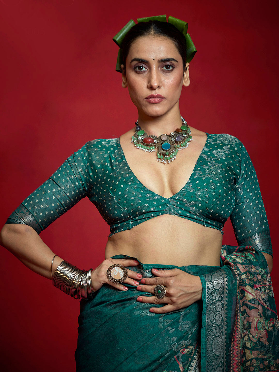 Note: The blouse shown in the pictures is just for Photoshoot purposes. The blouse you will get will be an attached running blouse.