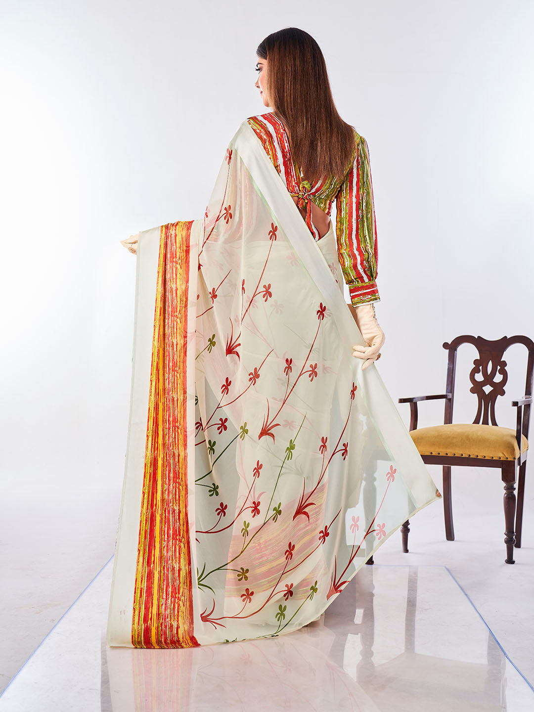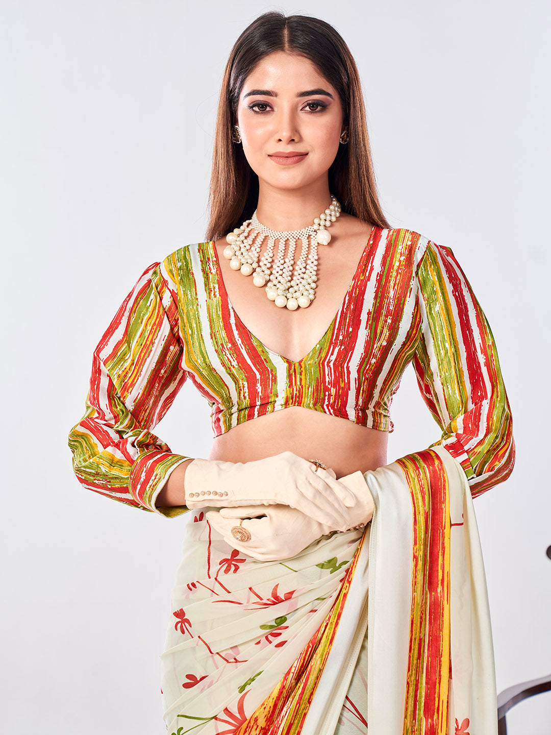 Note: The blouse shown in the pictures is just for Photoshoot purposes. The blouse you will get will be an attached running blouse.
