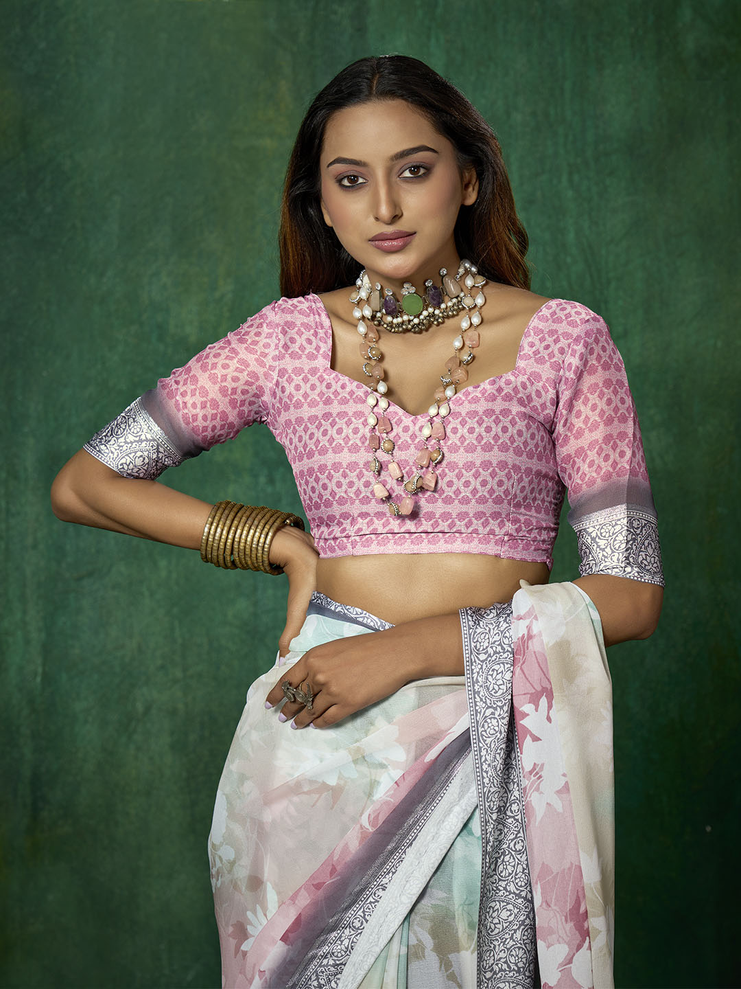Note: The blouse shown in the pictures is just for Photoshoot purposes. The blouse you will get will be an attached running blouse.
