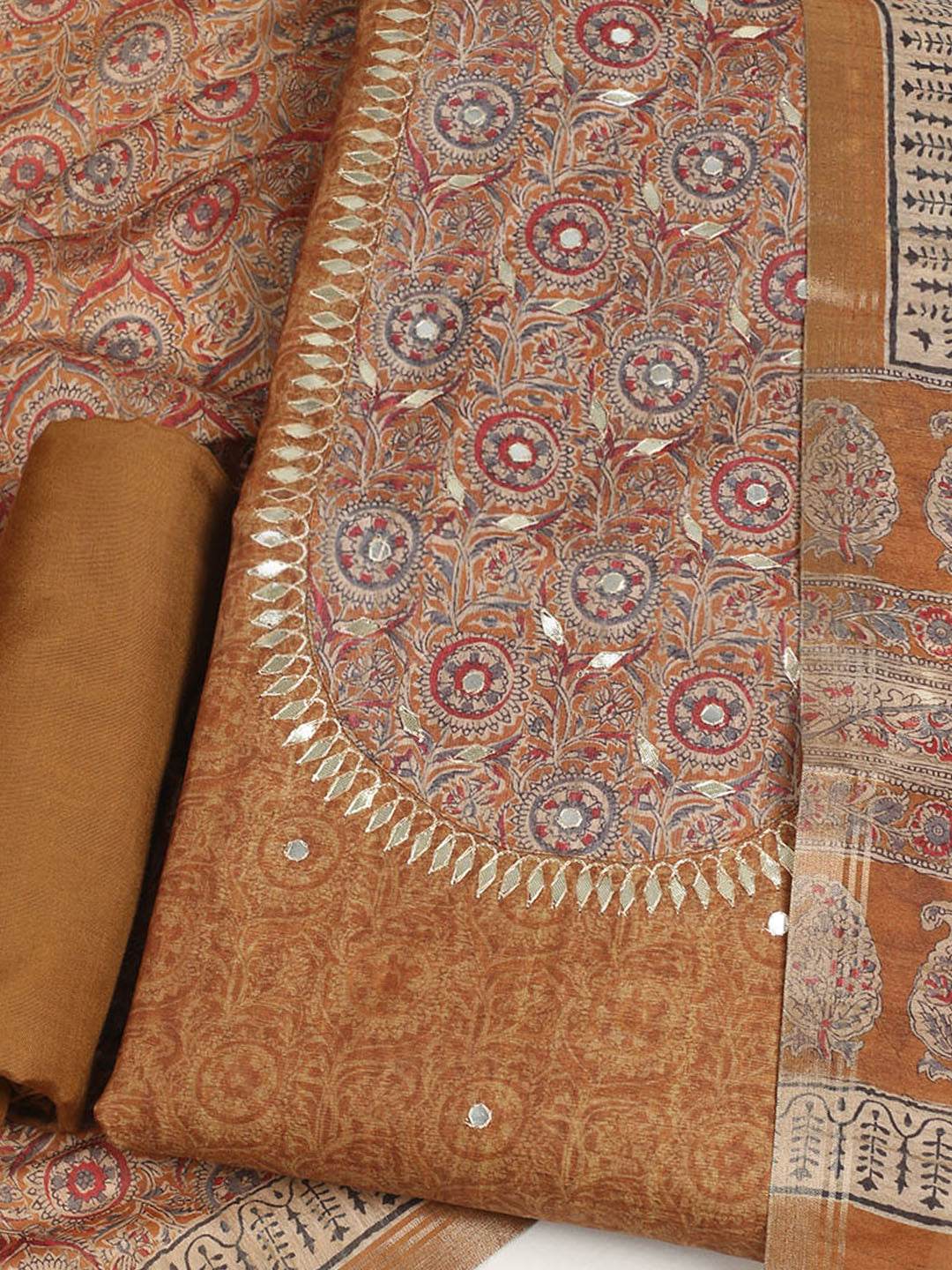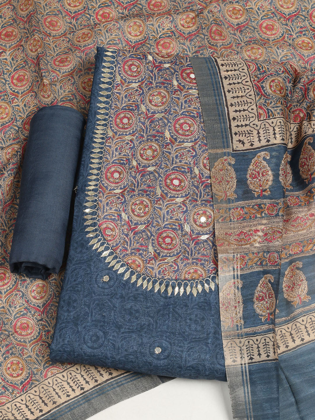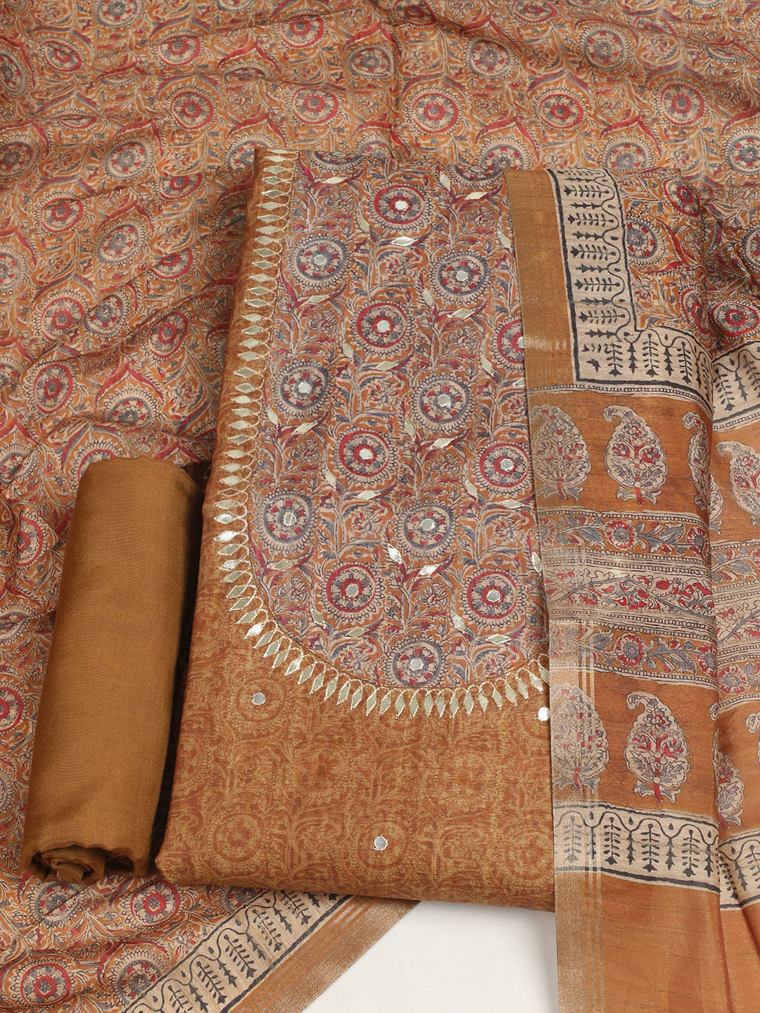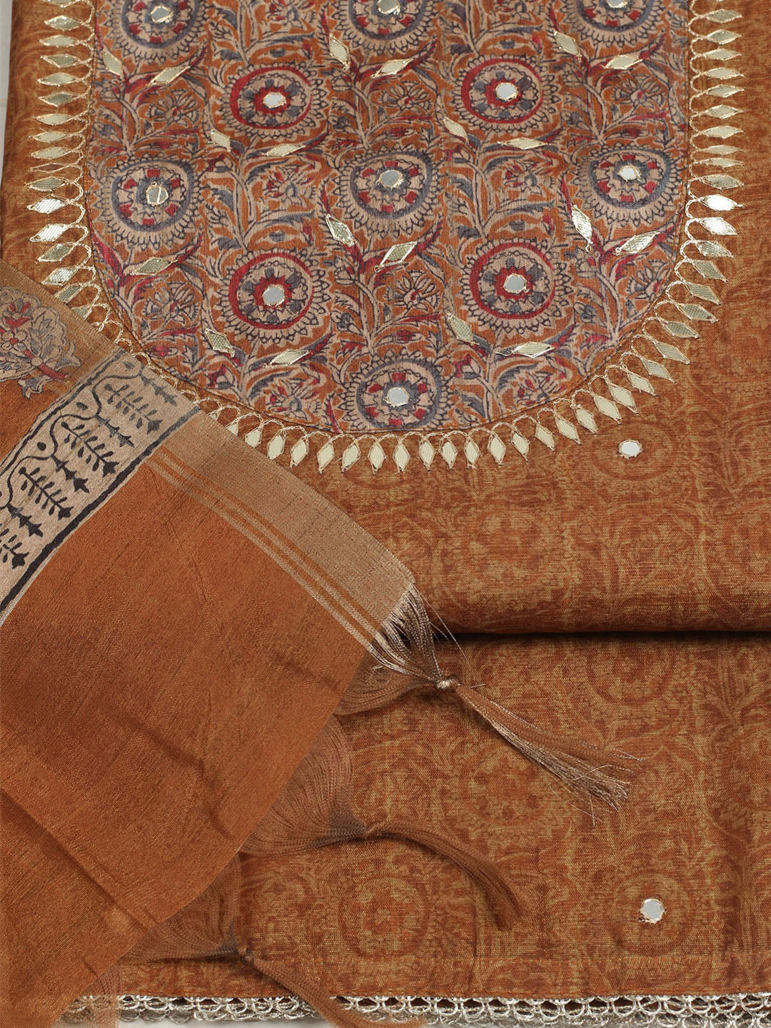 Embroidered Tussar Unstitched Suit With Dupatta