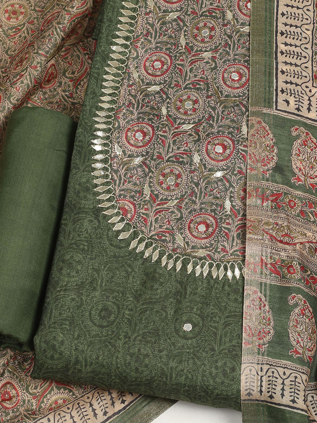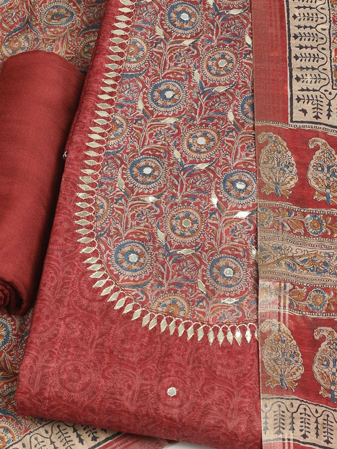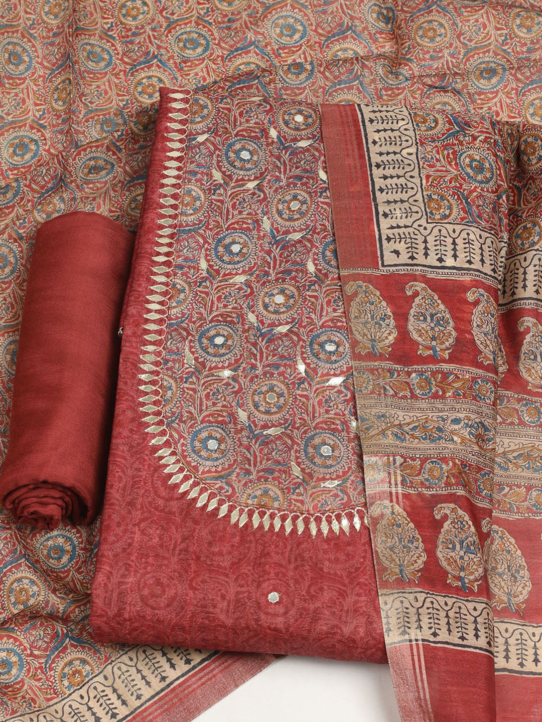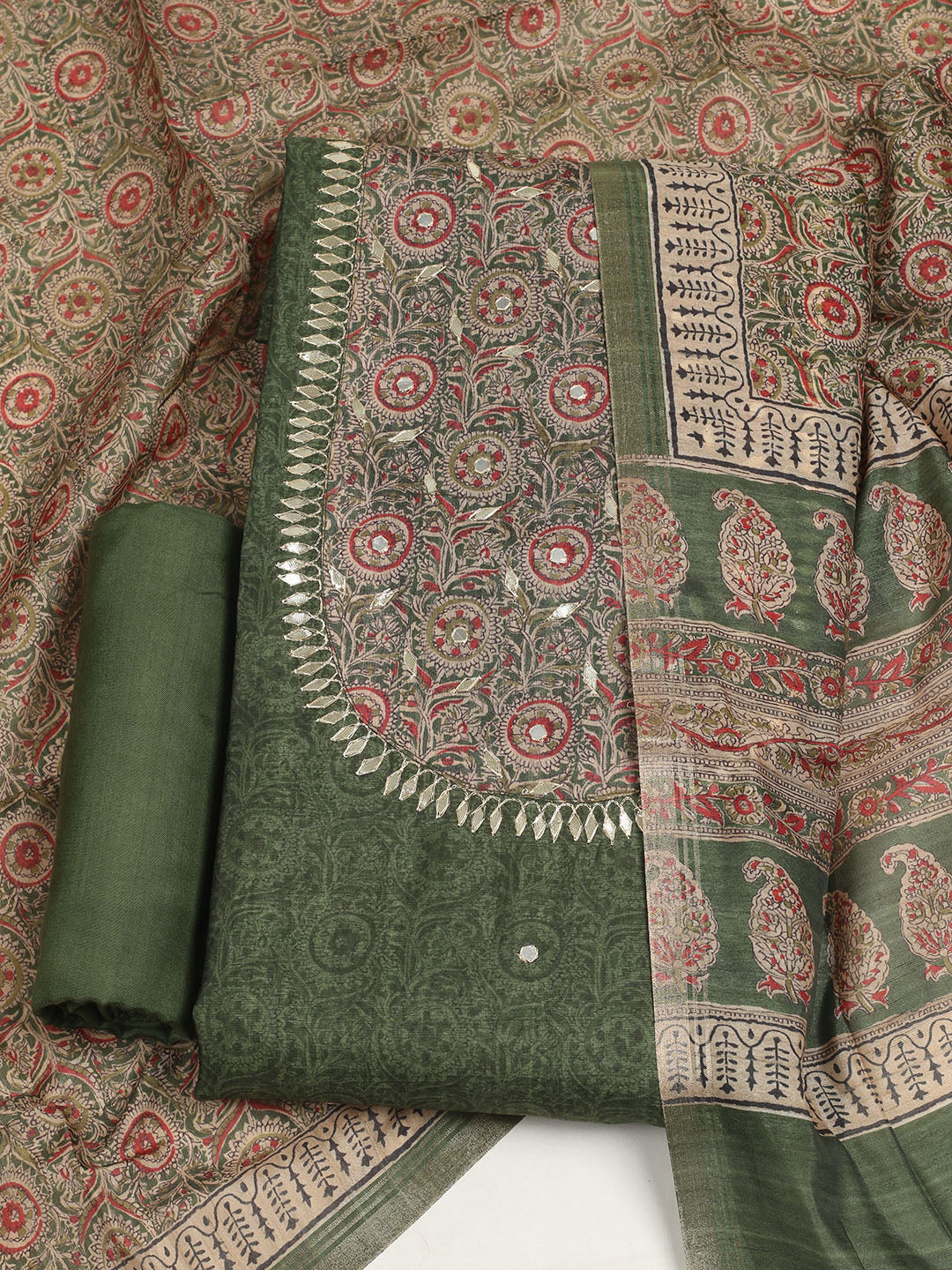 Embroidered Tussar Unstitched Suit With Dupatta