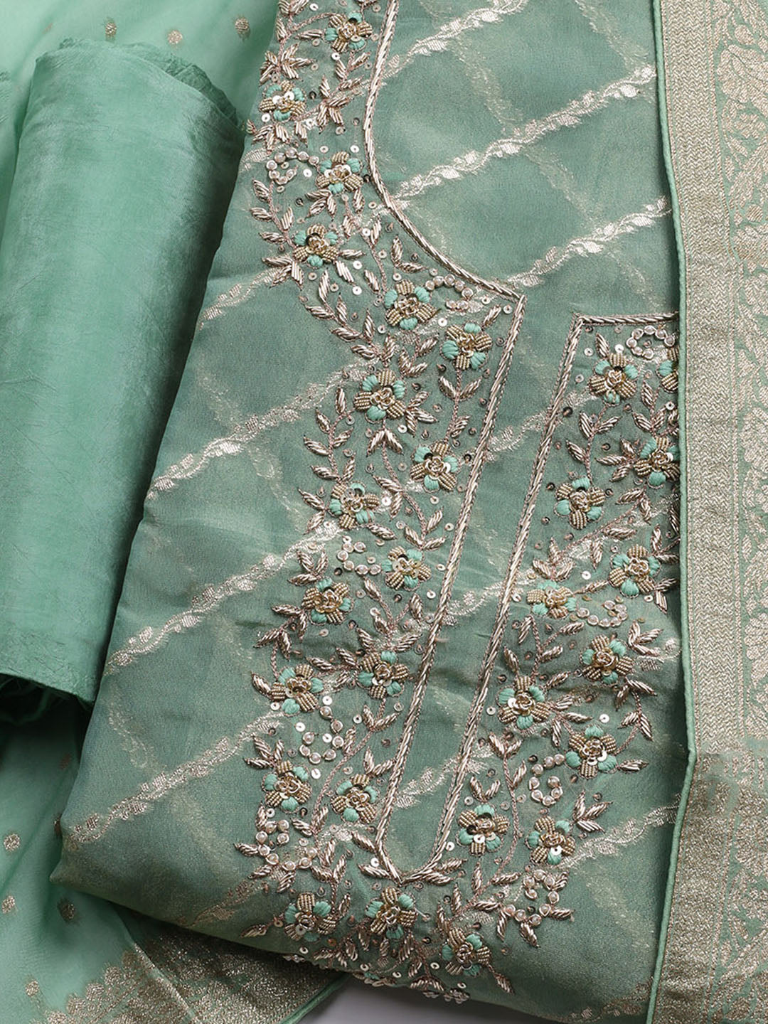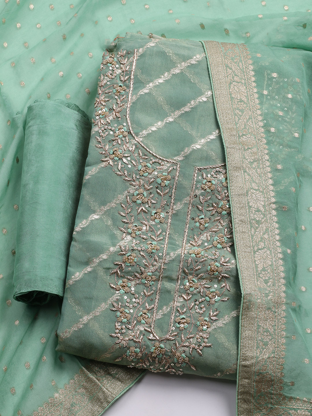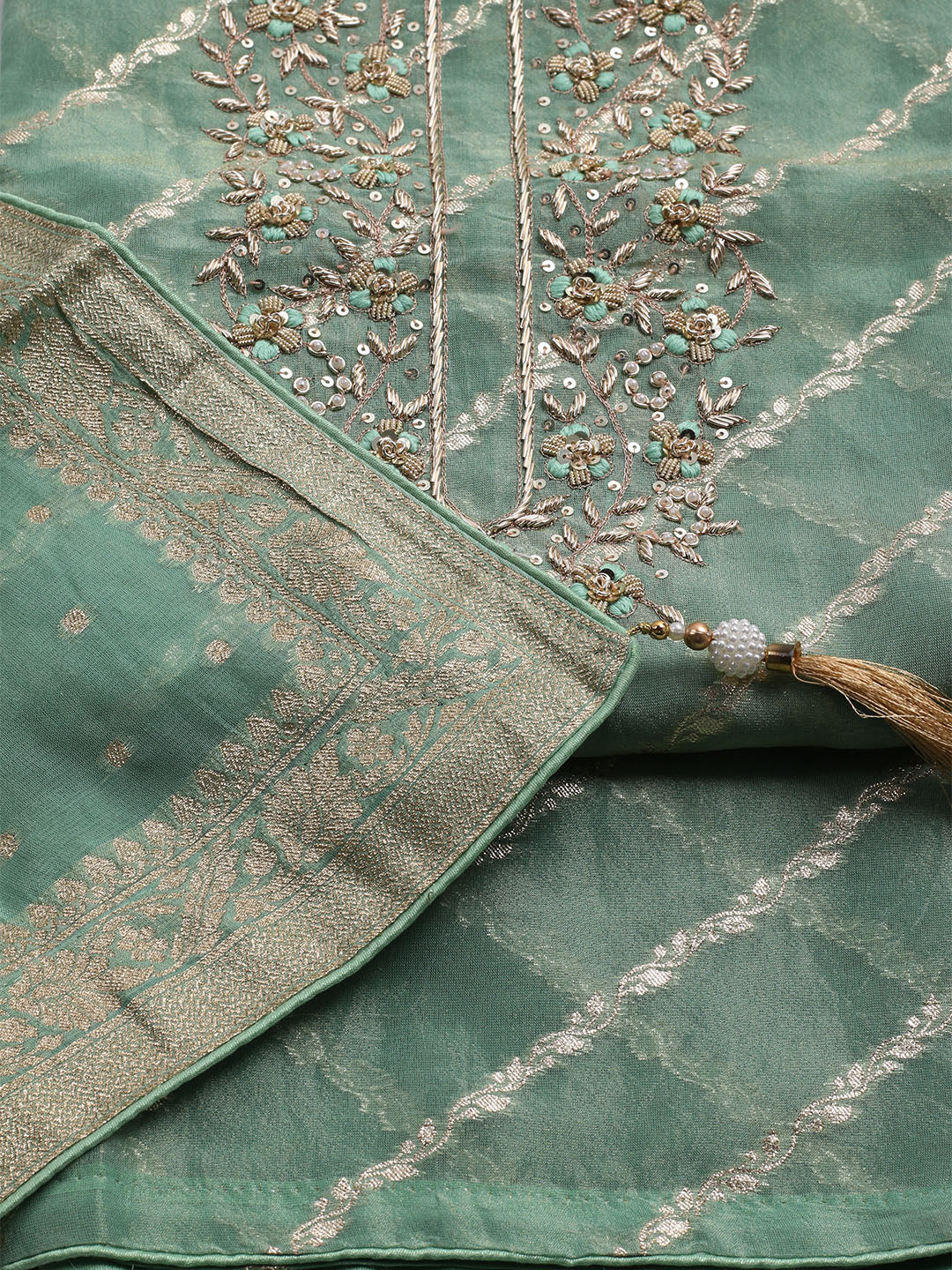 Embroidered Chanderi Unstitched Suit With Dupatta