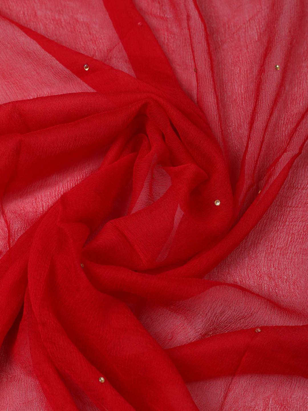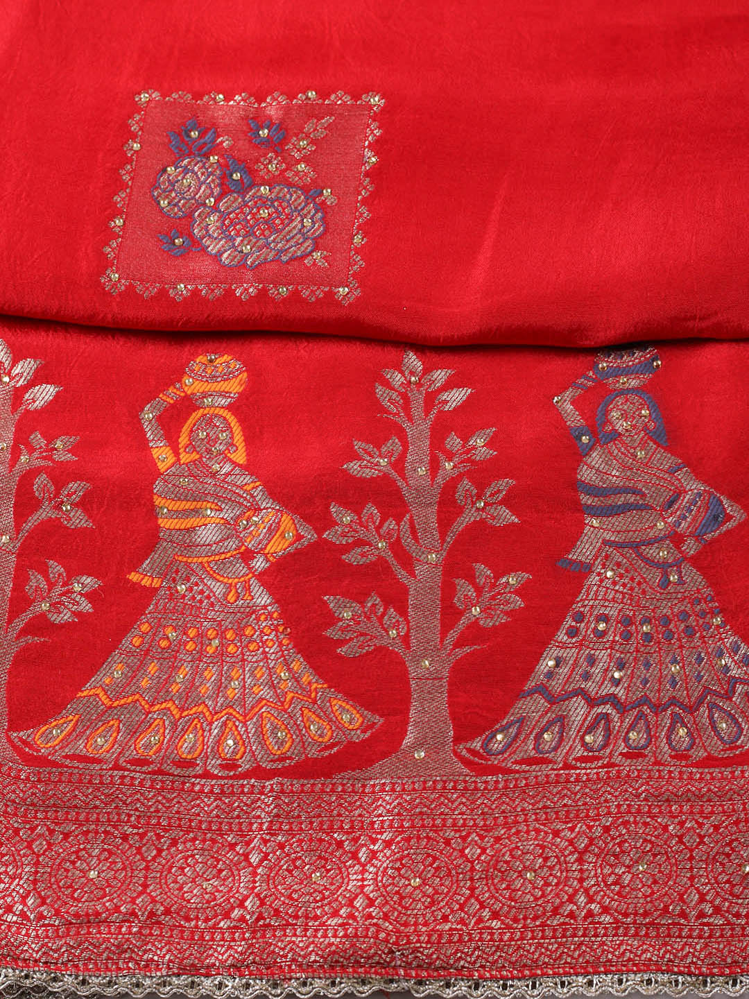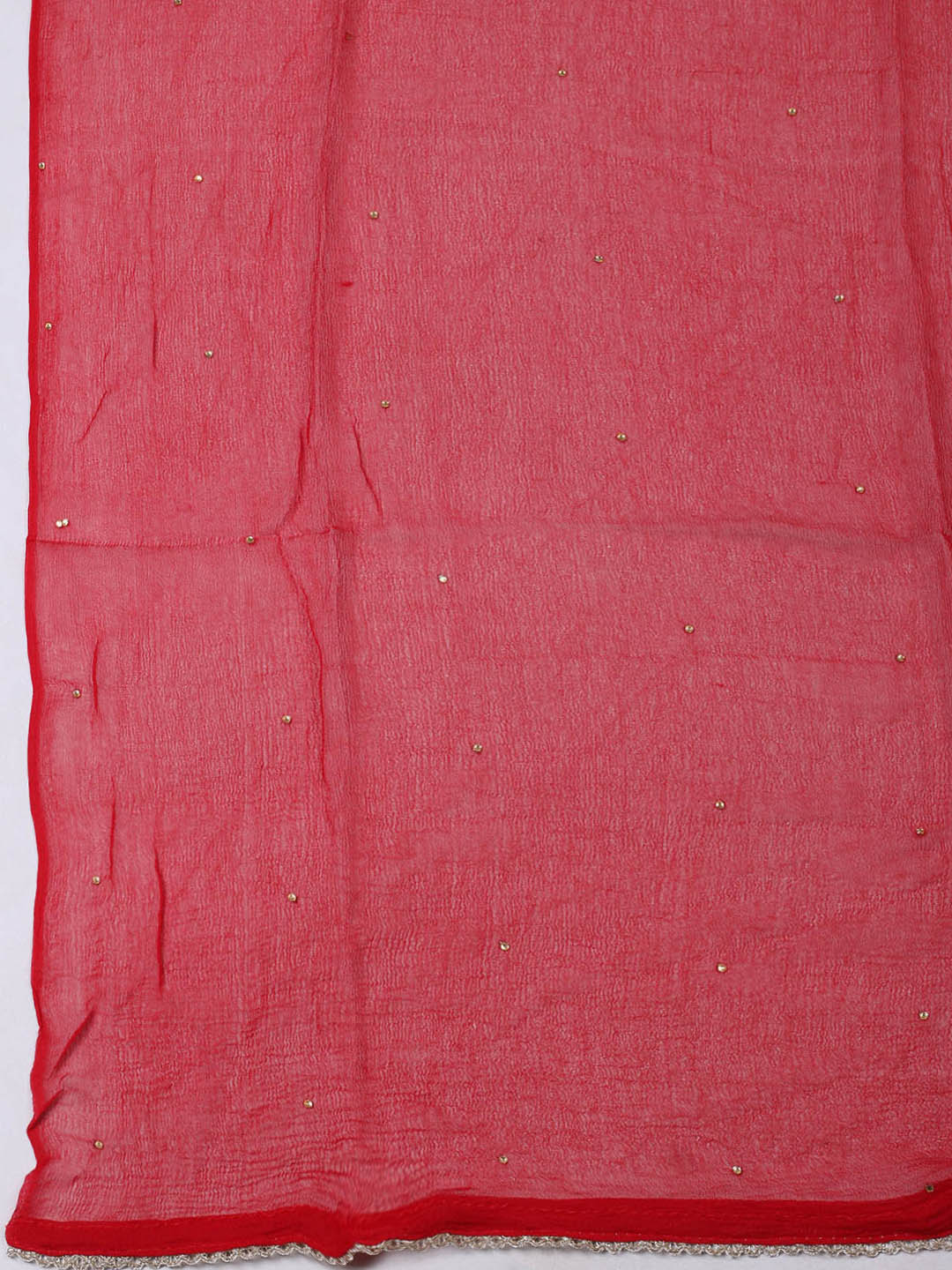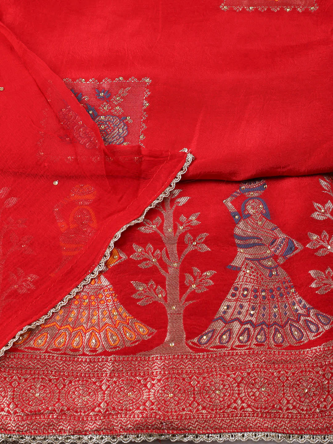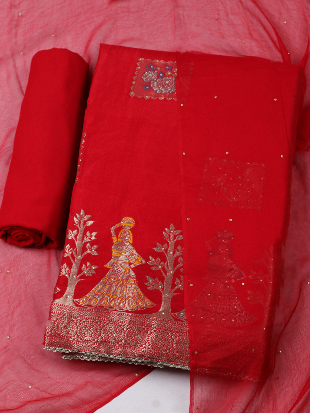 Woven Design Chanderi Red Unstitched Suit With Pant & Dupatta