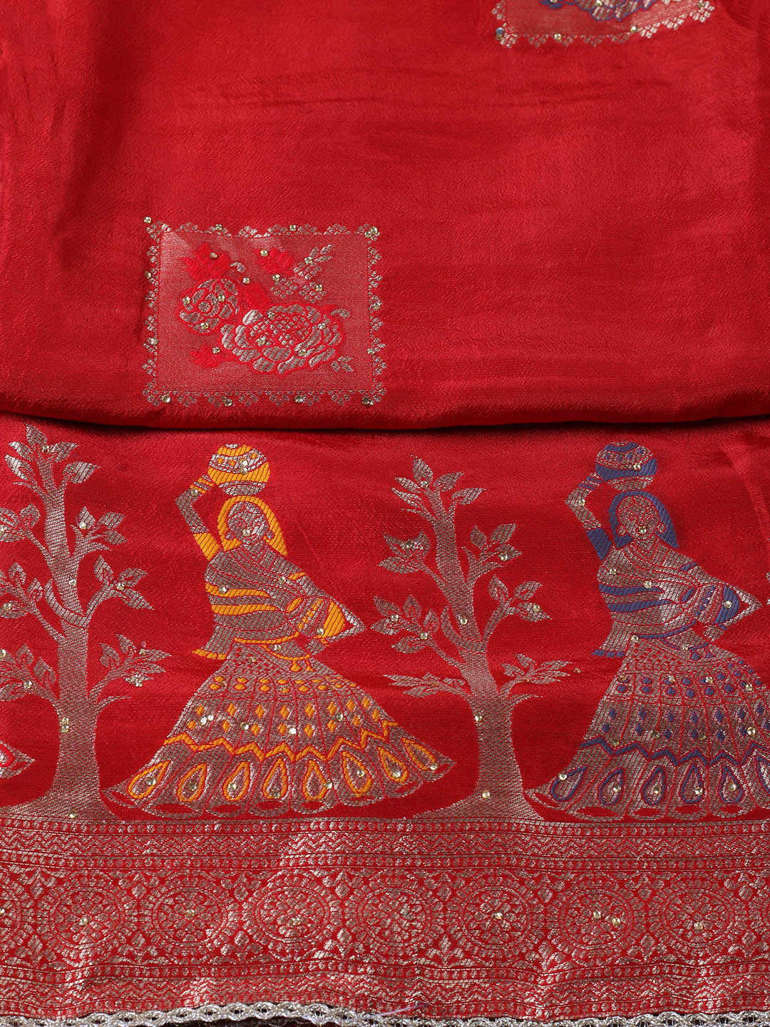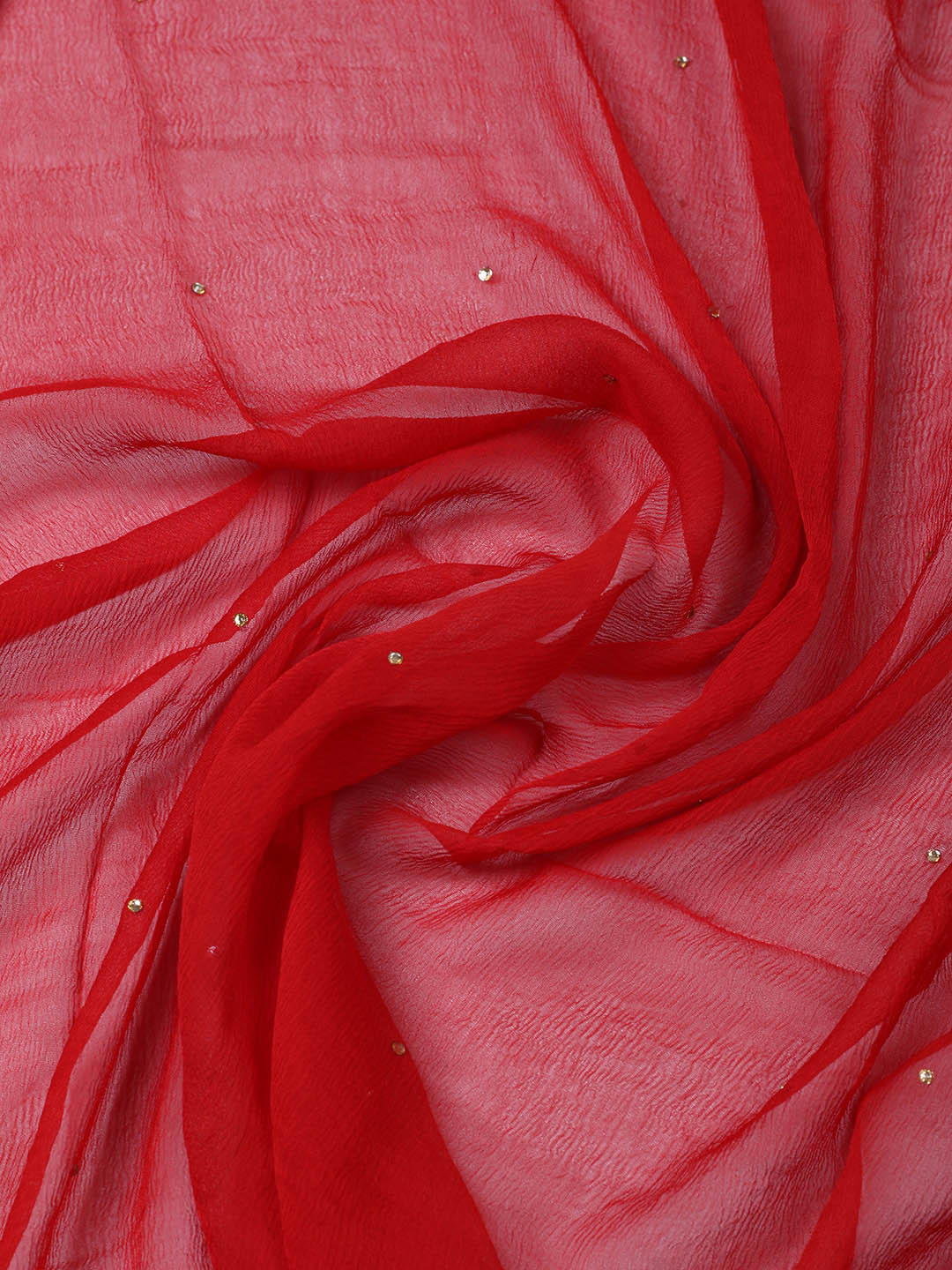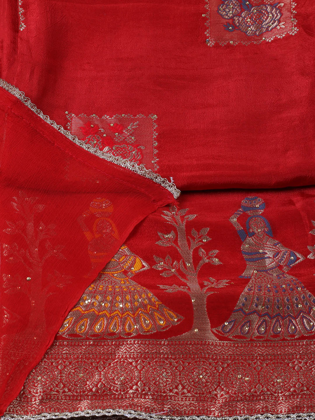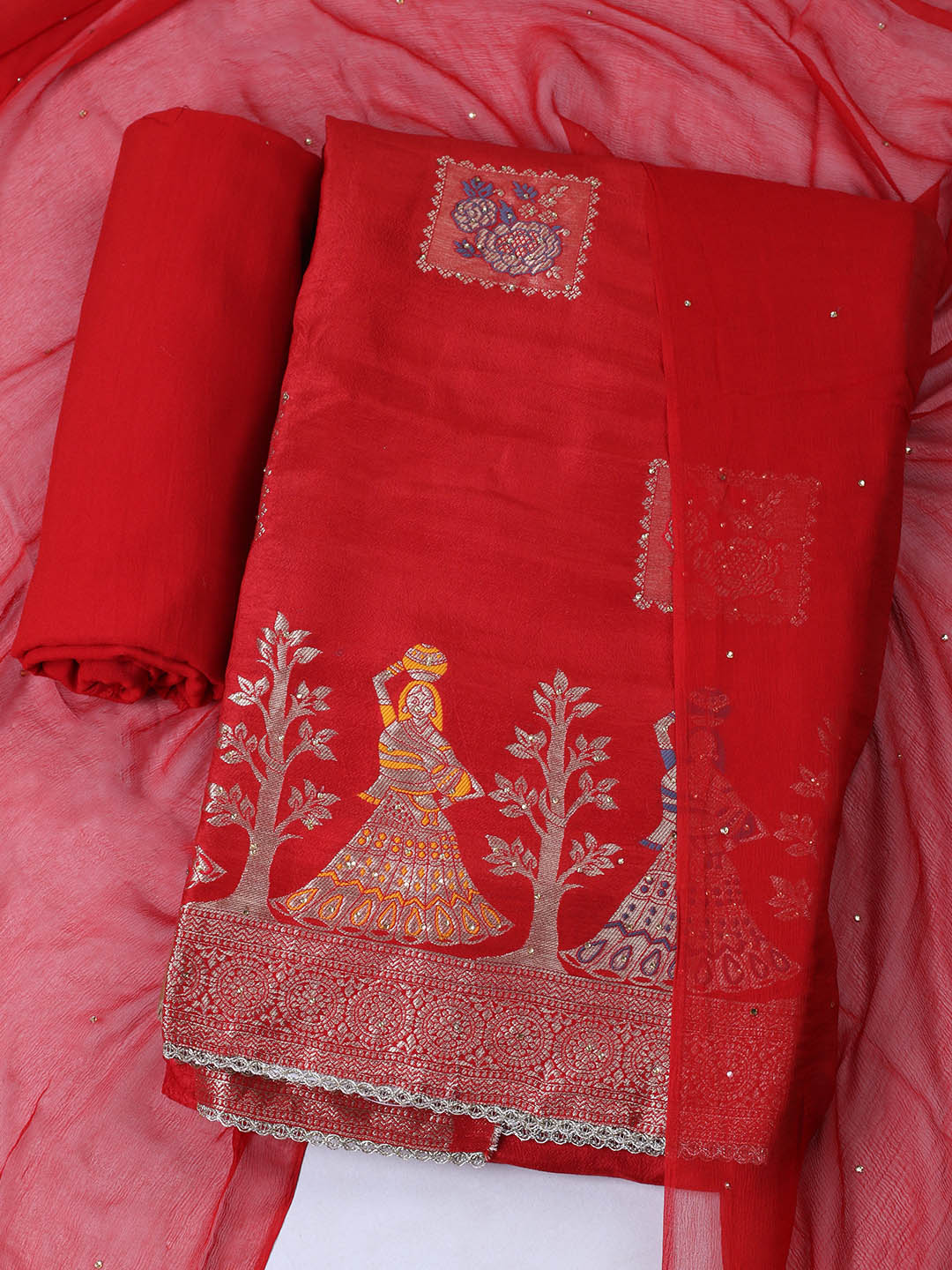 Woven Design Chanderi Rust Unstitched Suit With Pant & Dupatta