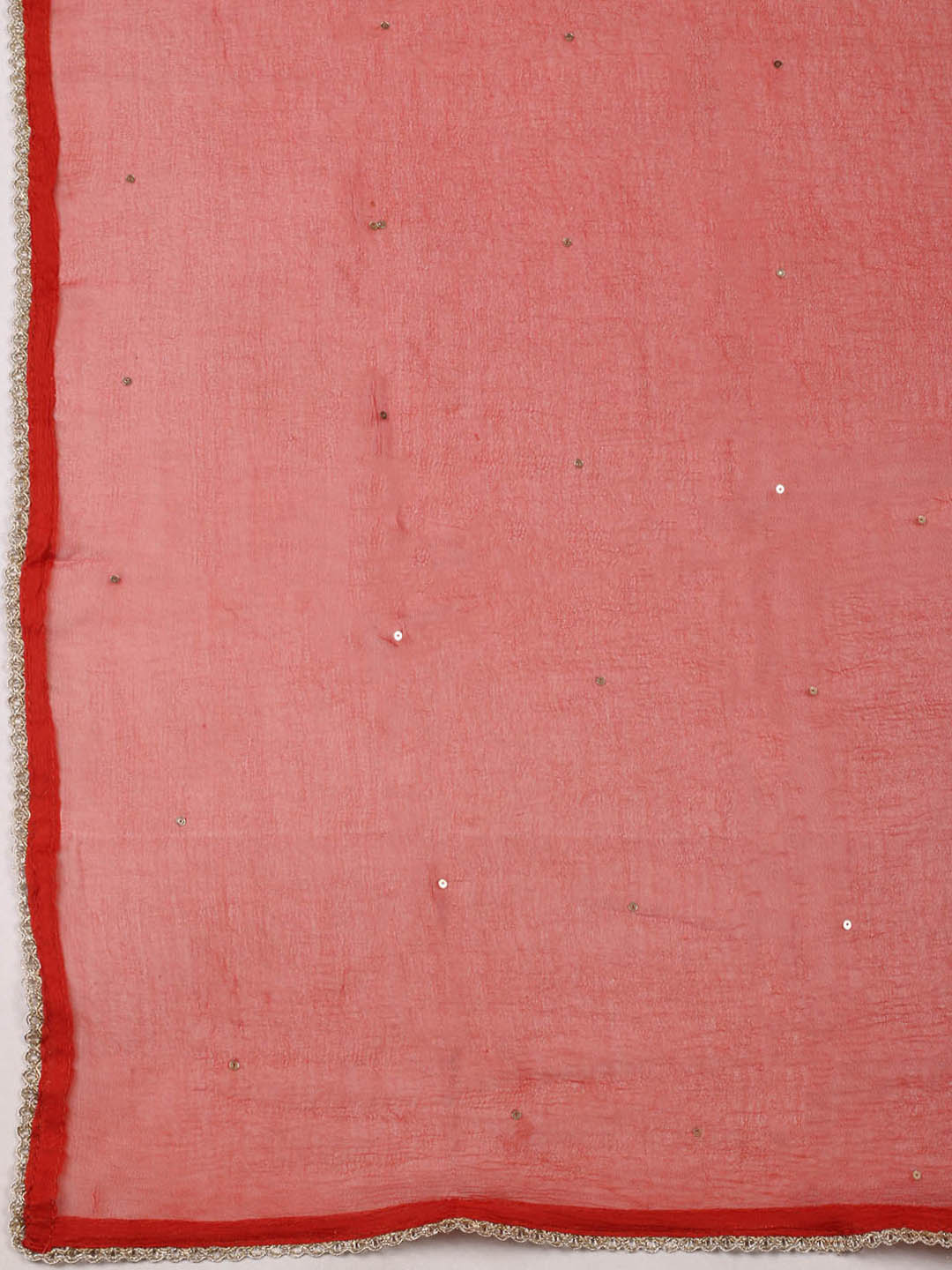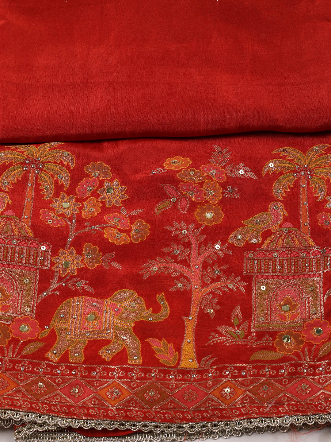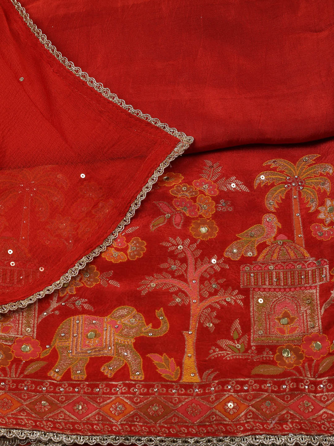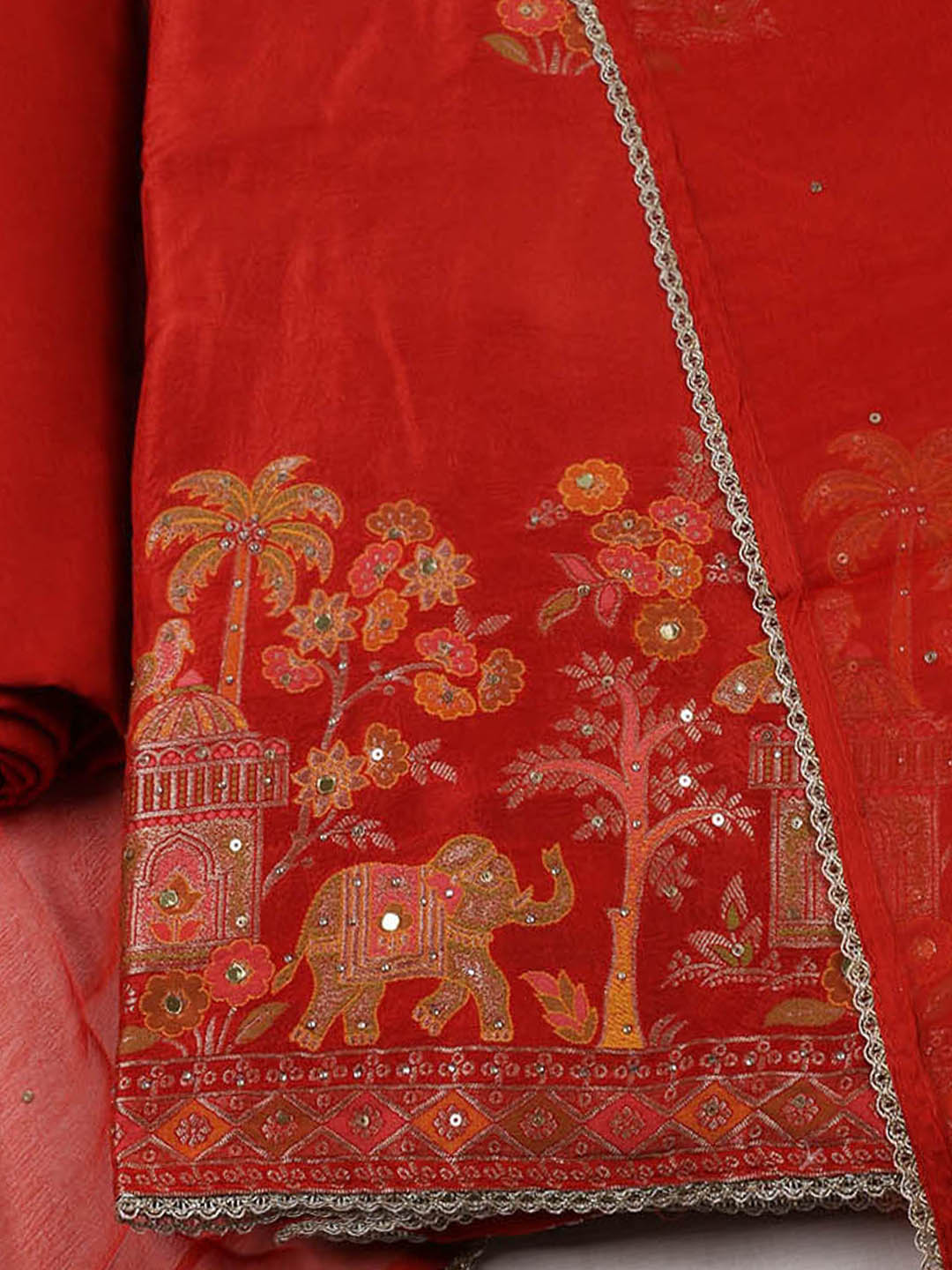 Woven Design Chanderi Rust Unstitched Suit With Pant & Dupatta