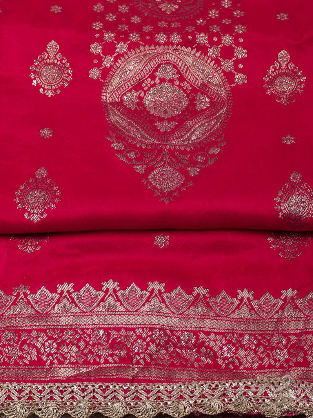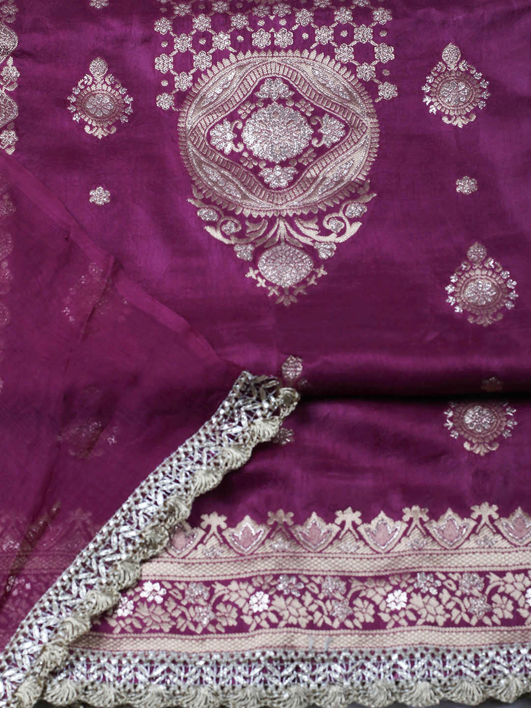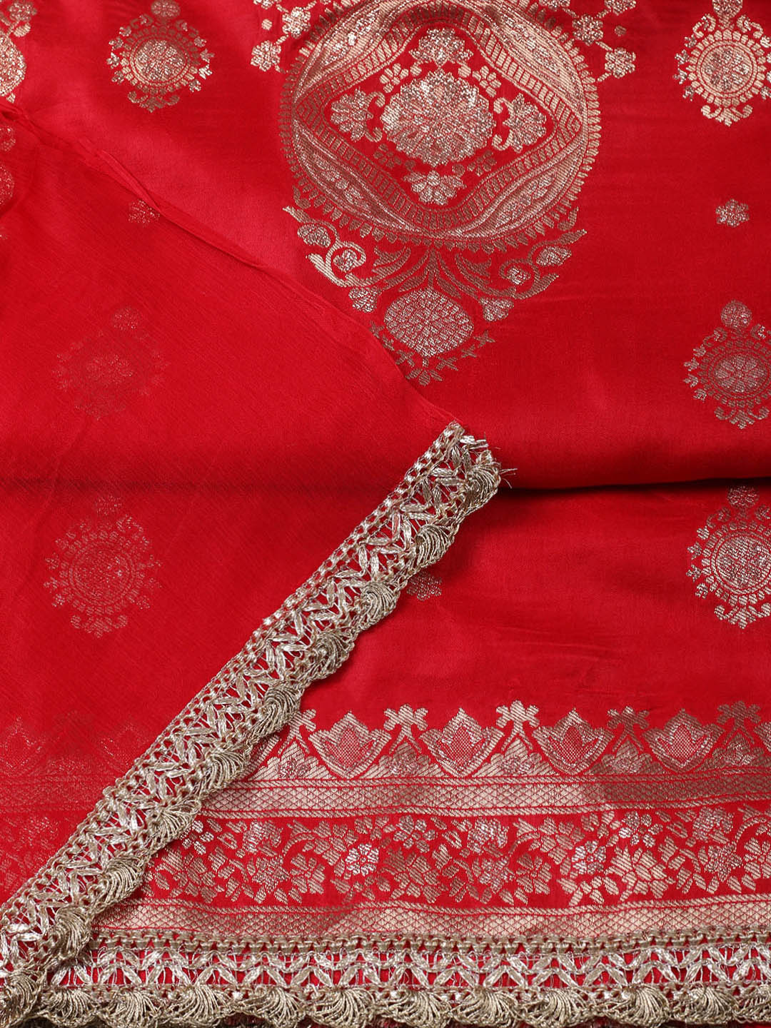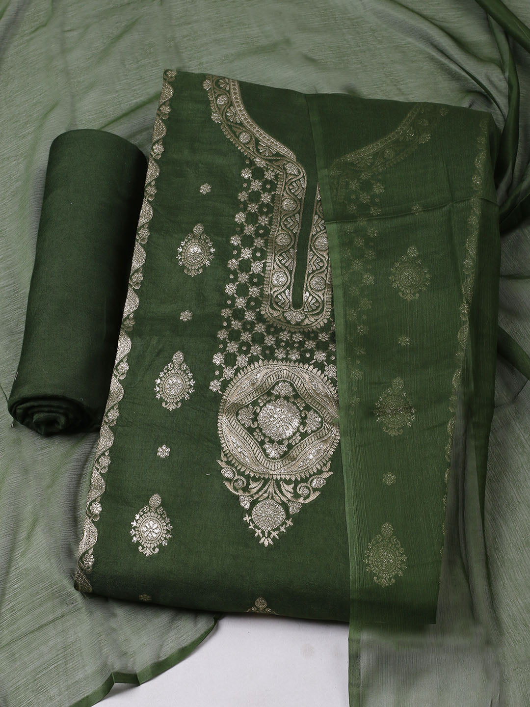 Woven Design Chanderi Unstitched Suit With Pant & Dupatta