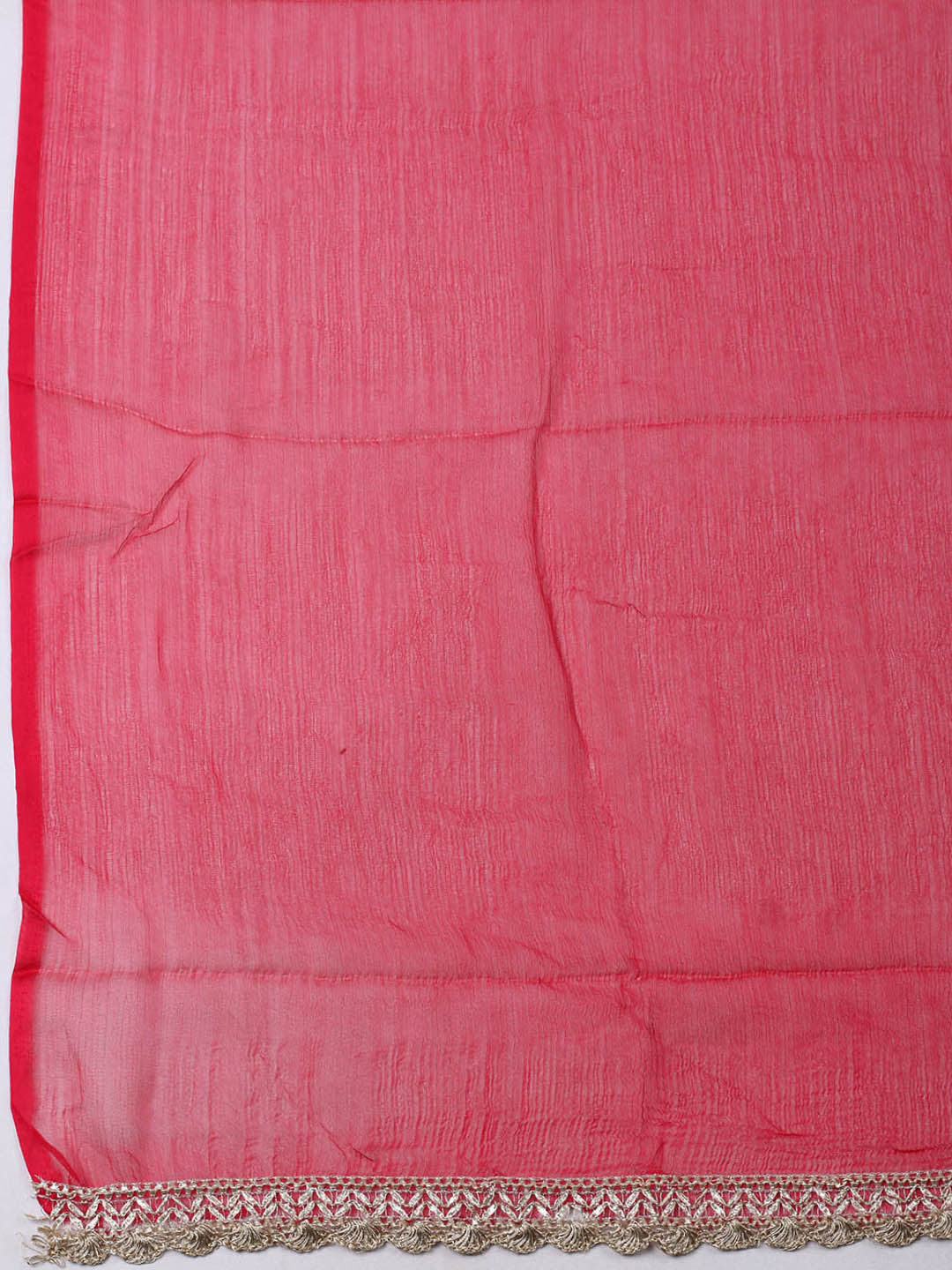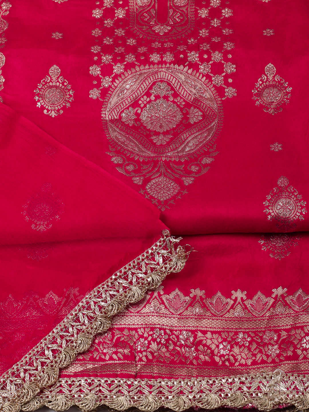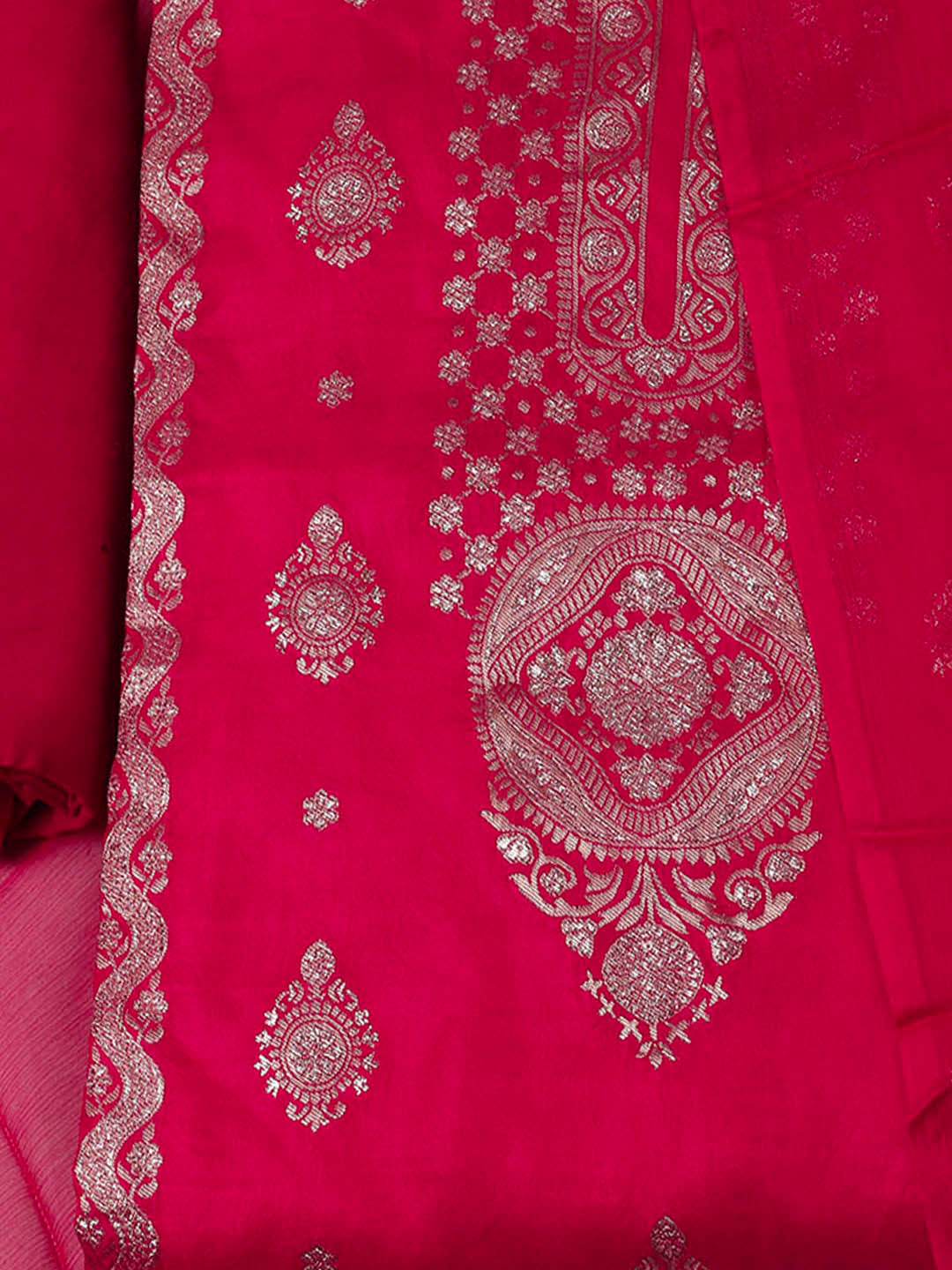 Woven Design Chanderi Rani Unstitched Suit With Pant & Dupatta