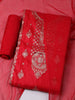 Woven Design Chanderi Red Unstitched Suit With Pant & Dupatta