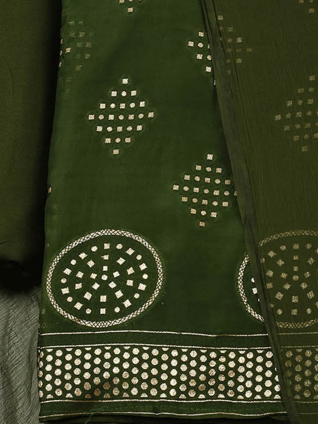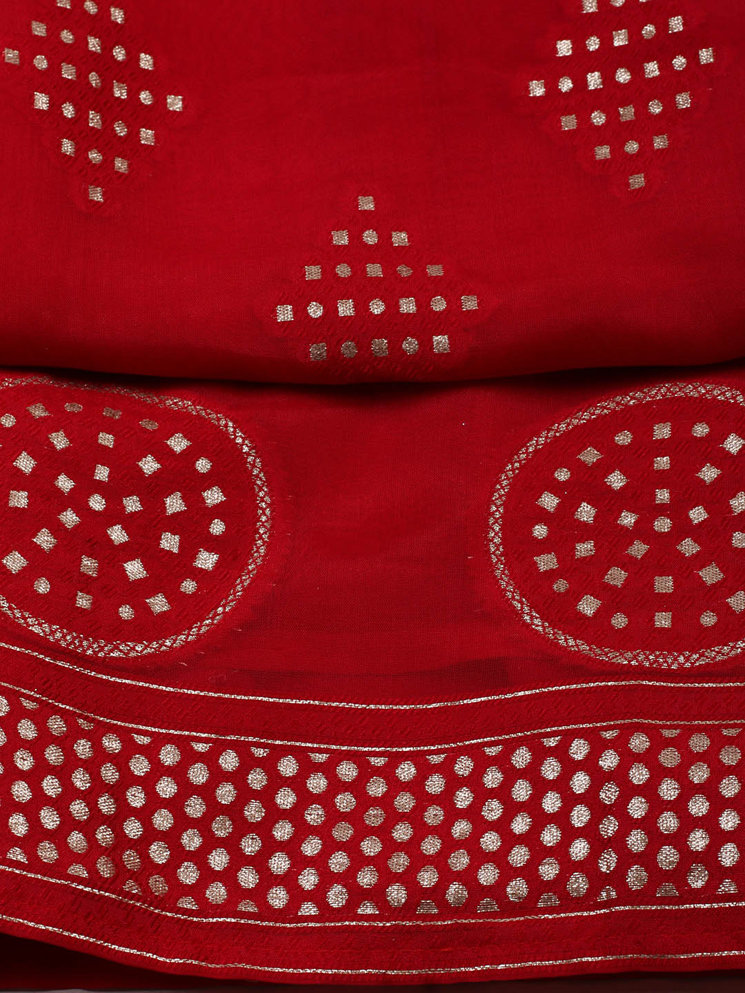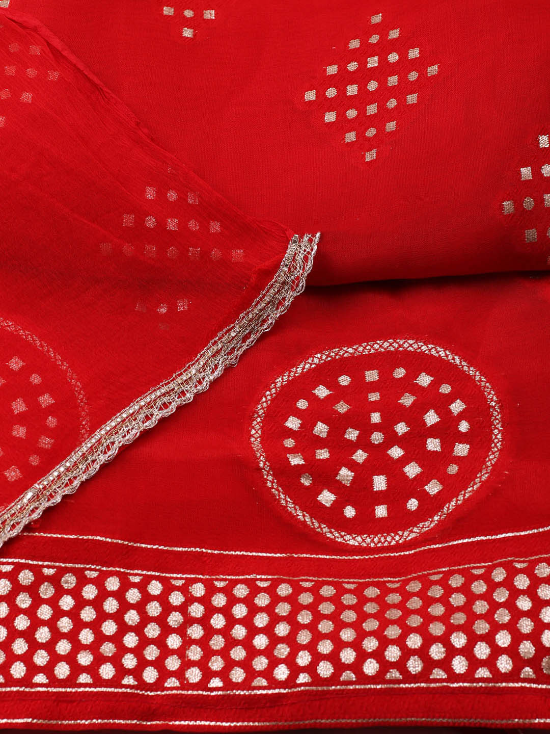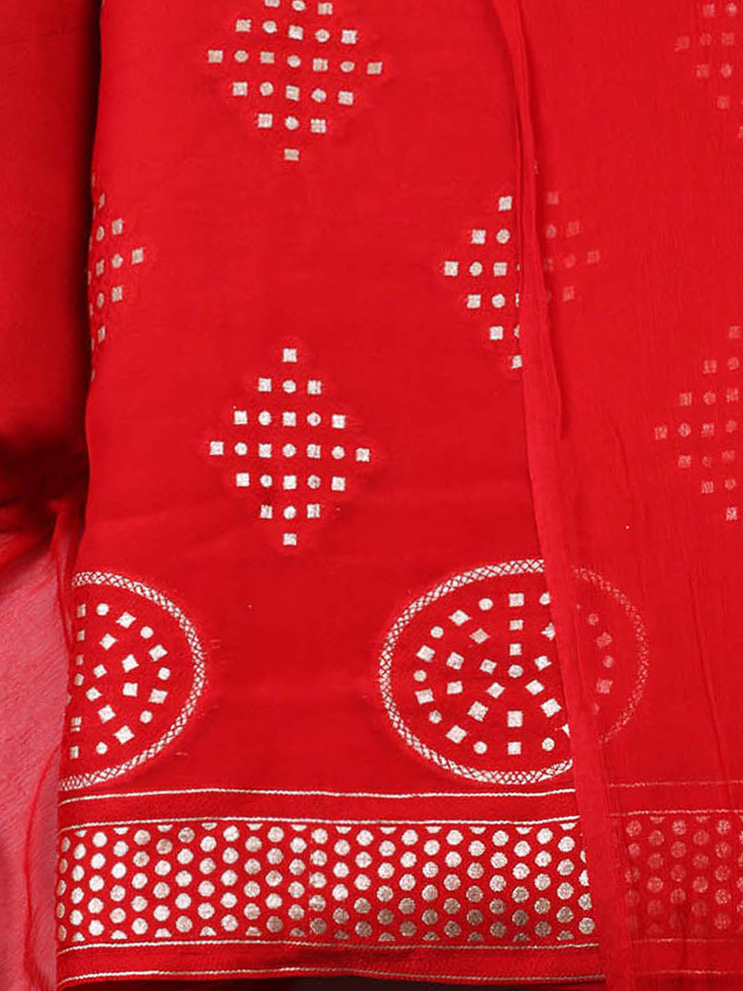 Embroidered Chanderi Unstitched Suit With Pant & Dupatta