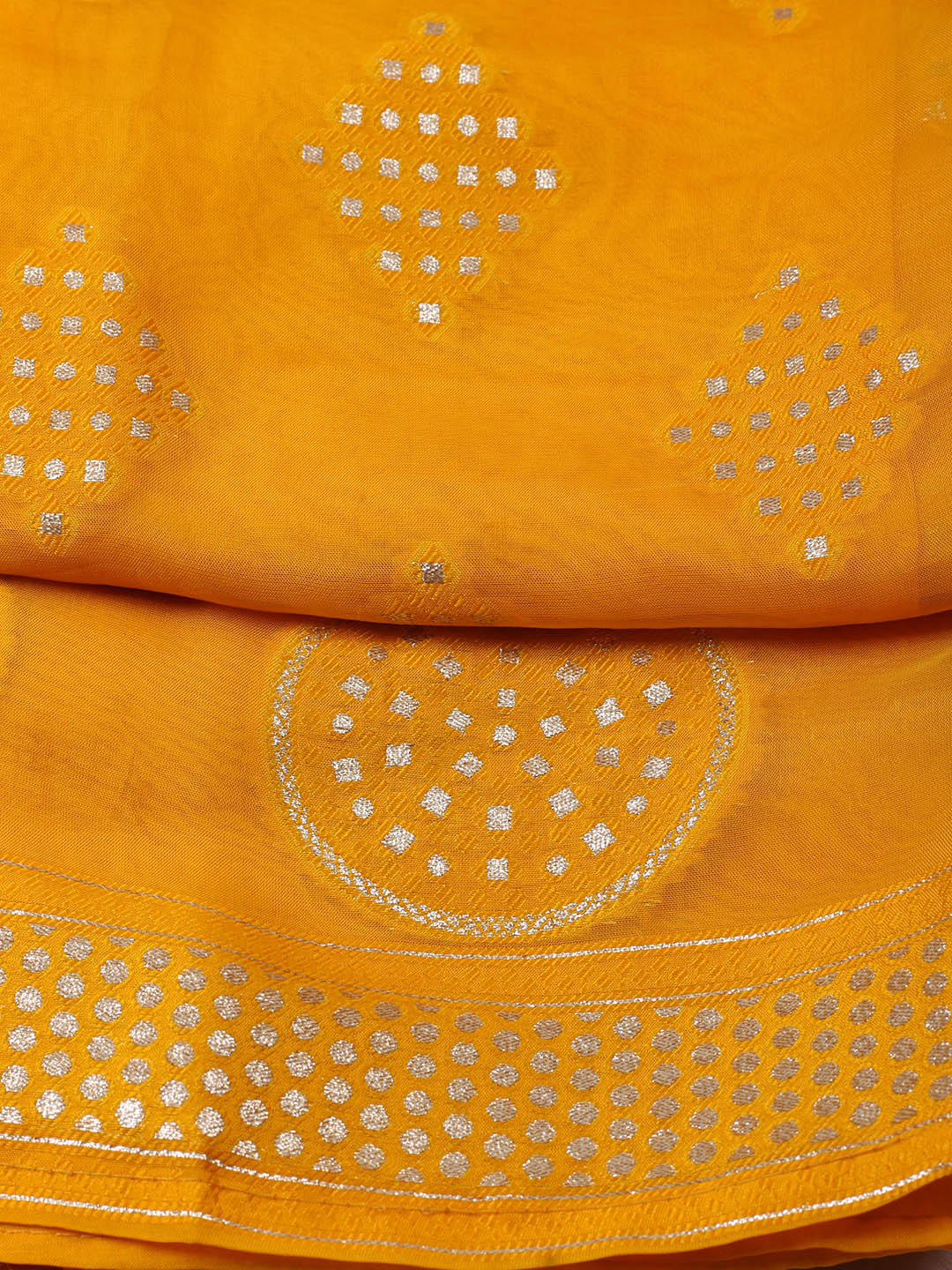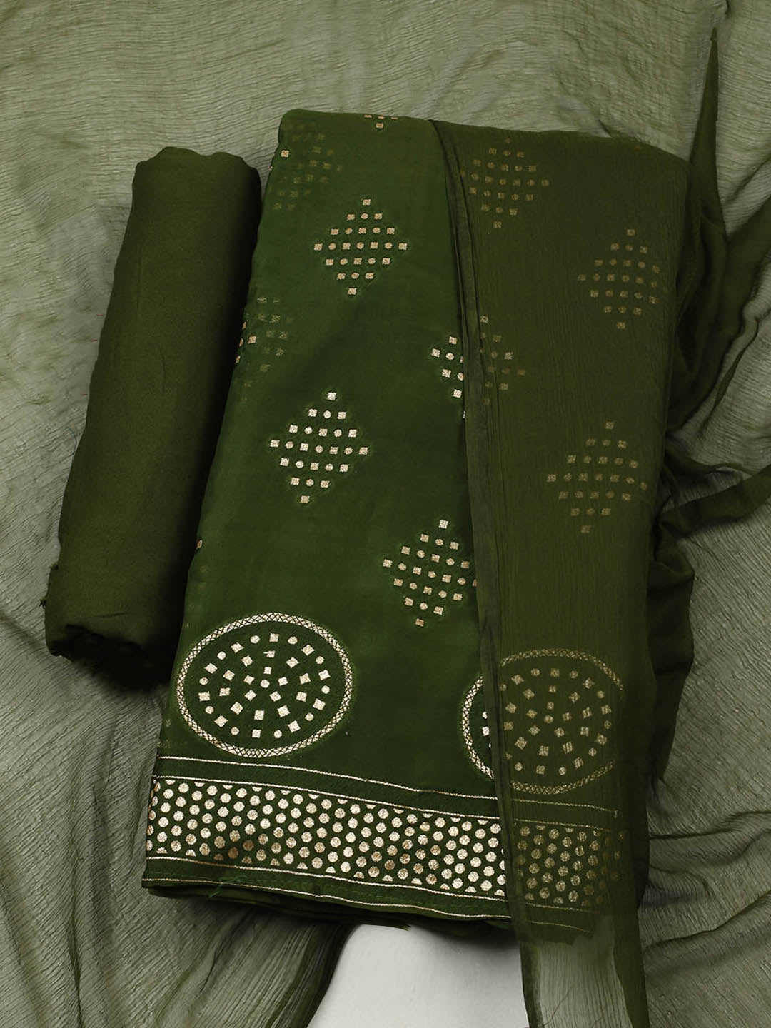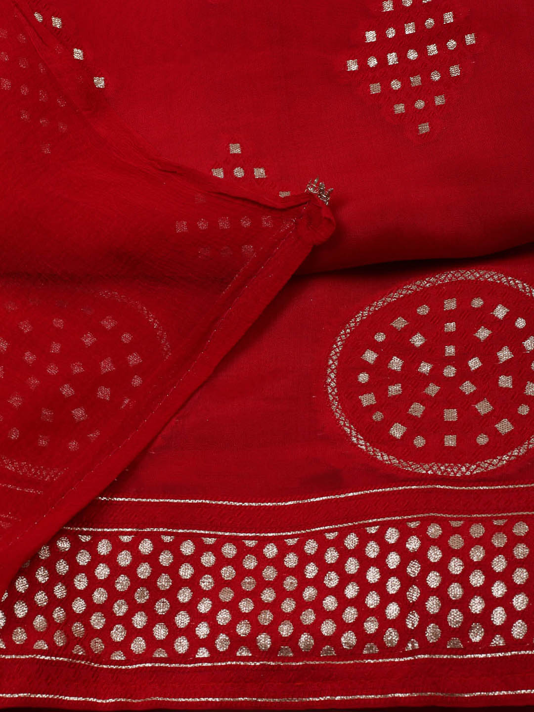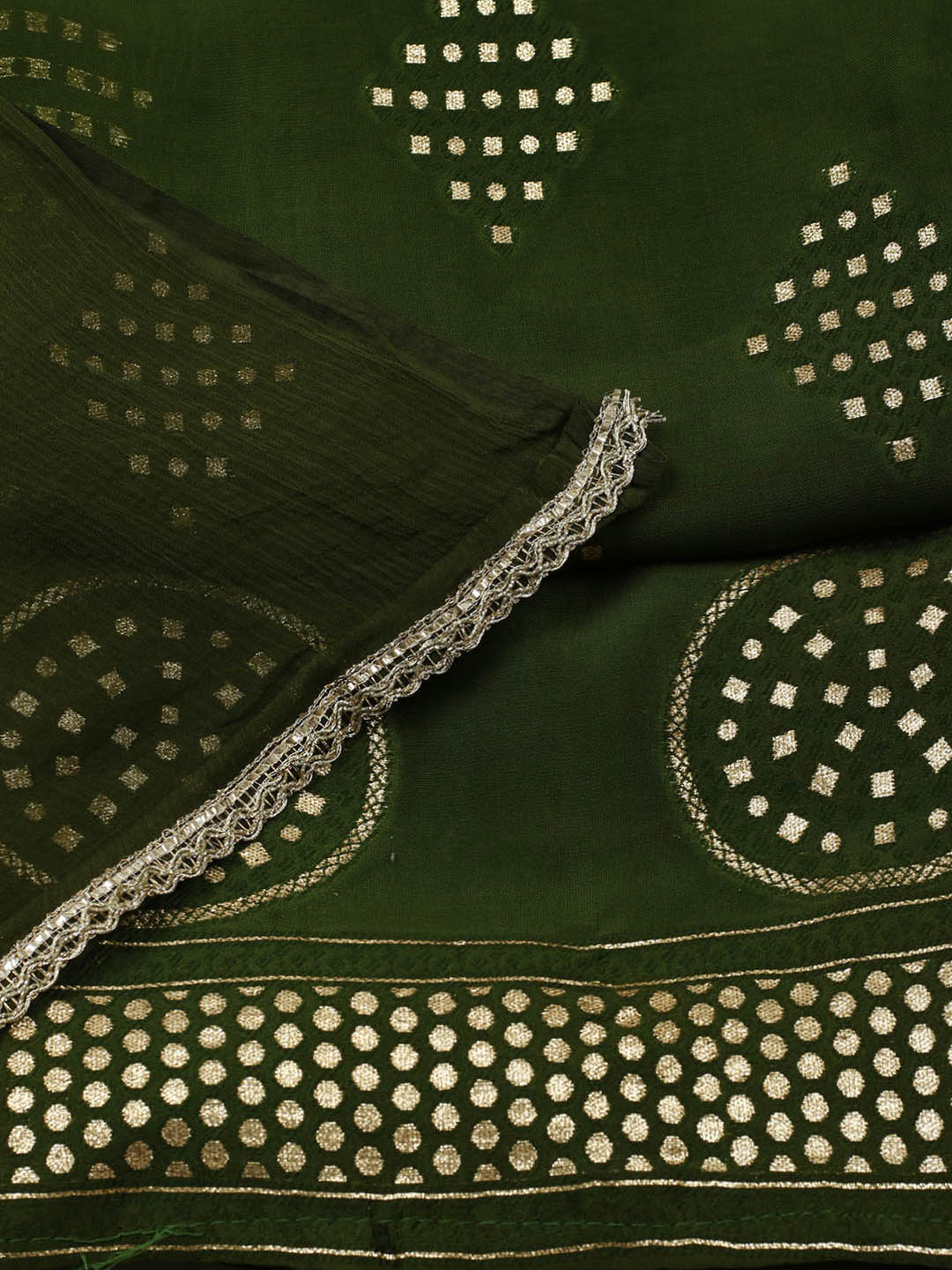 Embroidered Chanderi Unstitched Suit With Pant & Dupatta