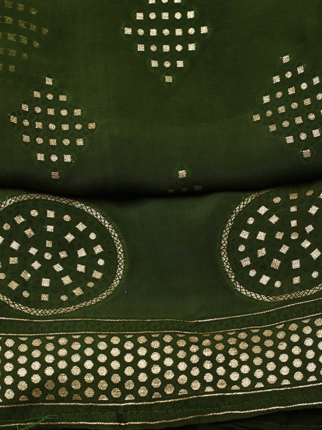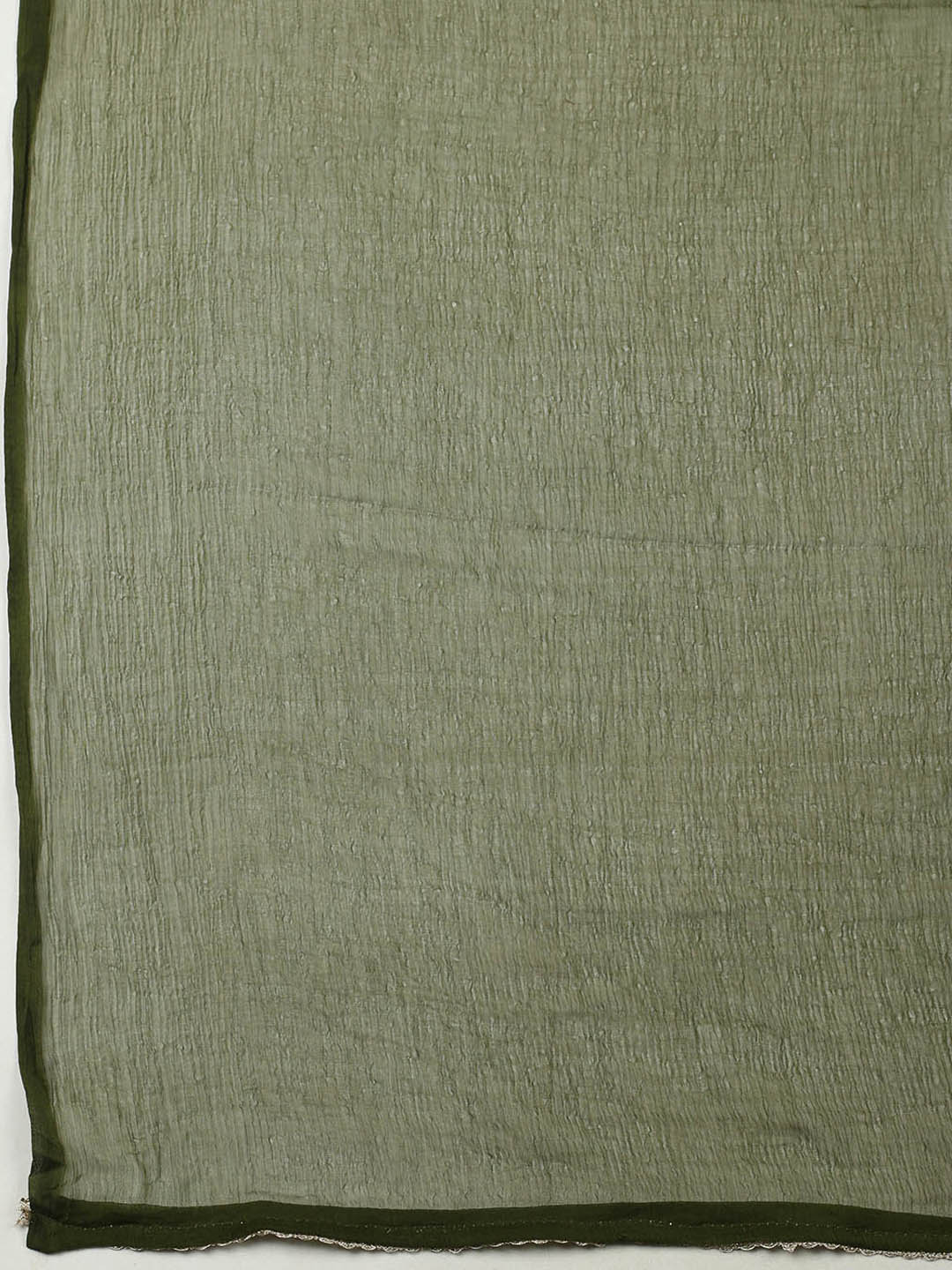 Embroidered Chanderi Mehndi Unstitched Suit With Pant & Dupatta