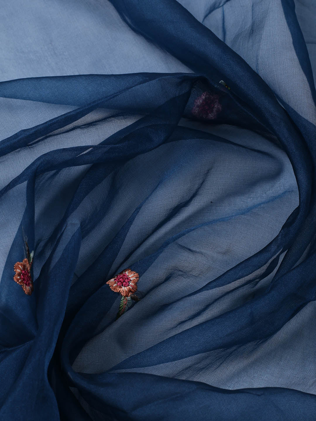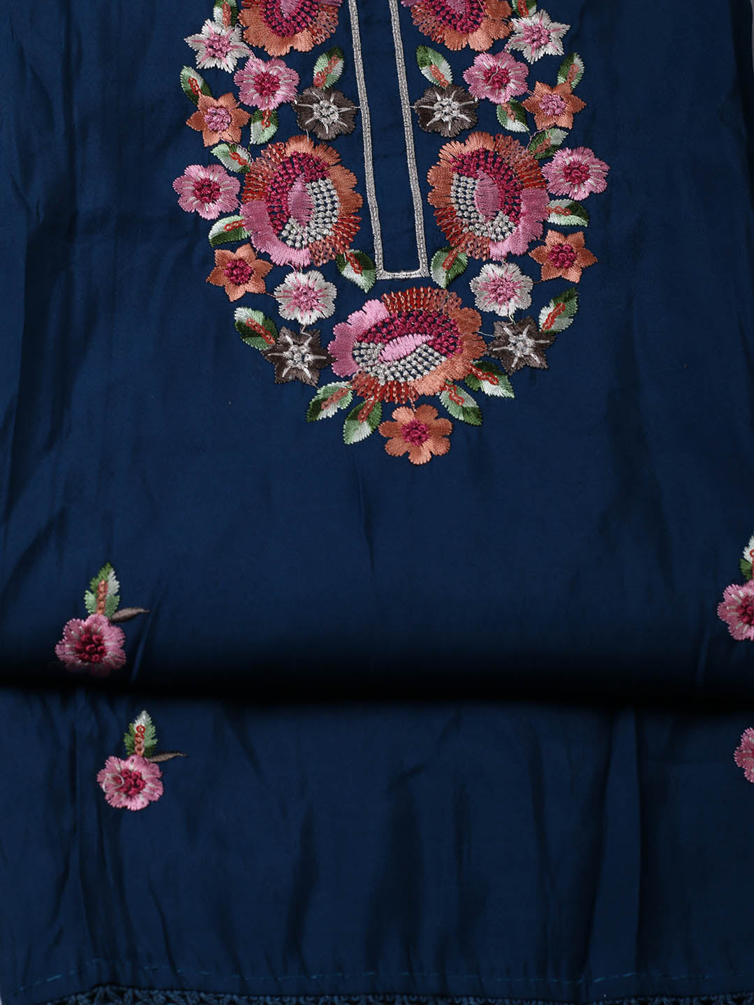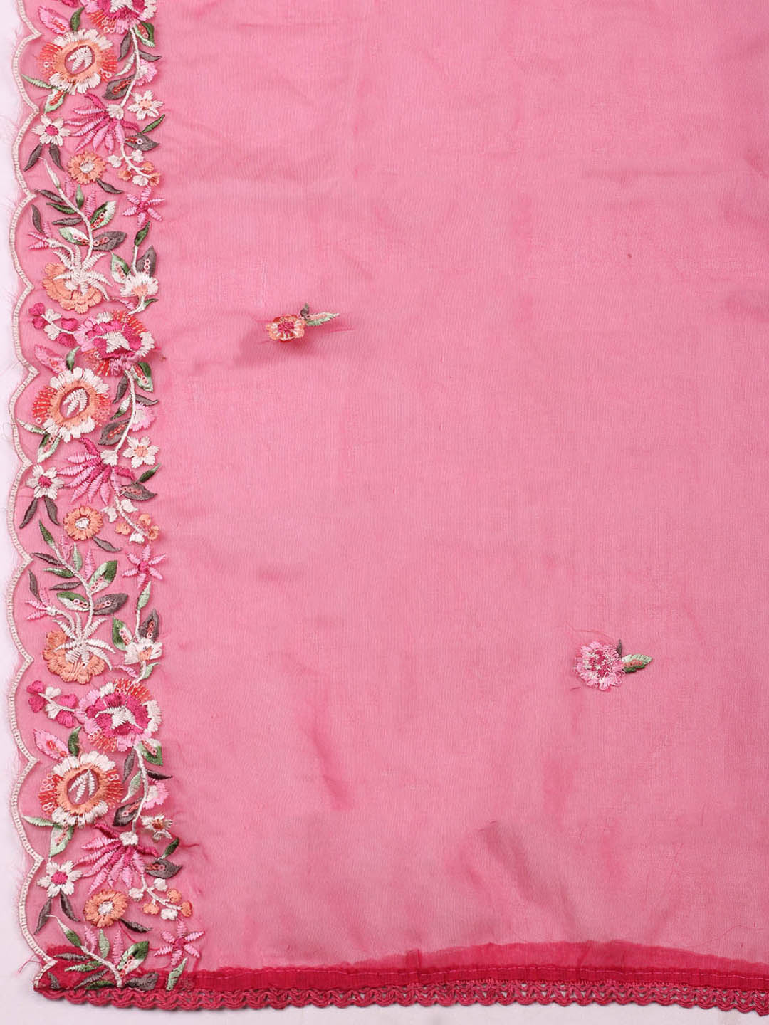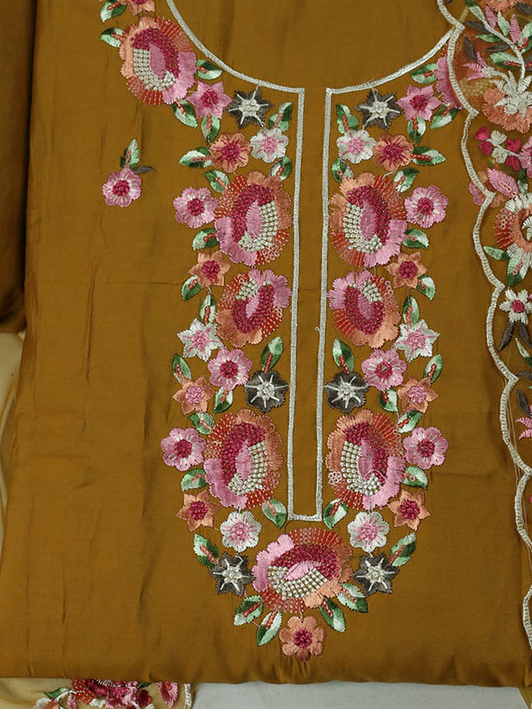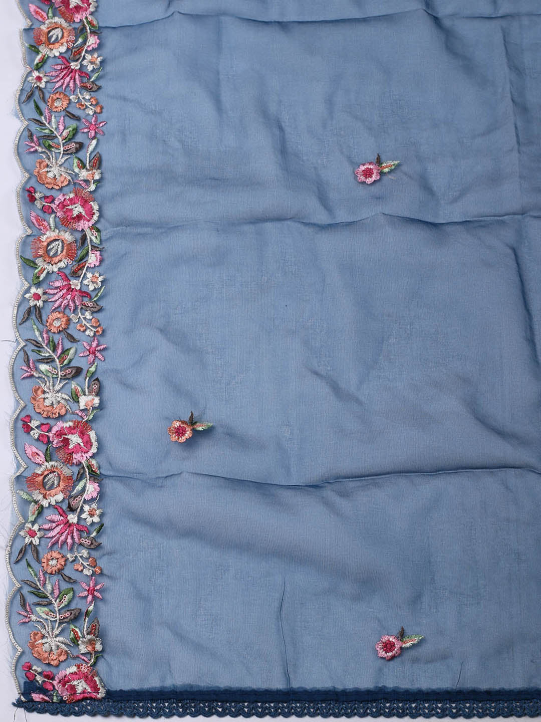 Embroidered Chanderi Unstitched Suit With Pant & Dupatta