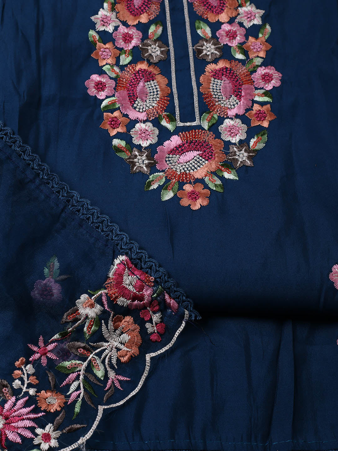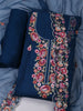 Embroidered Chanderi Blue Unstitched Suit With Pant & Dupatta