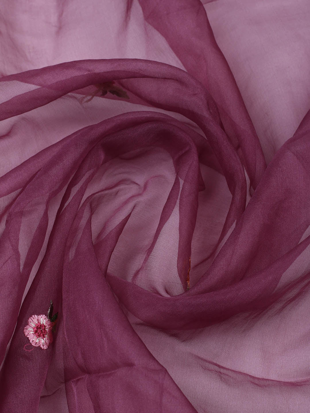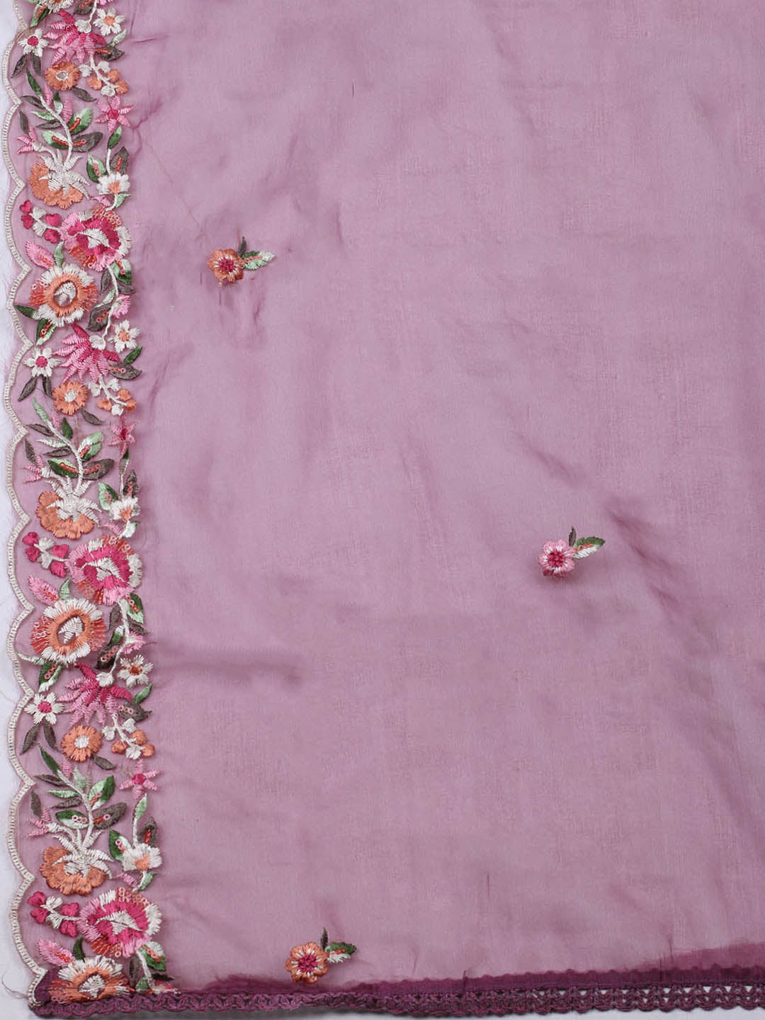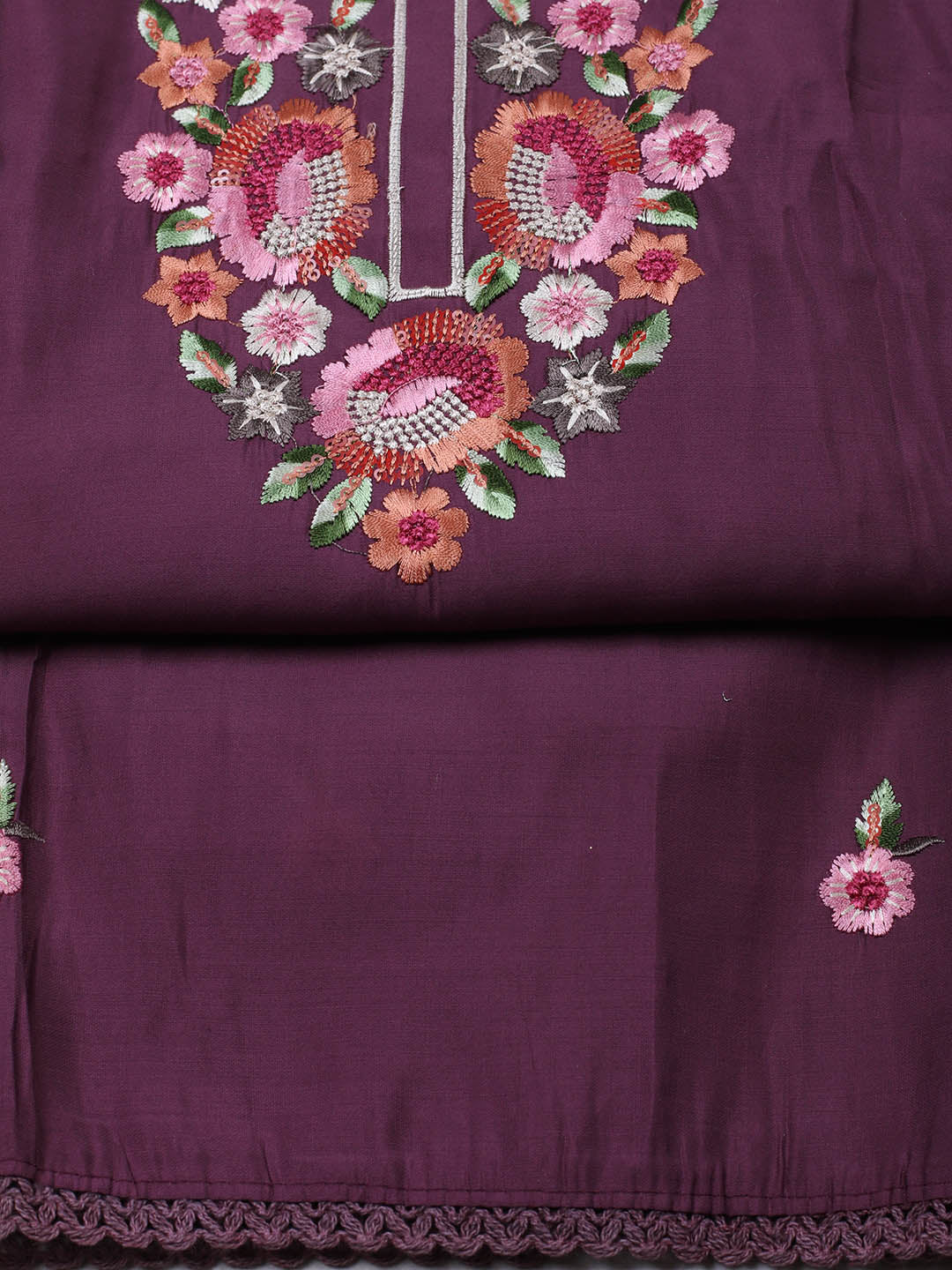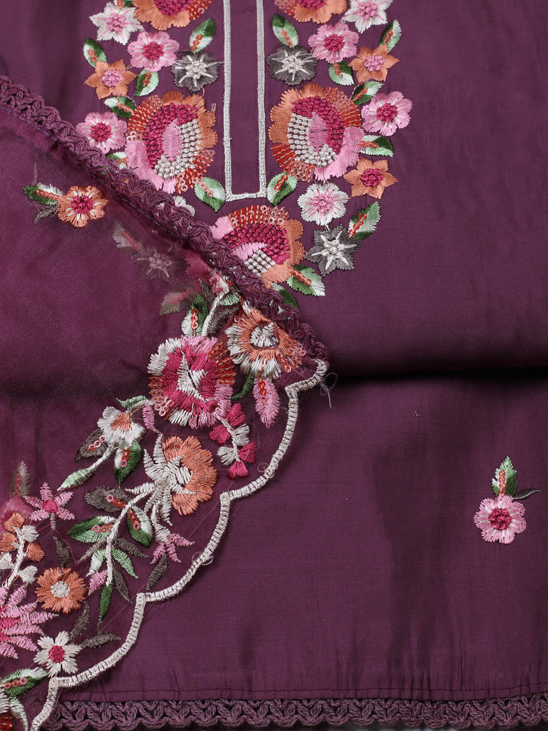Embroidered Chanderi Lavender Unstitched Suit With Pant & Dupatta