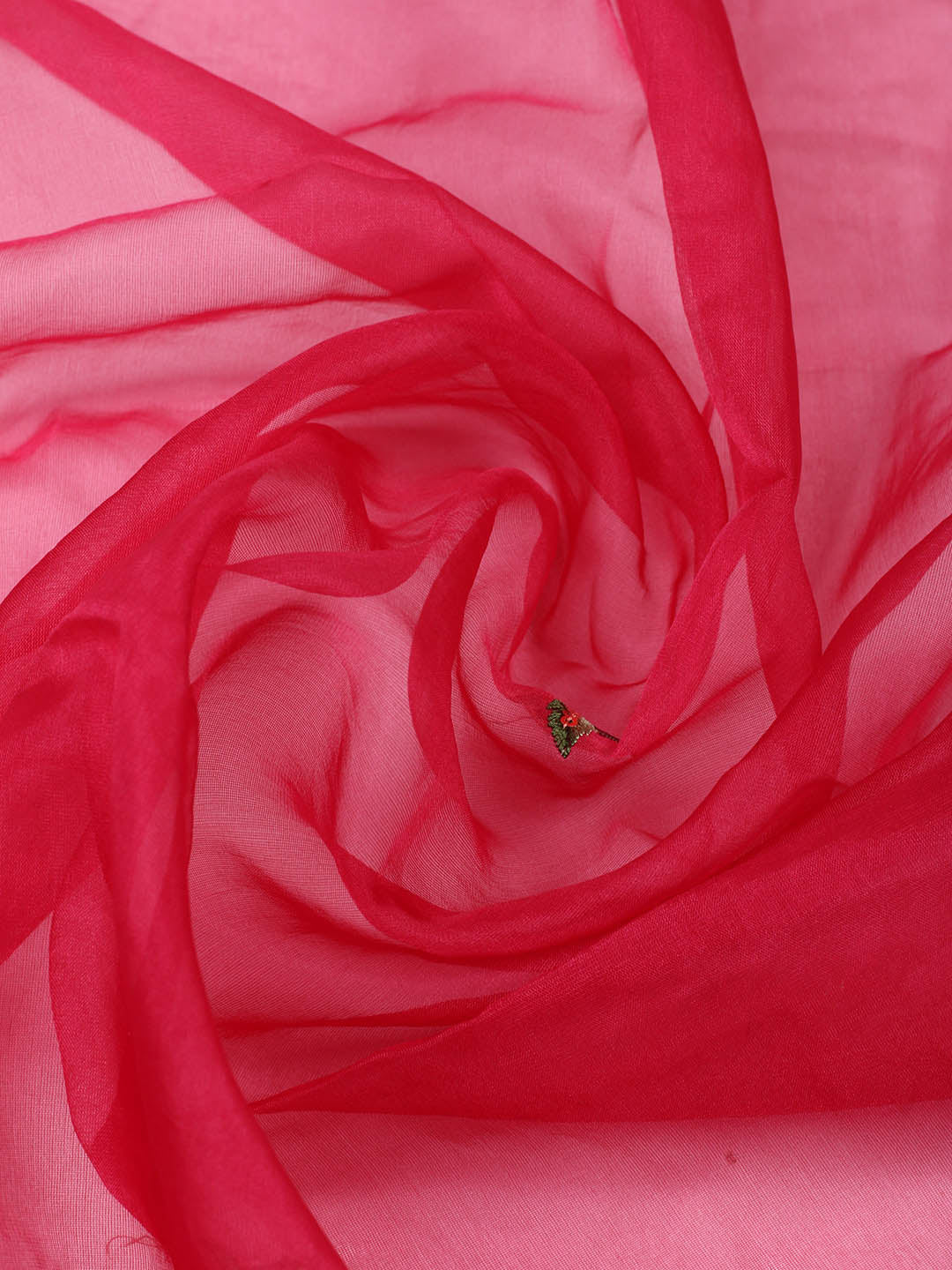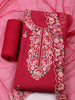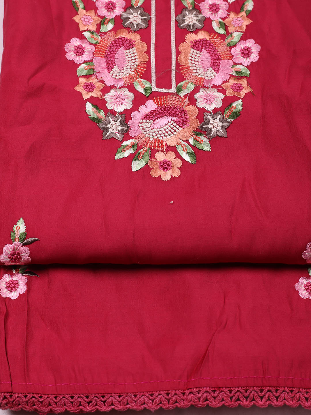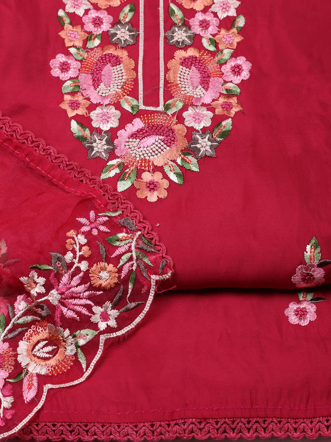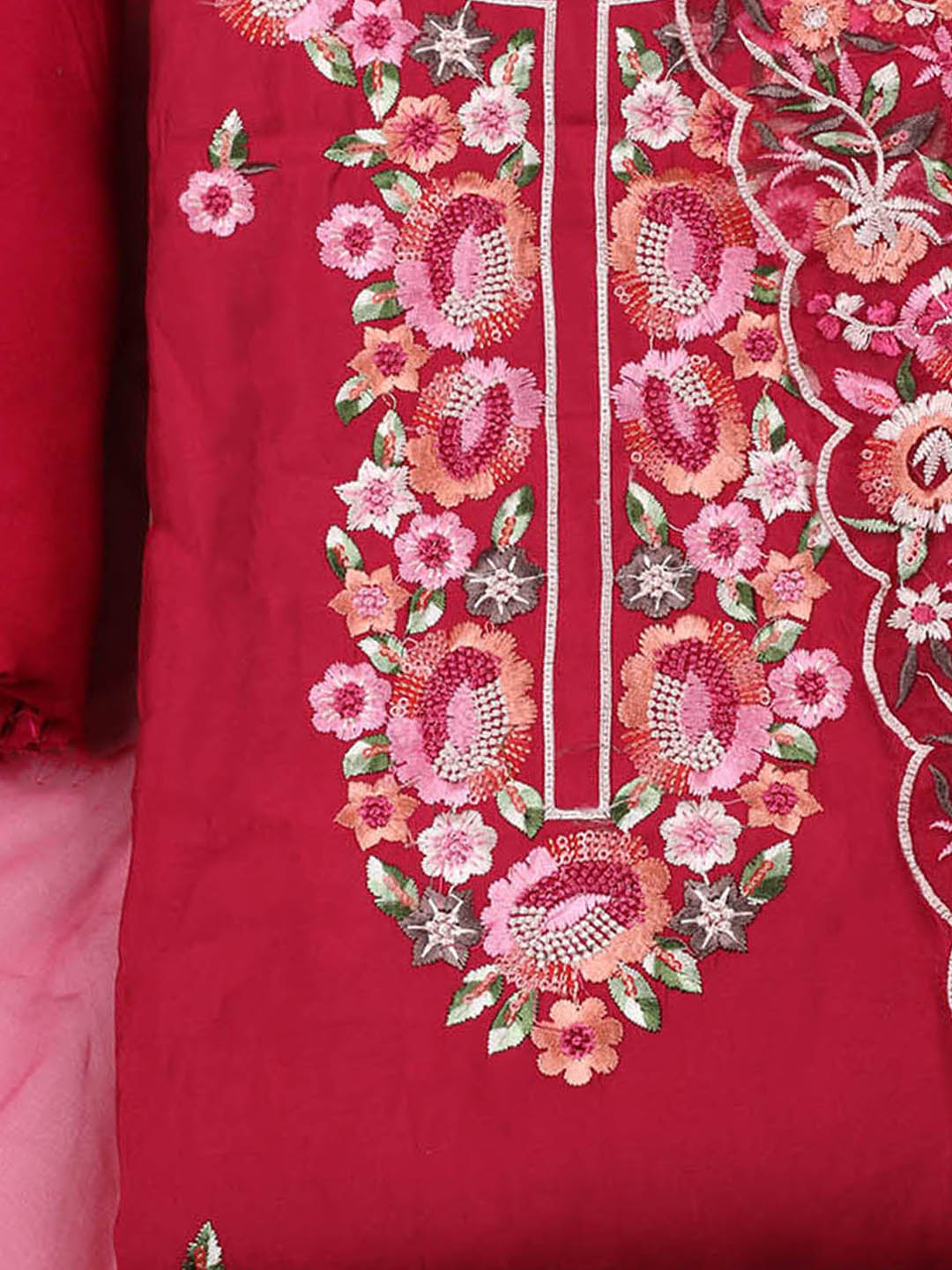Embroidered Chanderi Rani Unstitched Suit With Pant & Dupatta