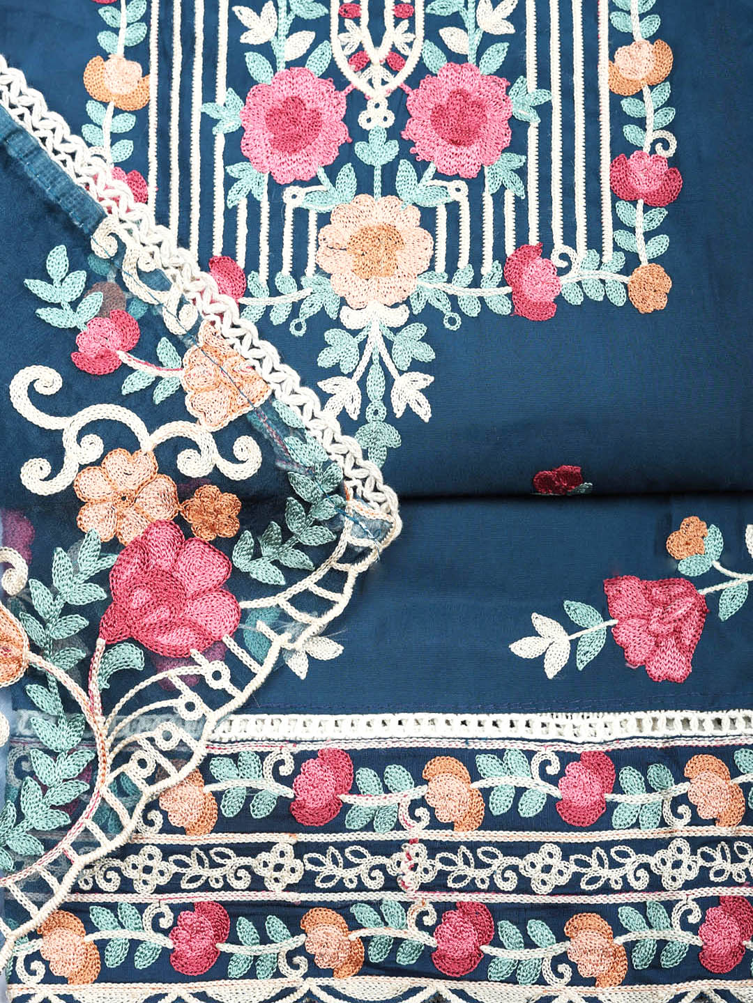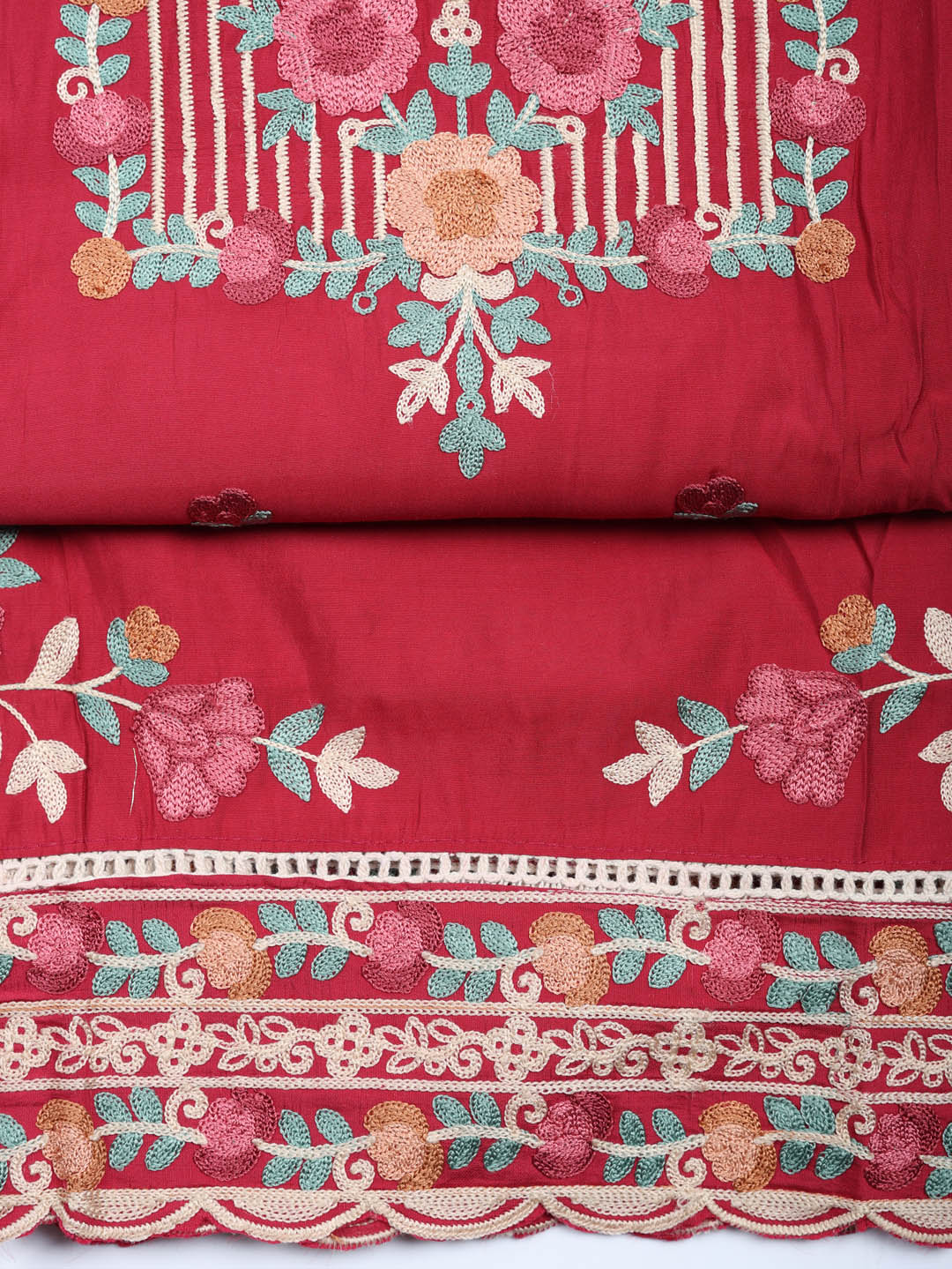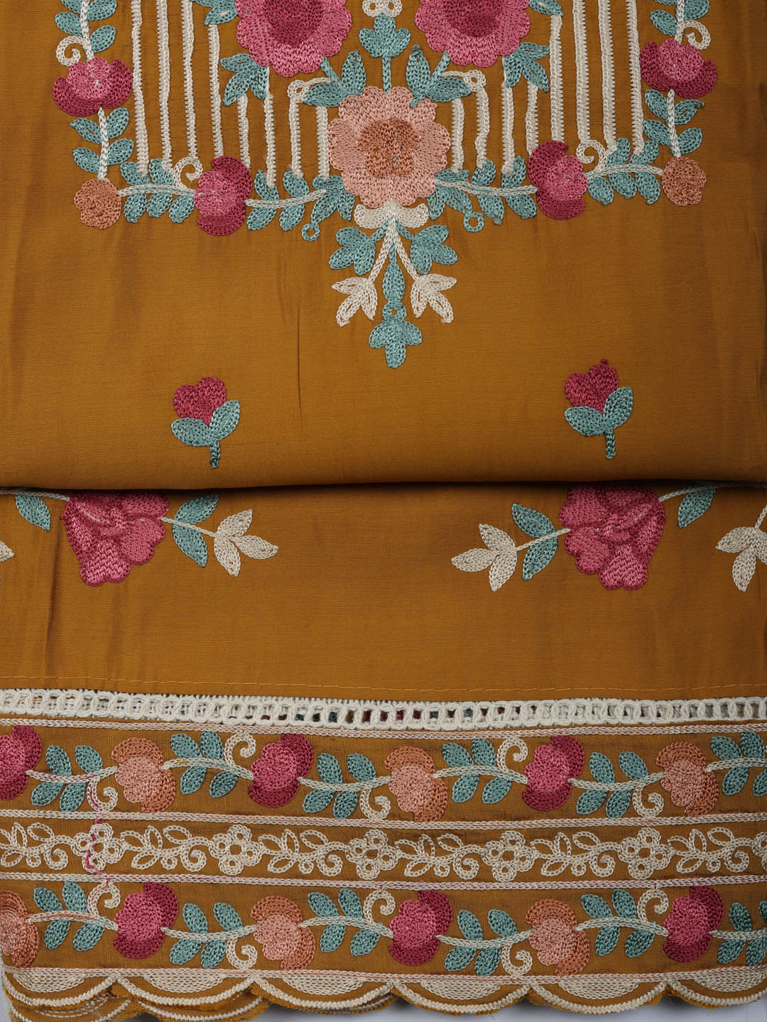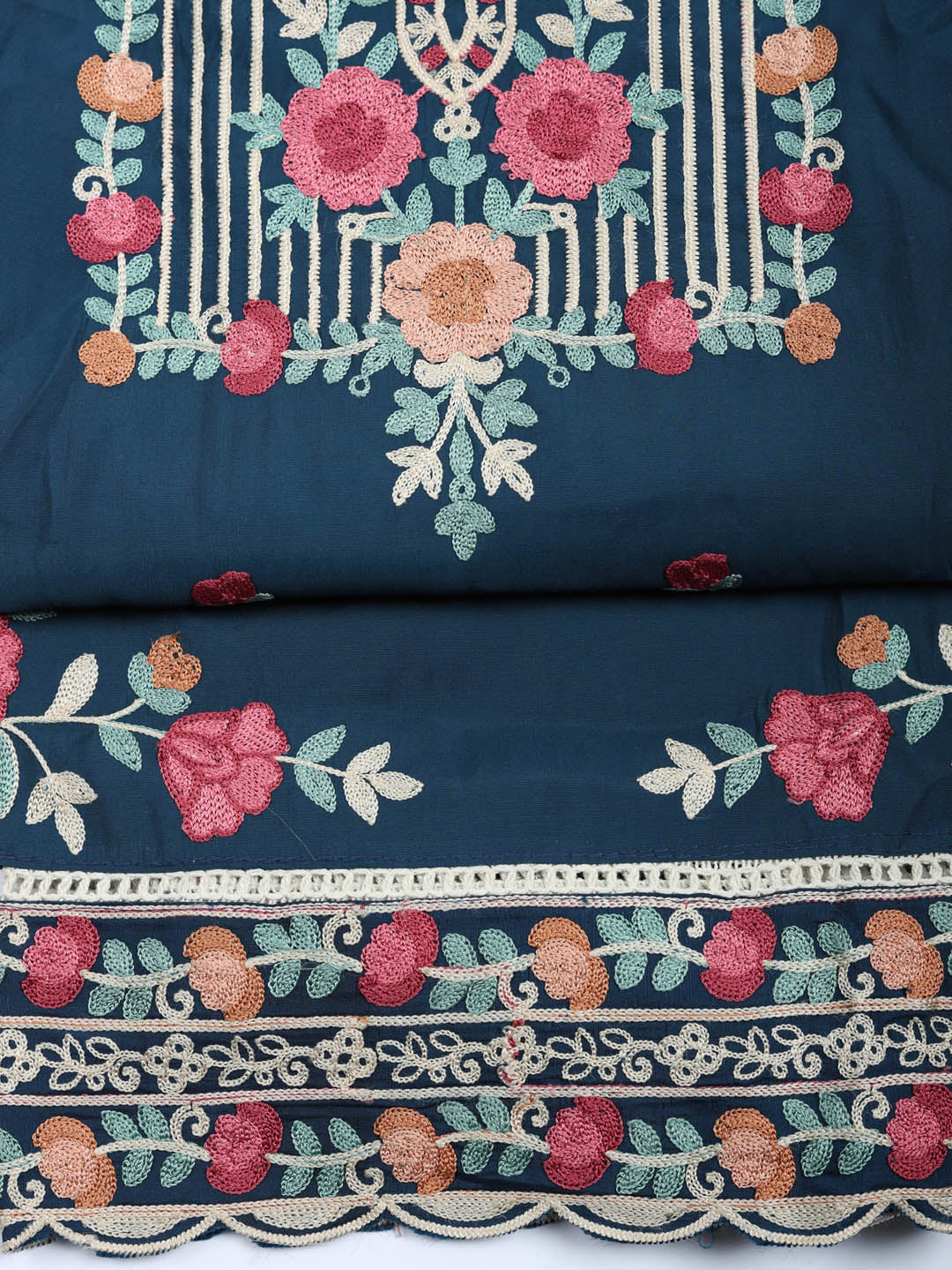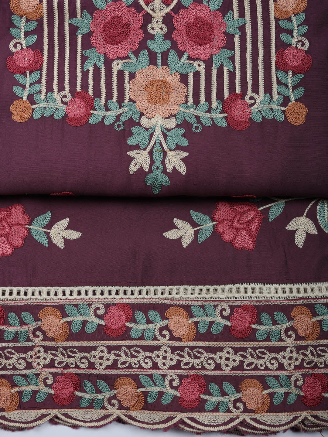 Embroidered Cotton Blend Unstitched Suit With Pant & Dupatta