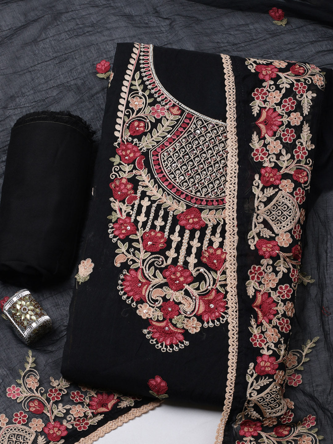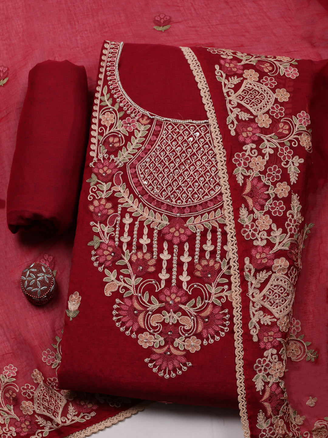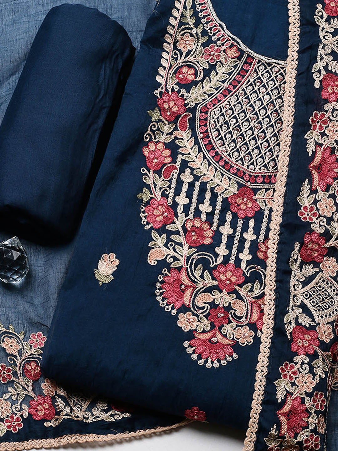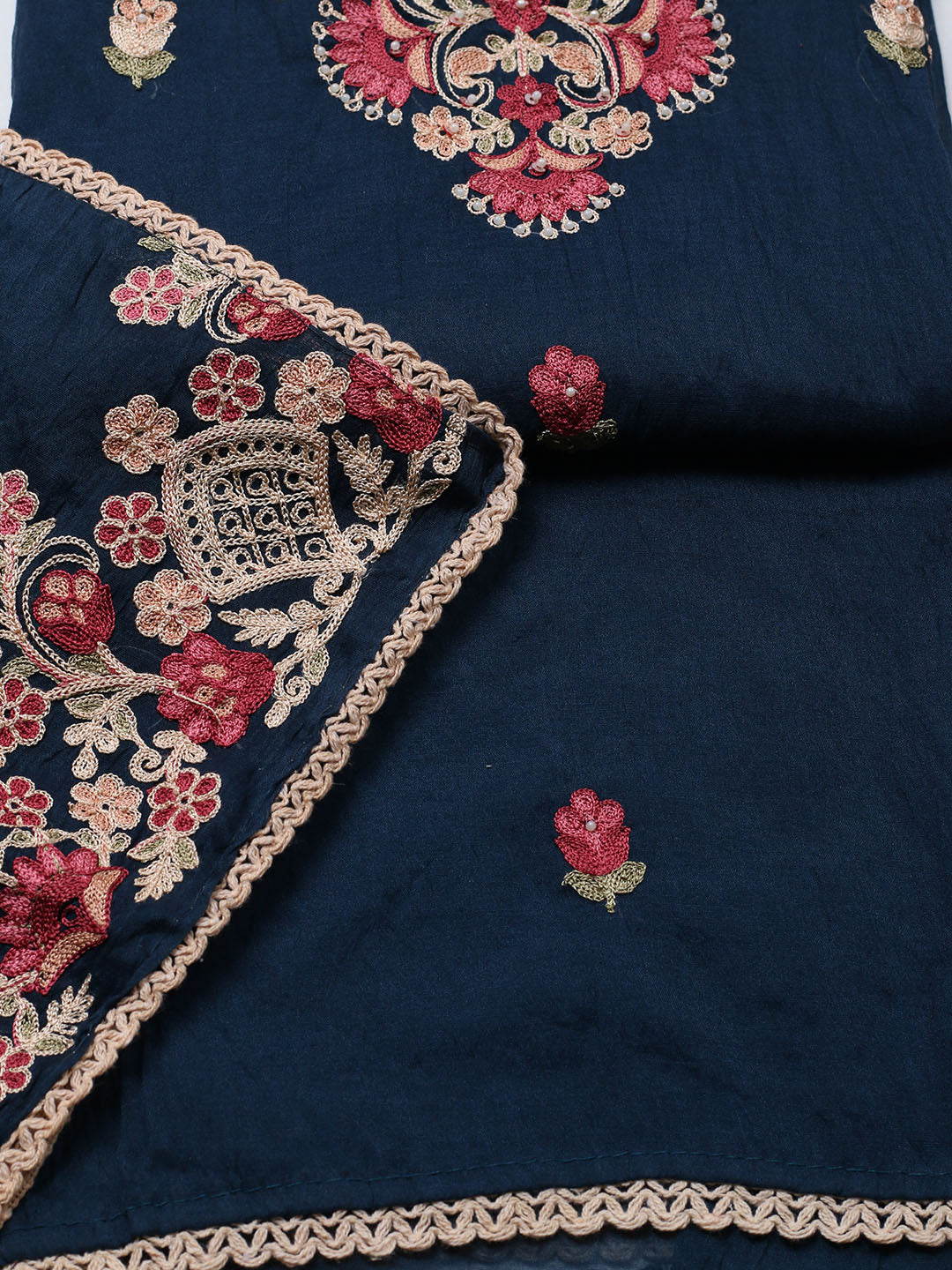 Embroidered Cotton Blend Unstitched Suit With Pant & Dupatta