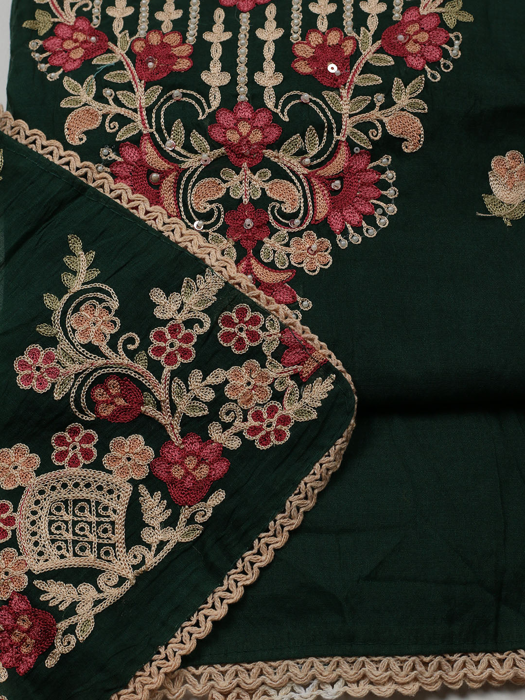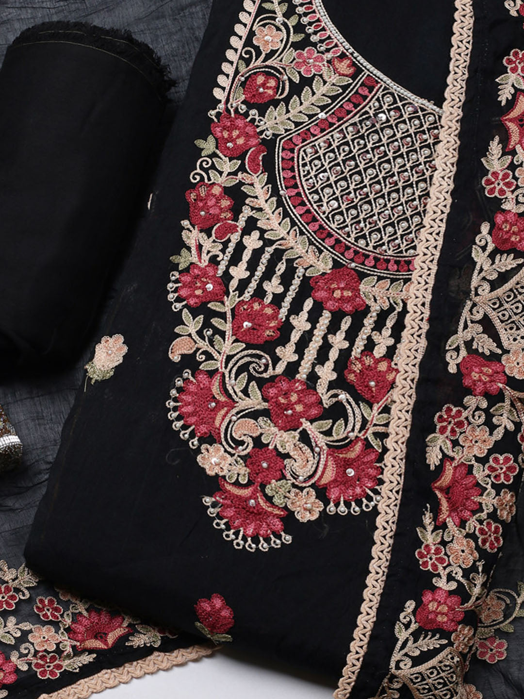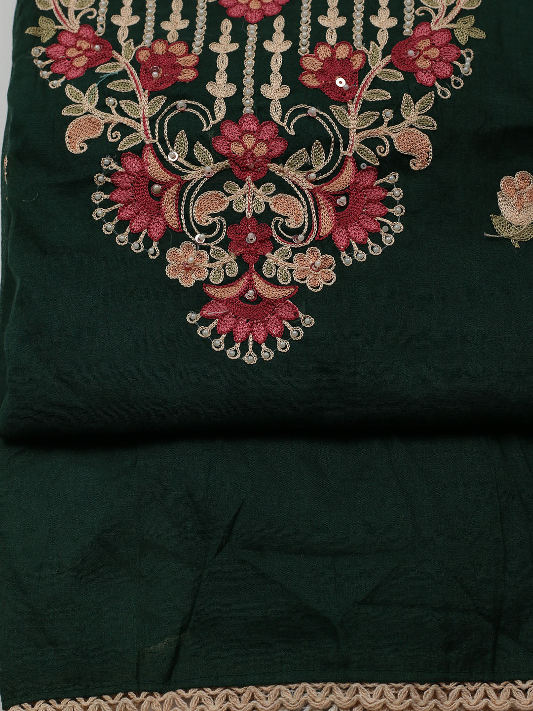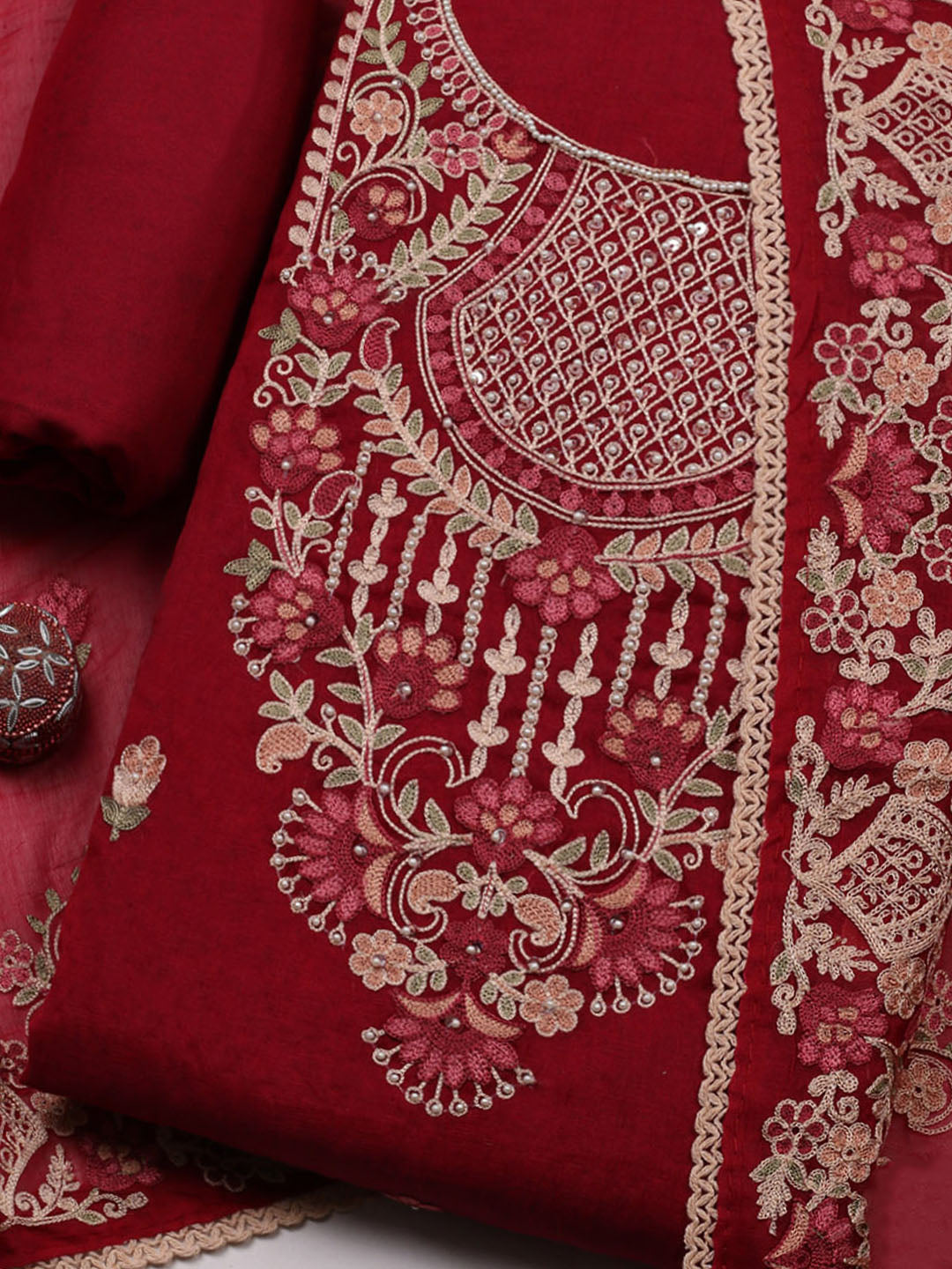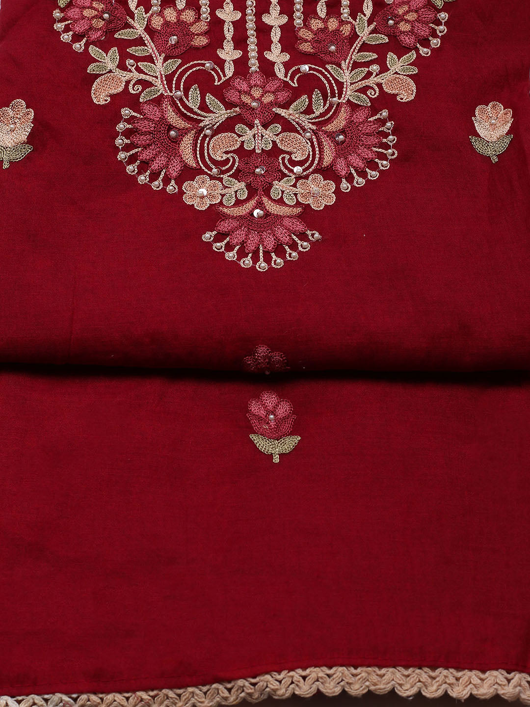 Embroidered Cotton Blend Unstitched Suit With Pant & Dupatta