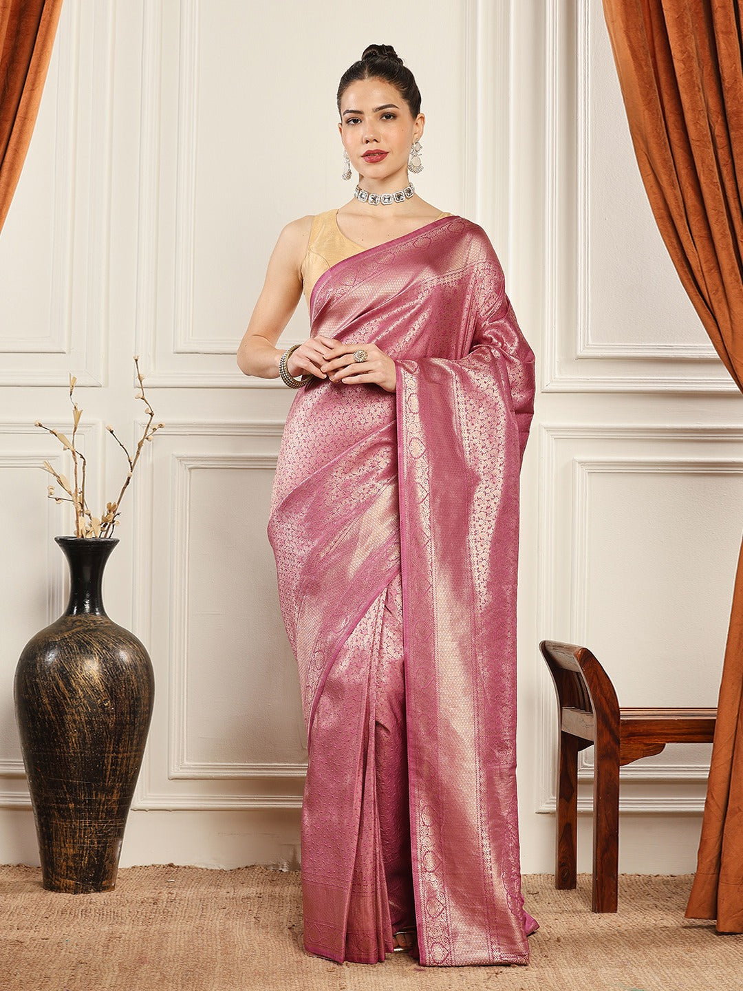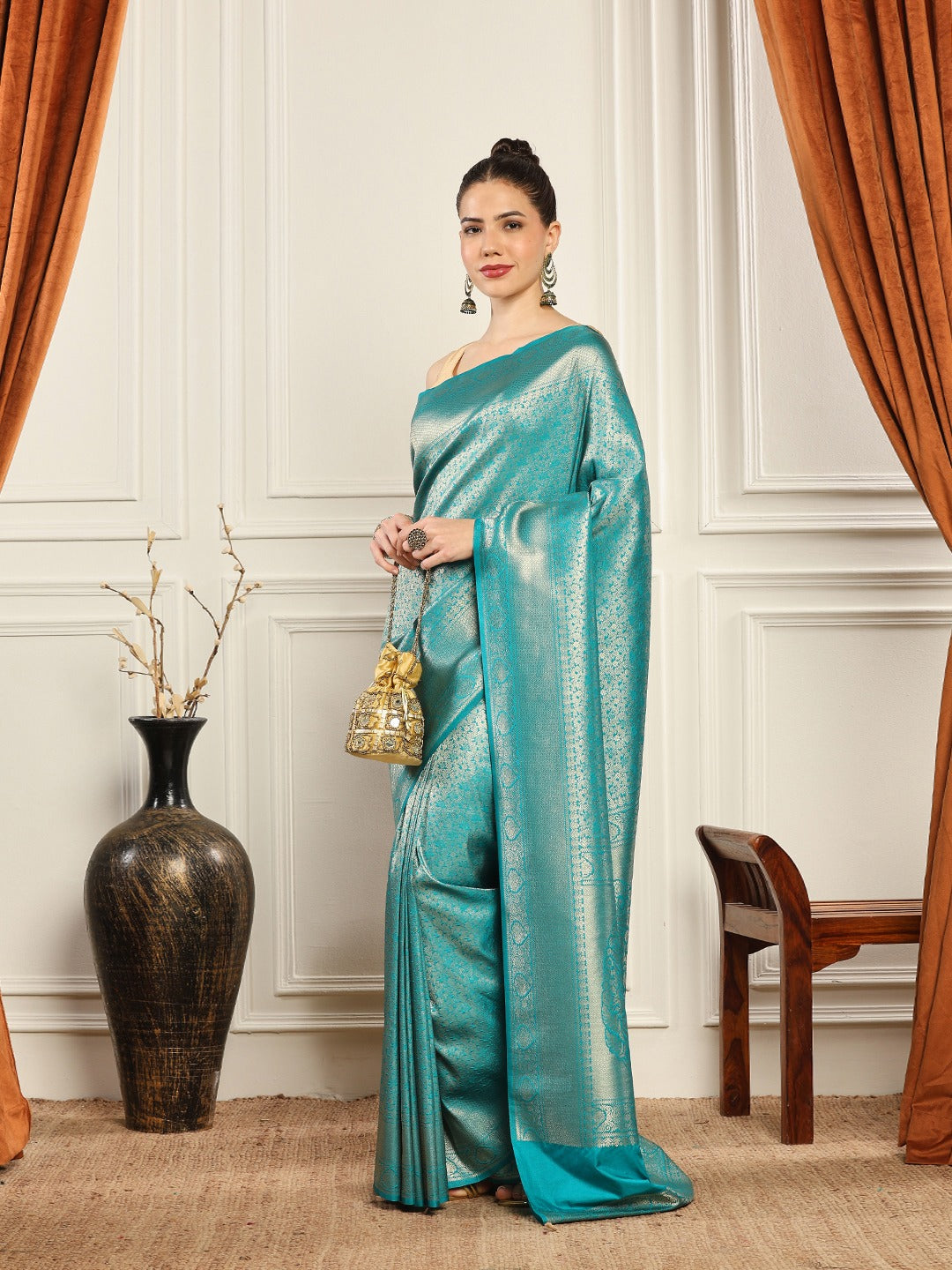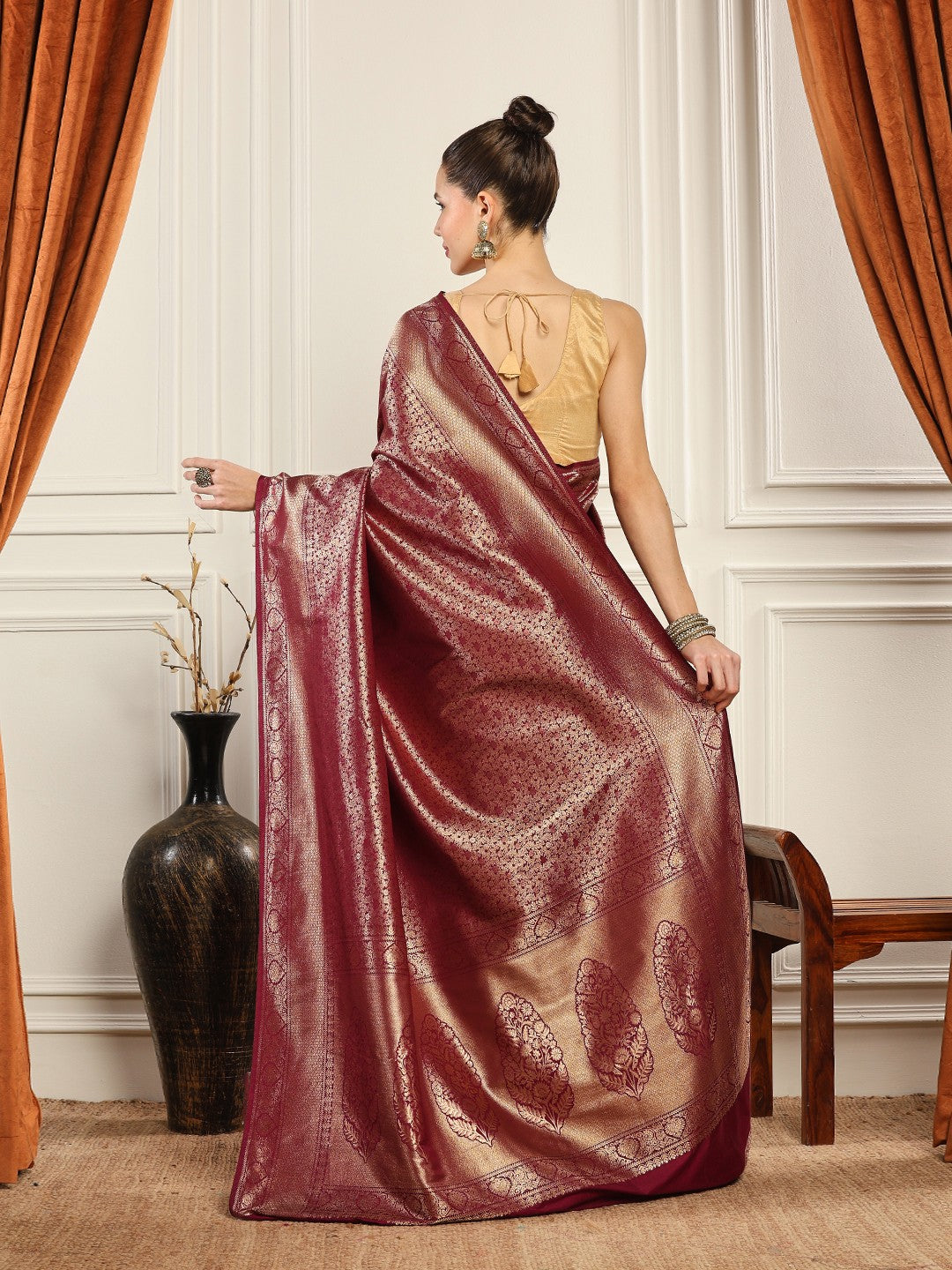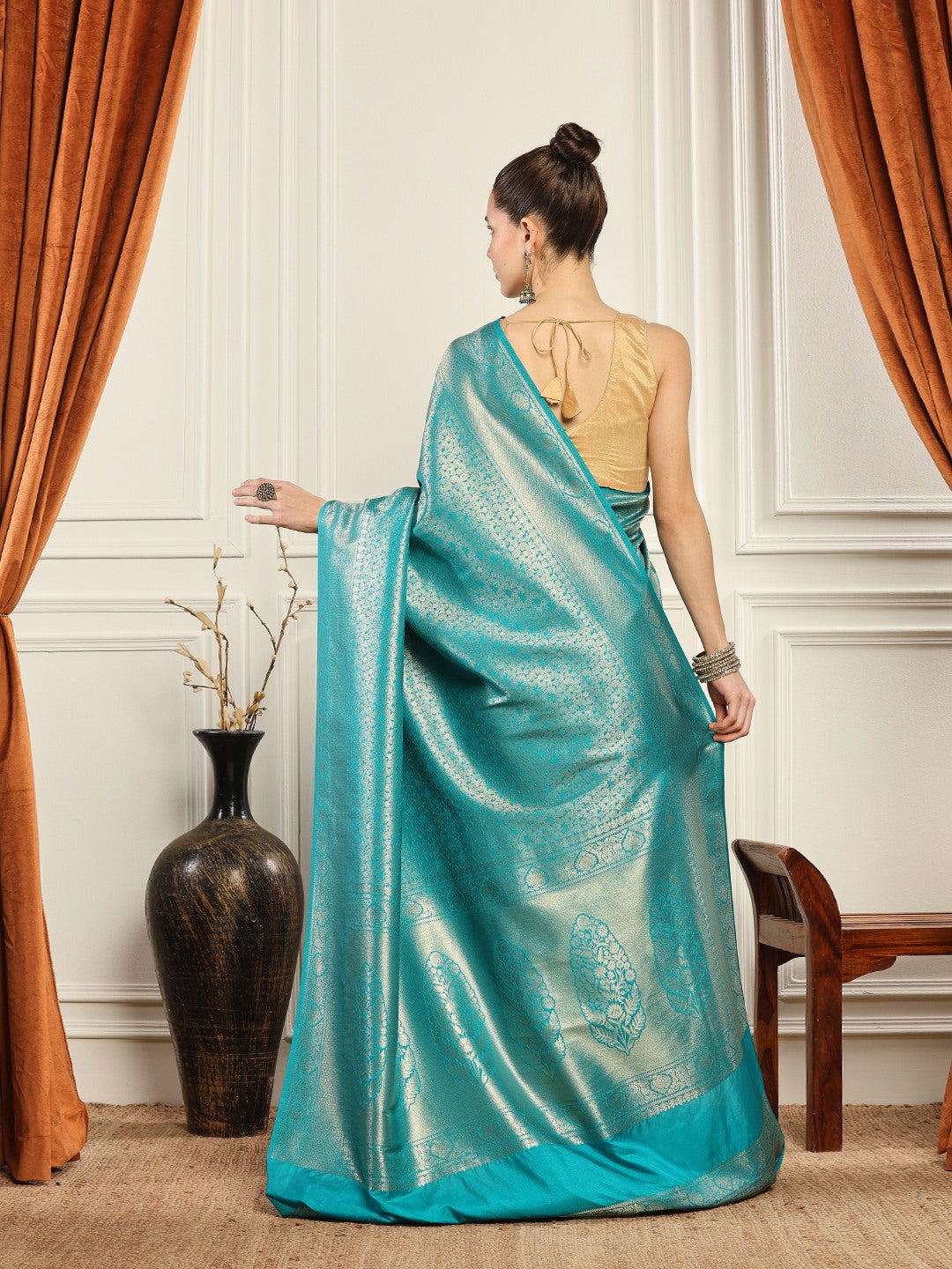 Note: The blouse shown in the pictures is just for Photoshoot purposes. The blouse you will get will be an attached running blouse.