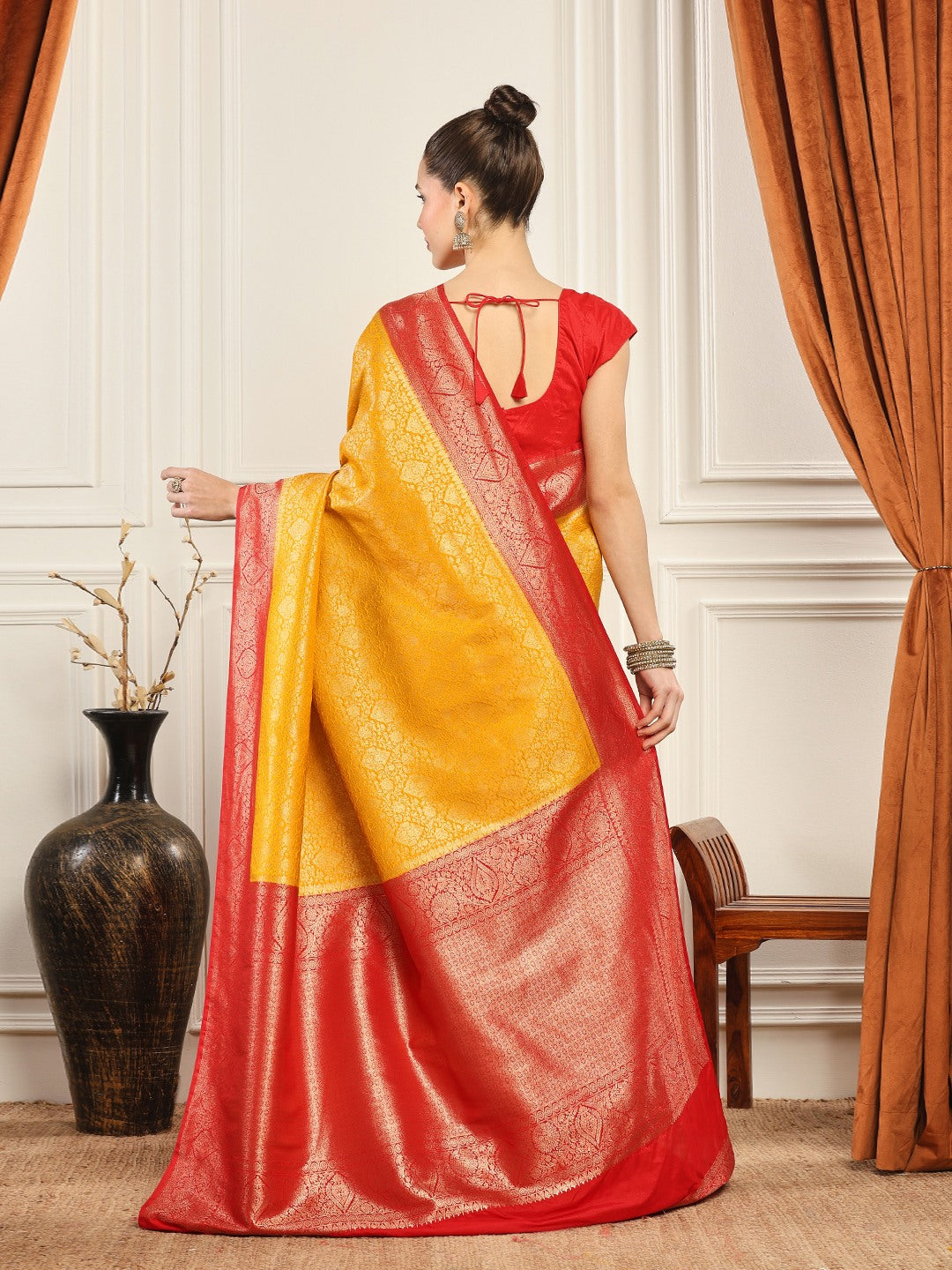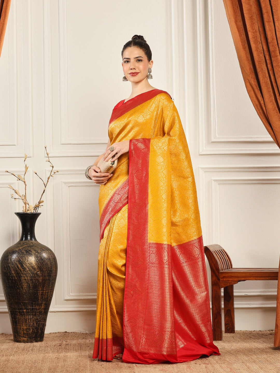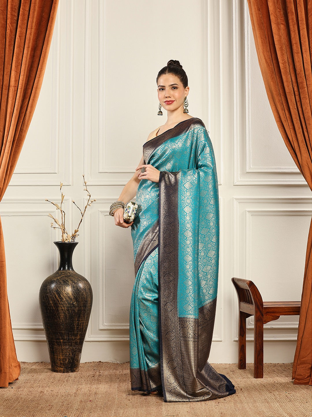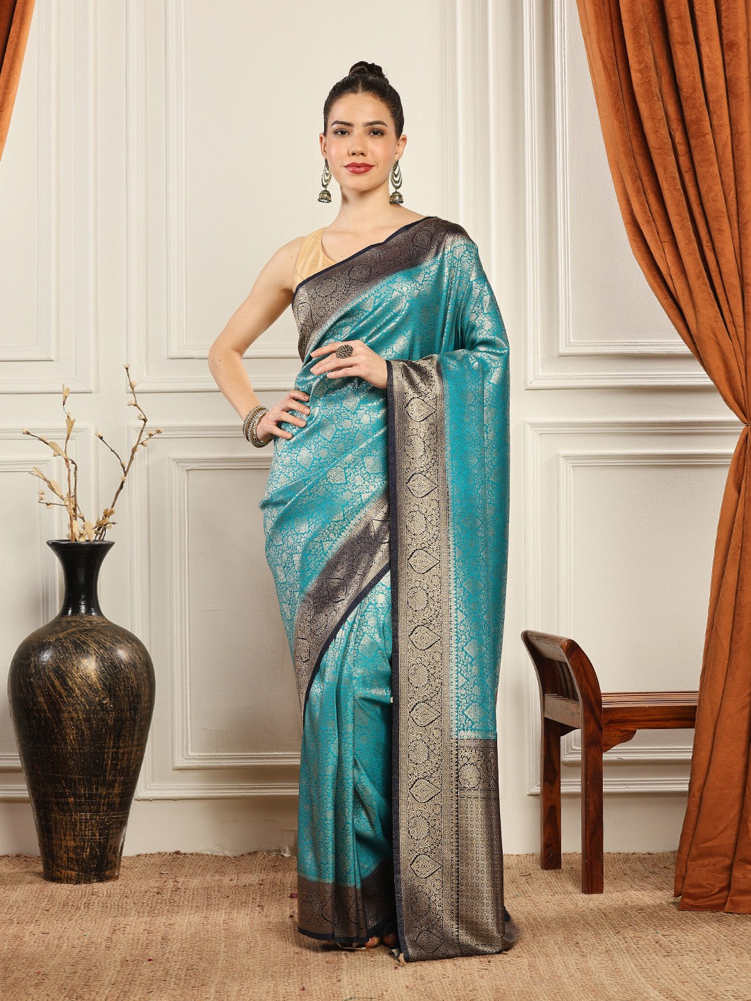 Note: The blouse shown in the pictures is just for Photoshoot purposes. The blouse you will get will be an attached running blouse.