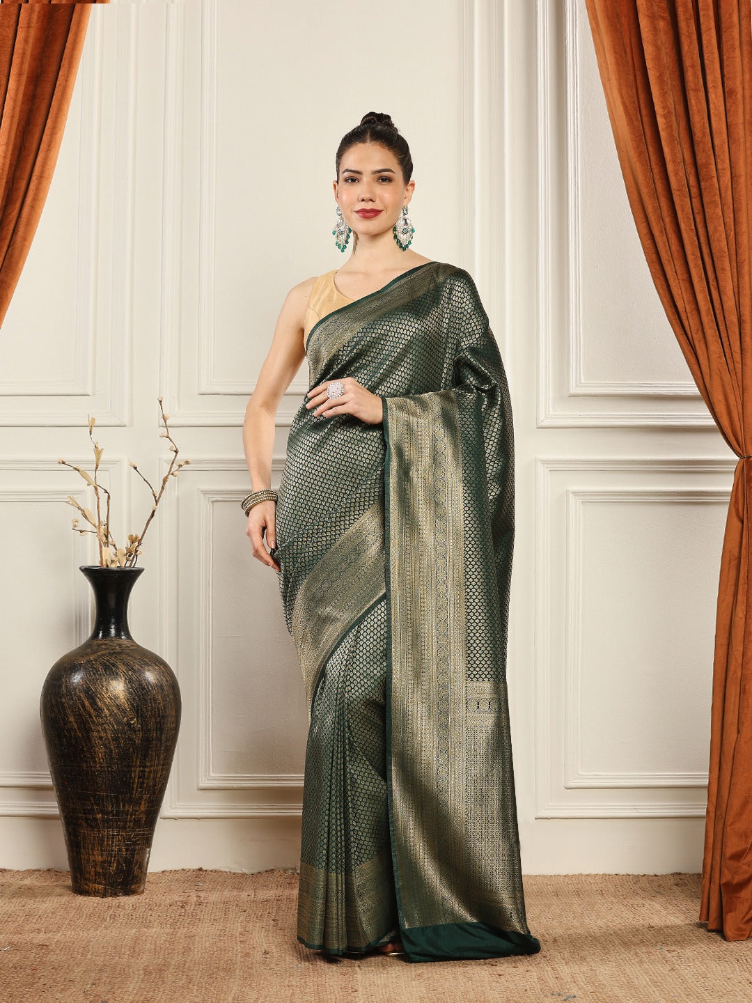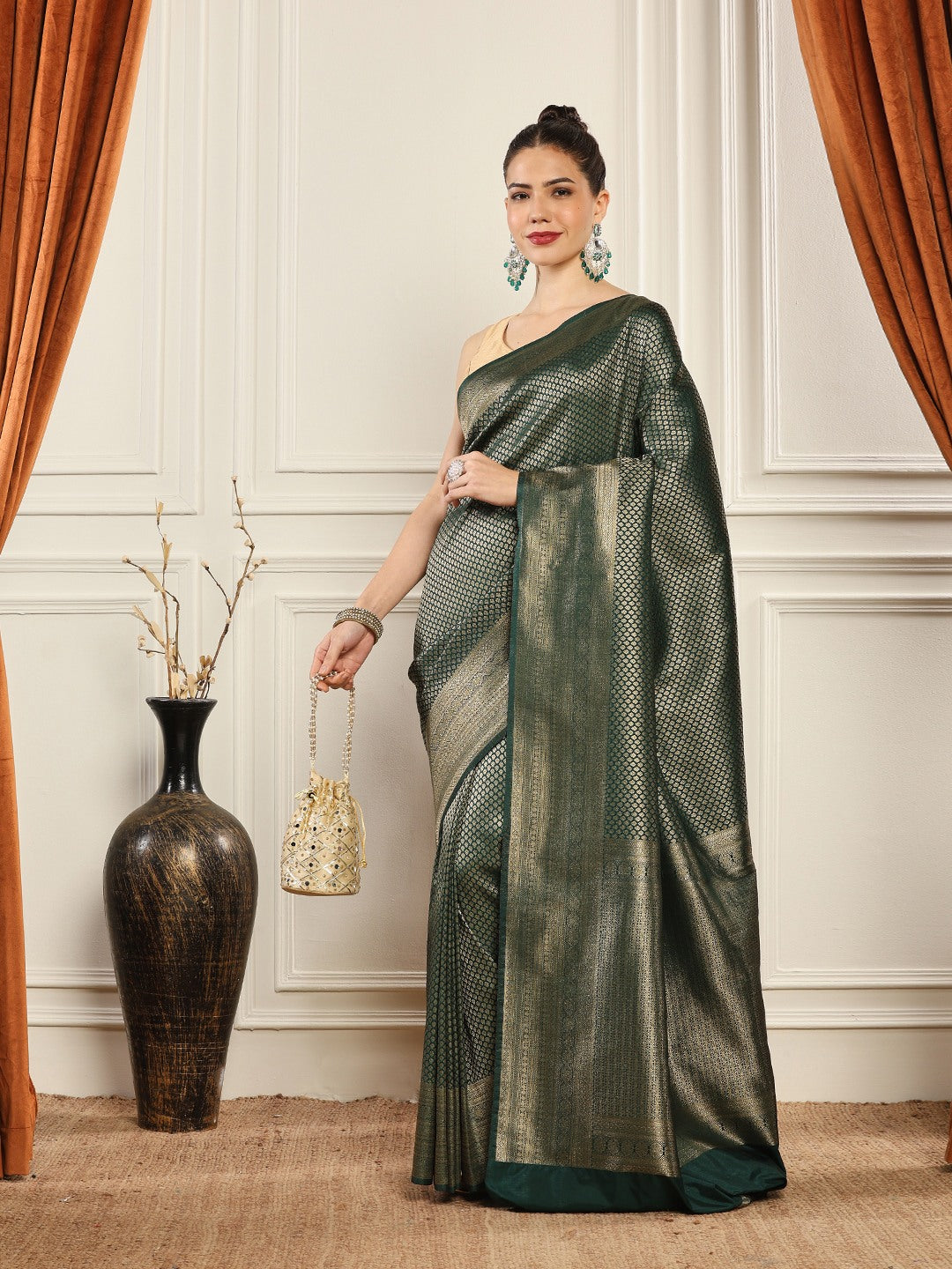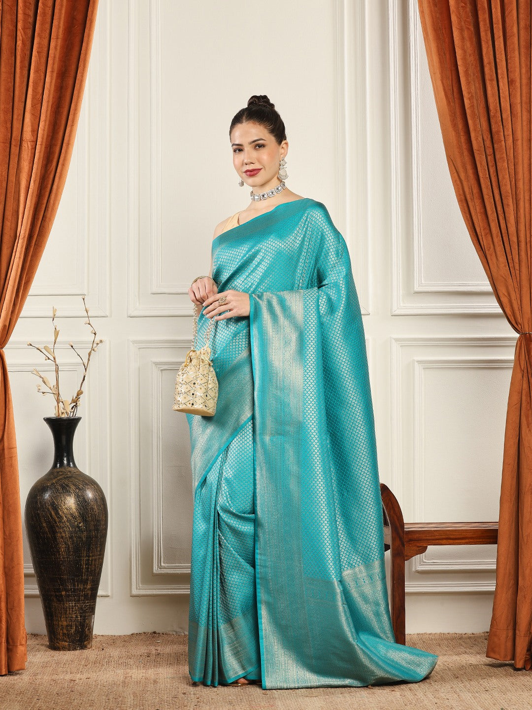 Note: The blouse shown in the pictures is just for Photoshoot purposes. The blouse you will get will be an attached running blouse.