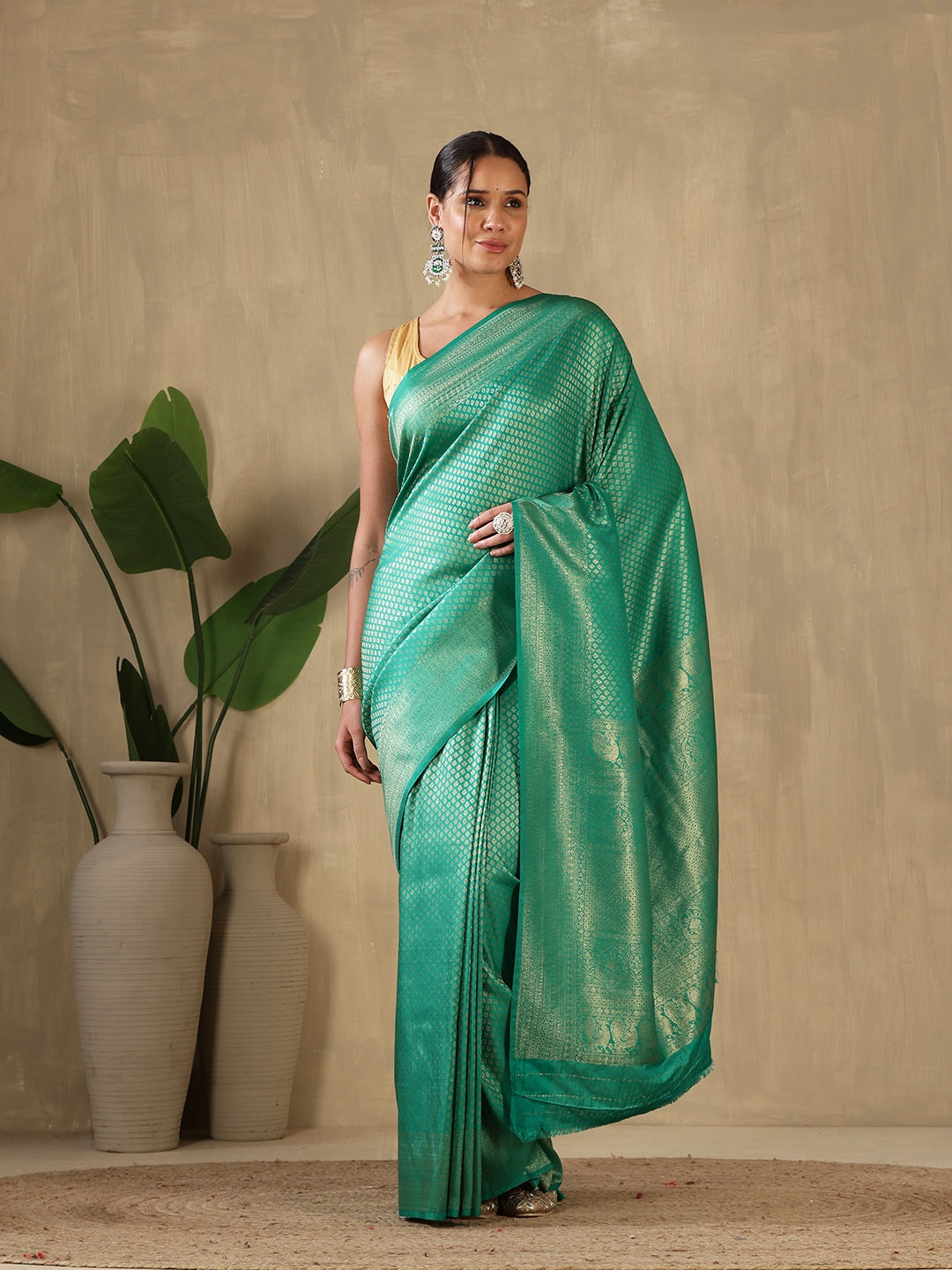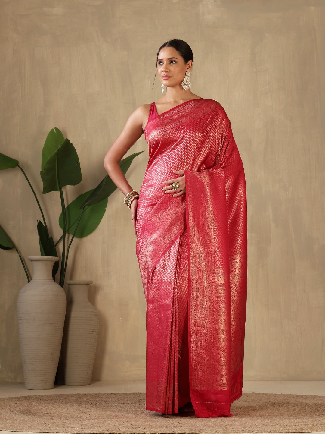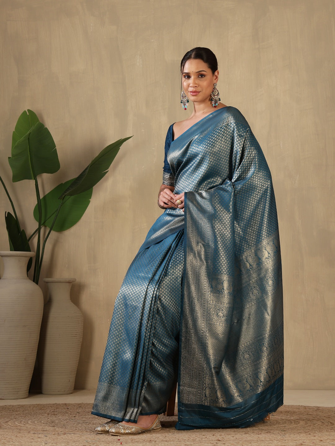 Note: The blouse shown in the pictures is just for Photoshoot purposes. The blouse you will get will be an attached running blouse.