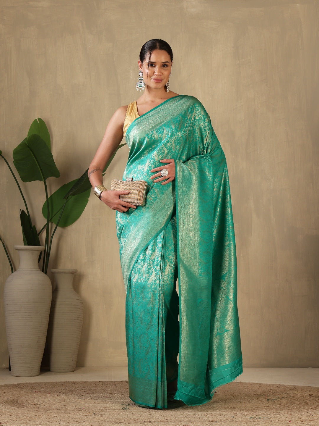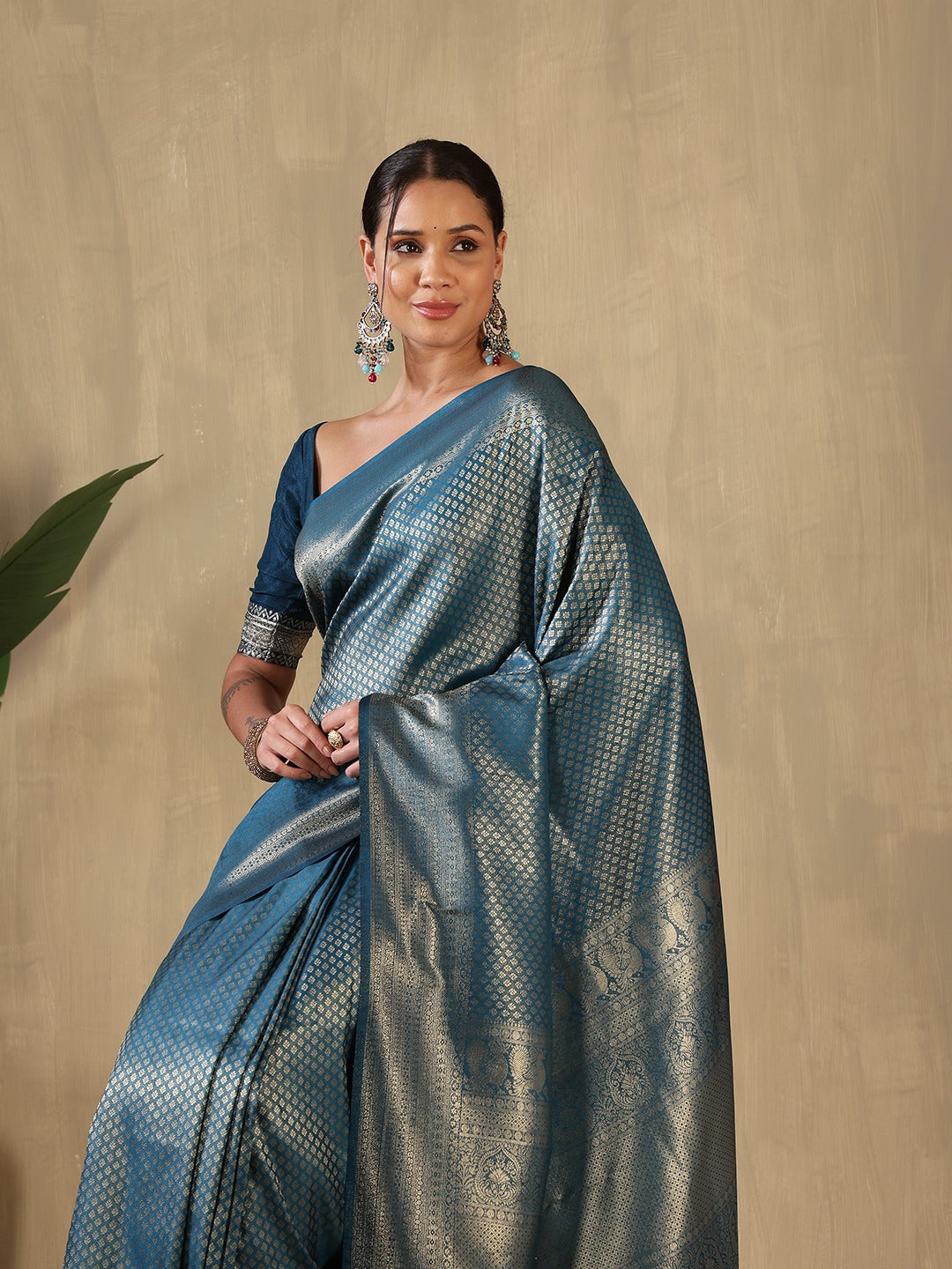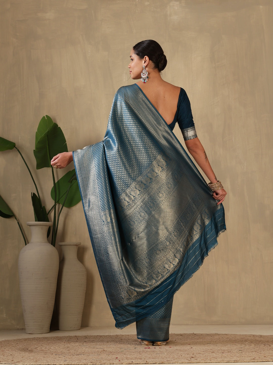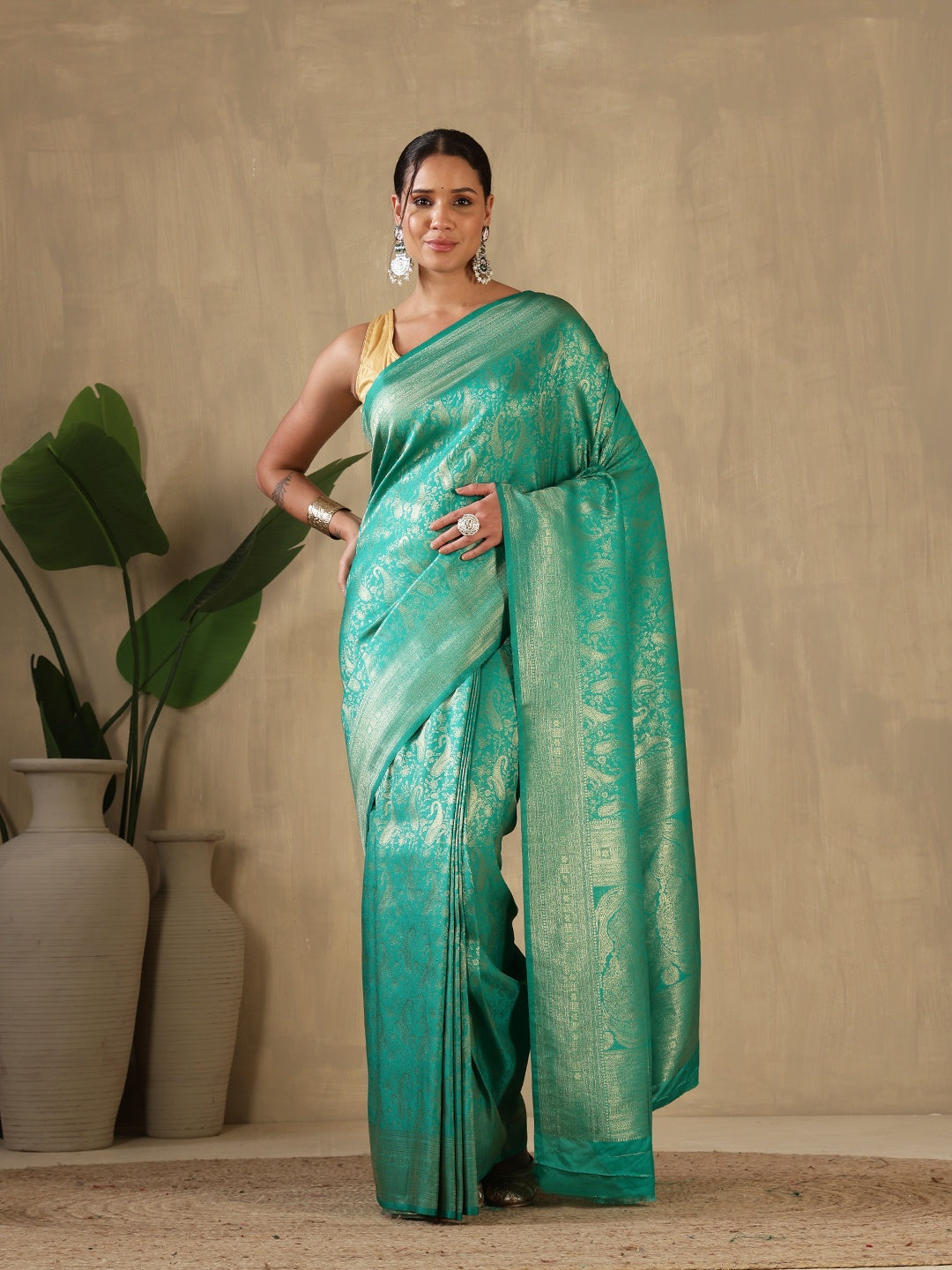 Note: The blouse shown in the pictures is just for Photoshoot purposes. The blouse you will get will be an attached running blouse.