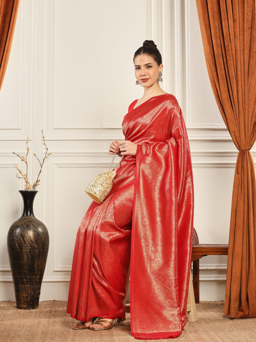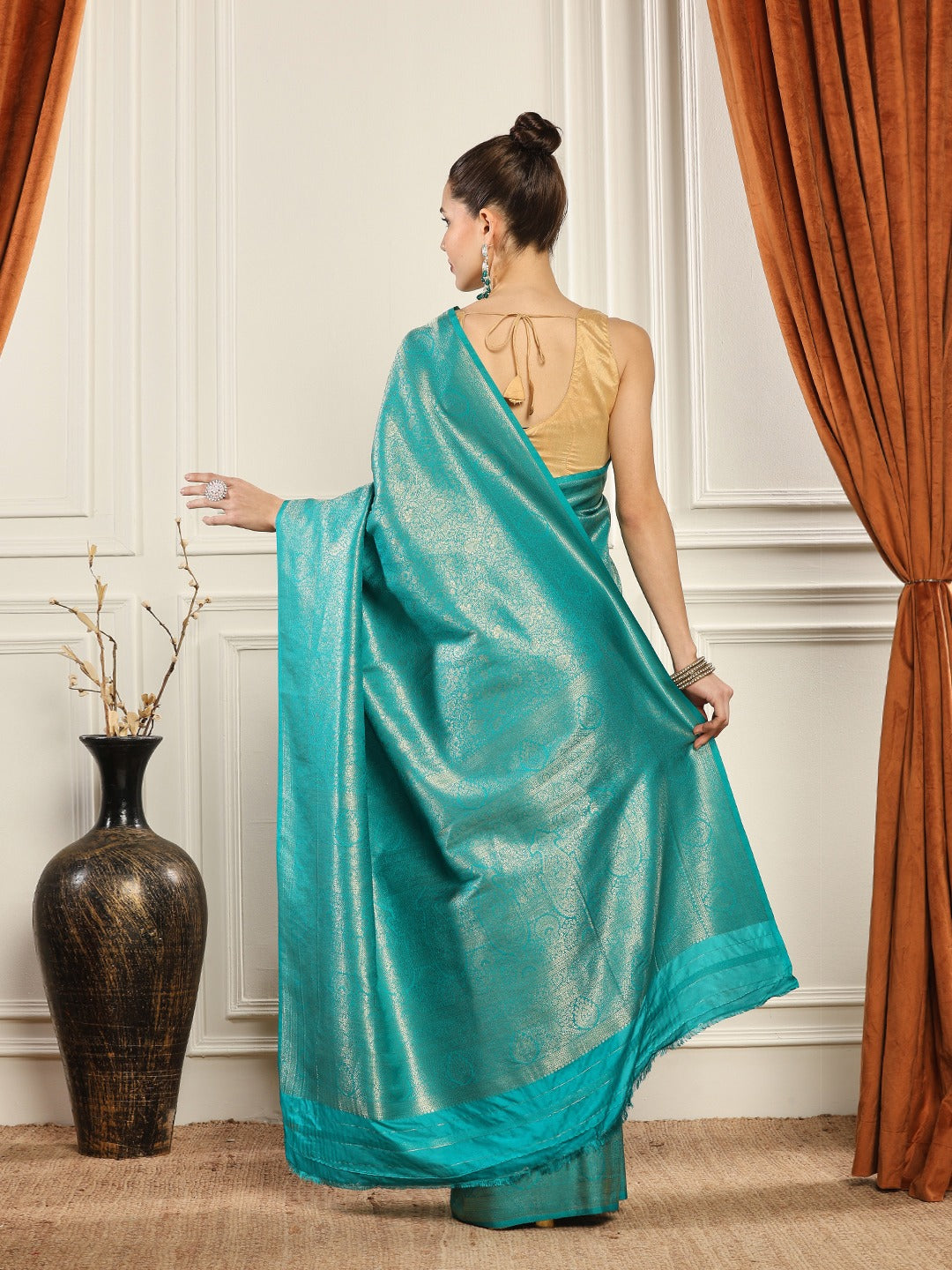 Note: The blouse shown in the pictures is just for Photoshoot purposes. The blouse you will get will be an attached running blouse.