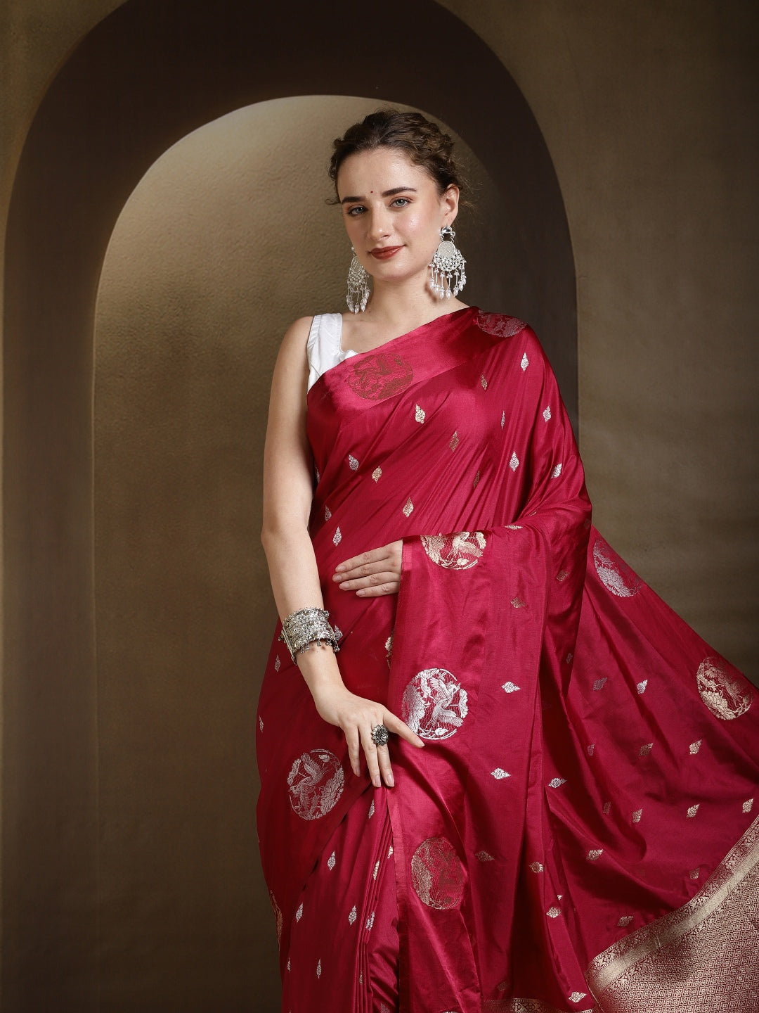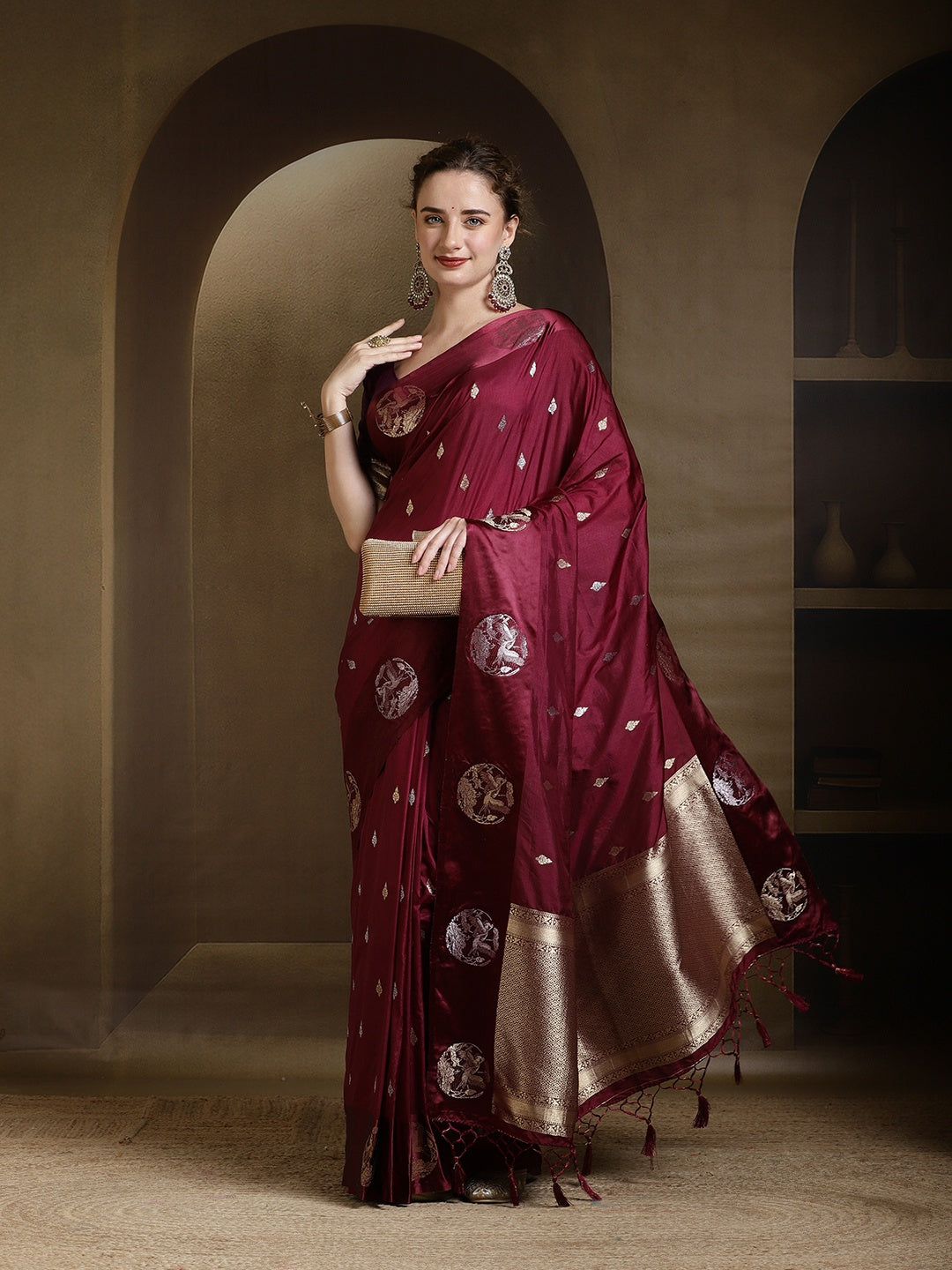 Note: The blouse shown in the pictures is just for Photoshoot purposes. The blouse you will get will be an attached running blouse.