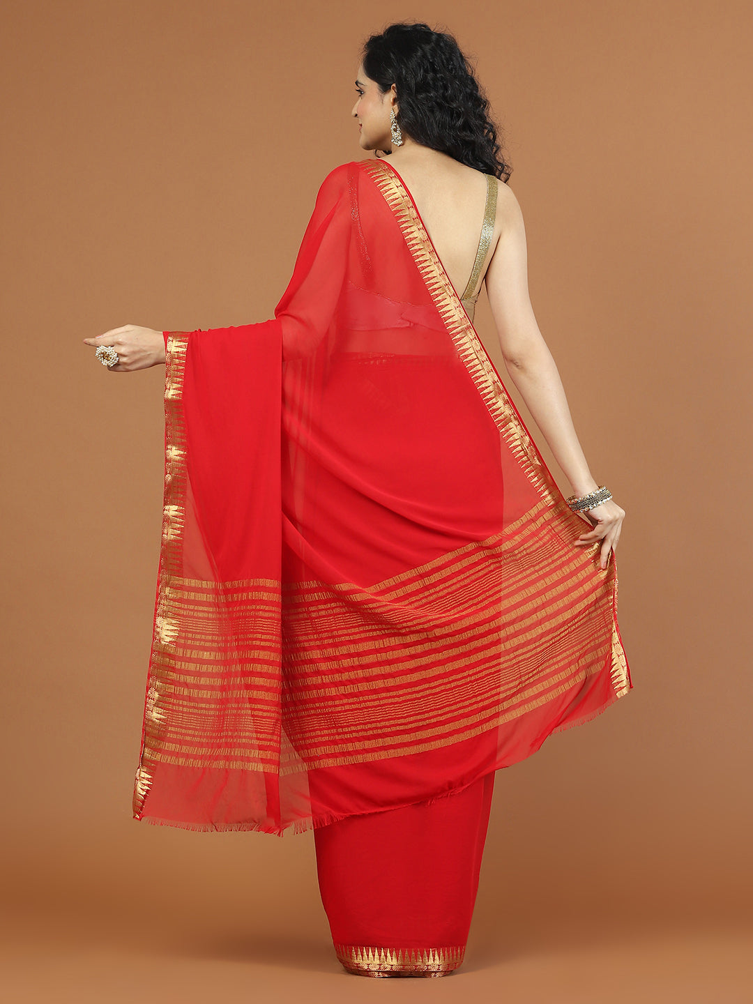 Note:The blouse shown in the pictures is just for Photoshoot purposes. The blouse you will get will be an attached running blouse.