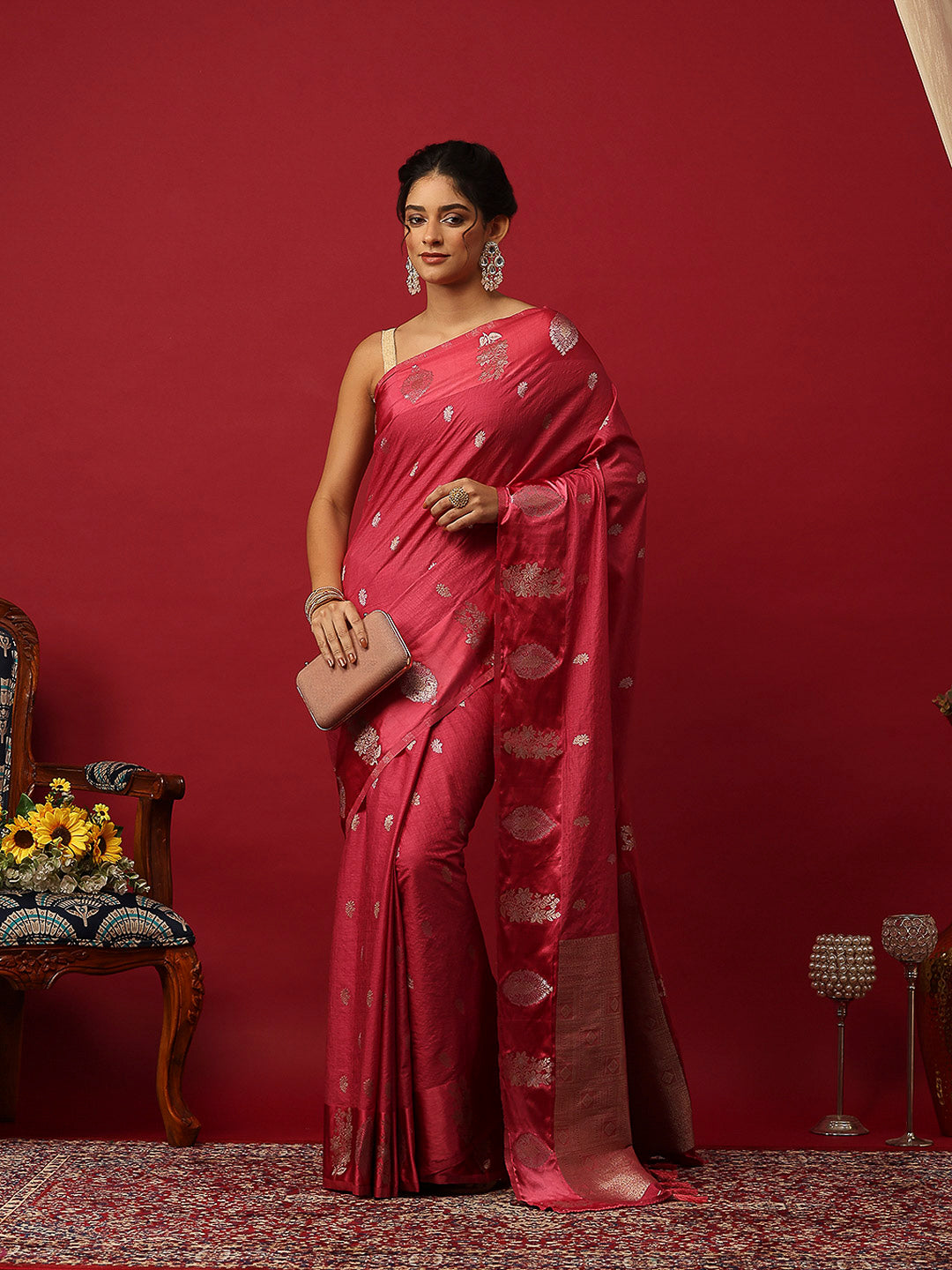 Woven Design Art Silk Onion Pink Saree