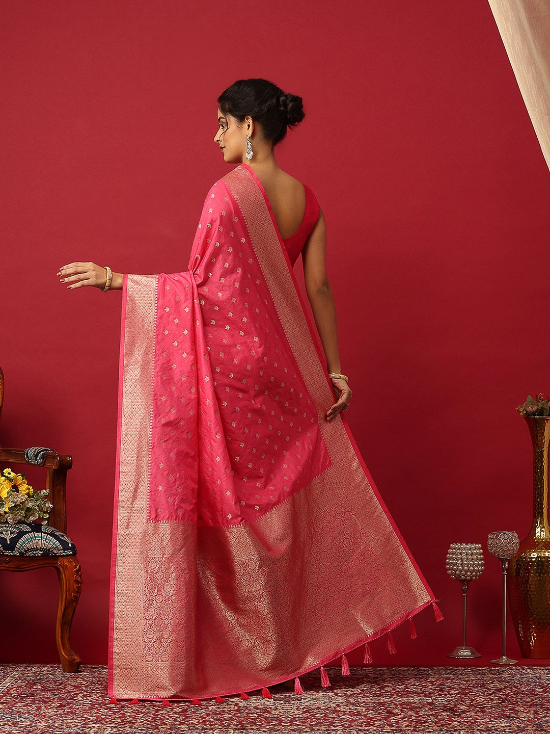 Note: The blouse shown in the pictures is just for Photoshoot purposes. The blouse you will get will be an attached running blouse.