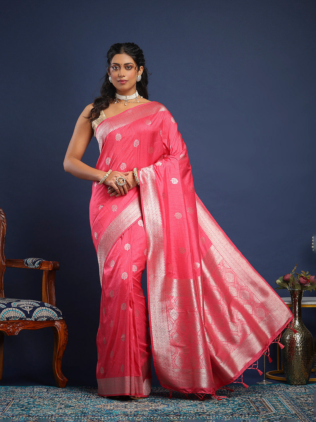 Note: The blouse shown in the pictures is just for Photoshoot purposes. The blouse you will get will be an attached running blouse.