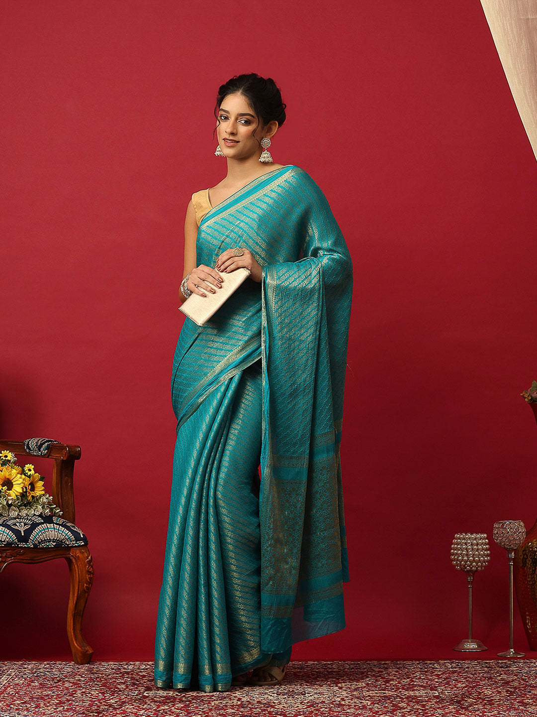 Note: The blouse shown in the pictures is just for Photoshoot purposes. The blouse you will get will be an attached running blouse.
