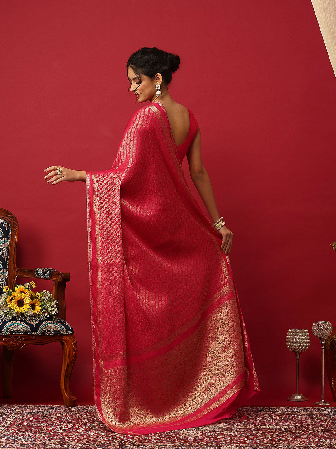 Note: The blouse shown in the pictures is just for Photoshoot purposes. The blouse you will get will be an attached running blouse.