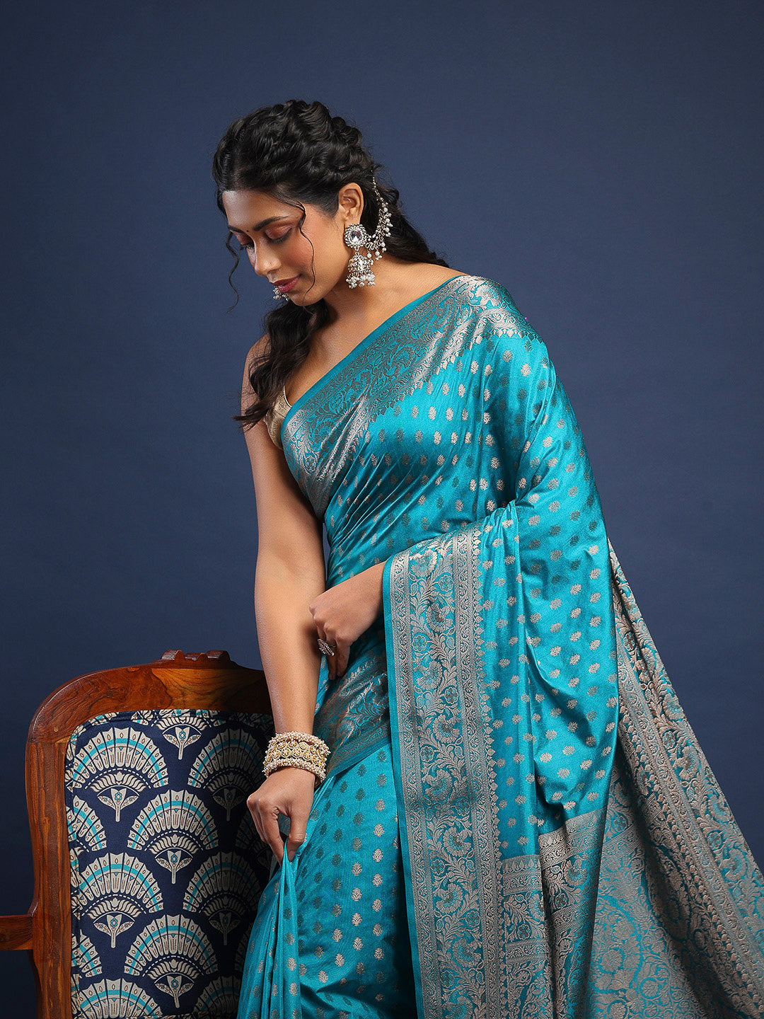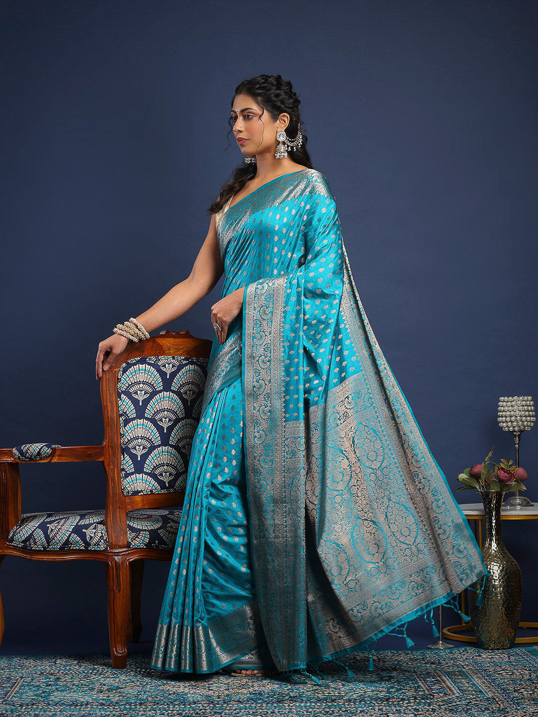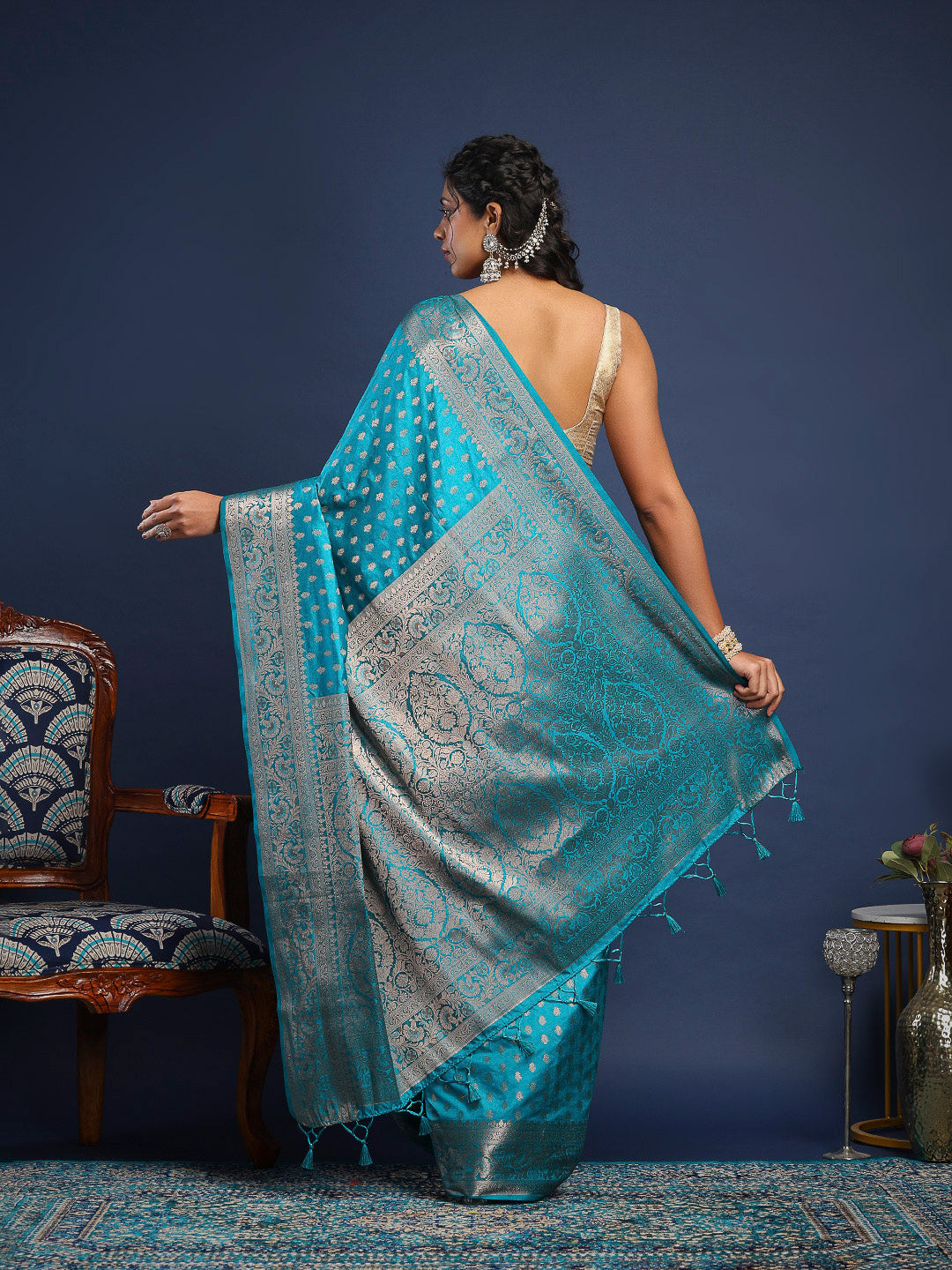 Note: The blouse shown in the pictures is just for Photoshoot purposes. The blouse you will get will be an attached running blouse.