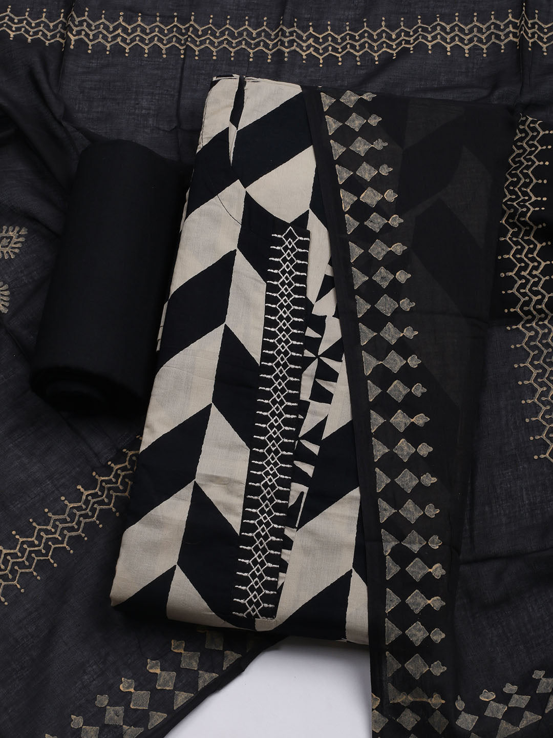 Embroidered Cotton Blend Unstitched Suit With Dupatta
