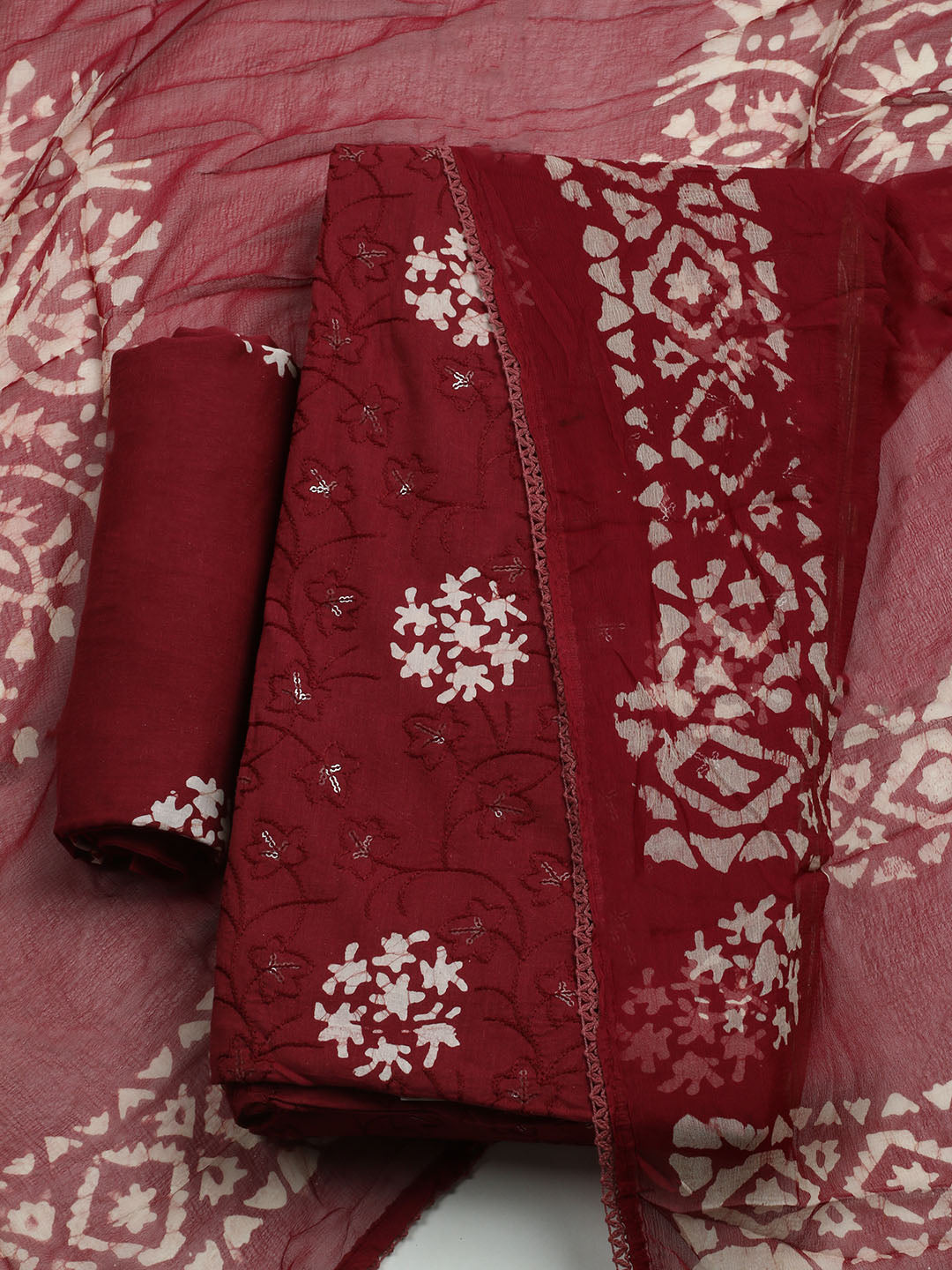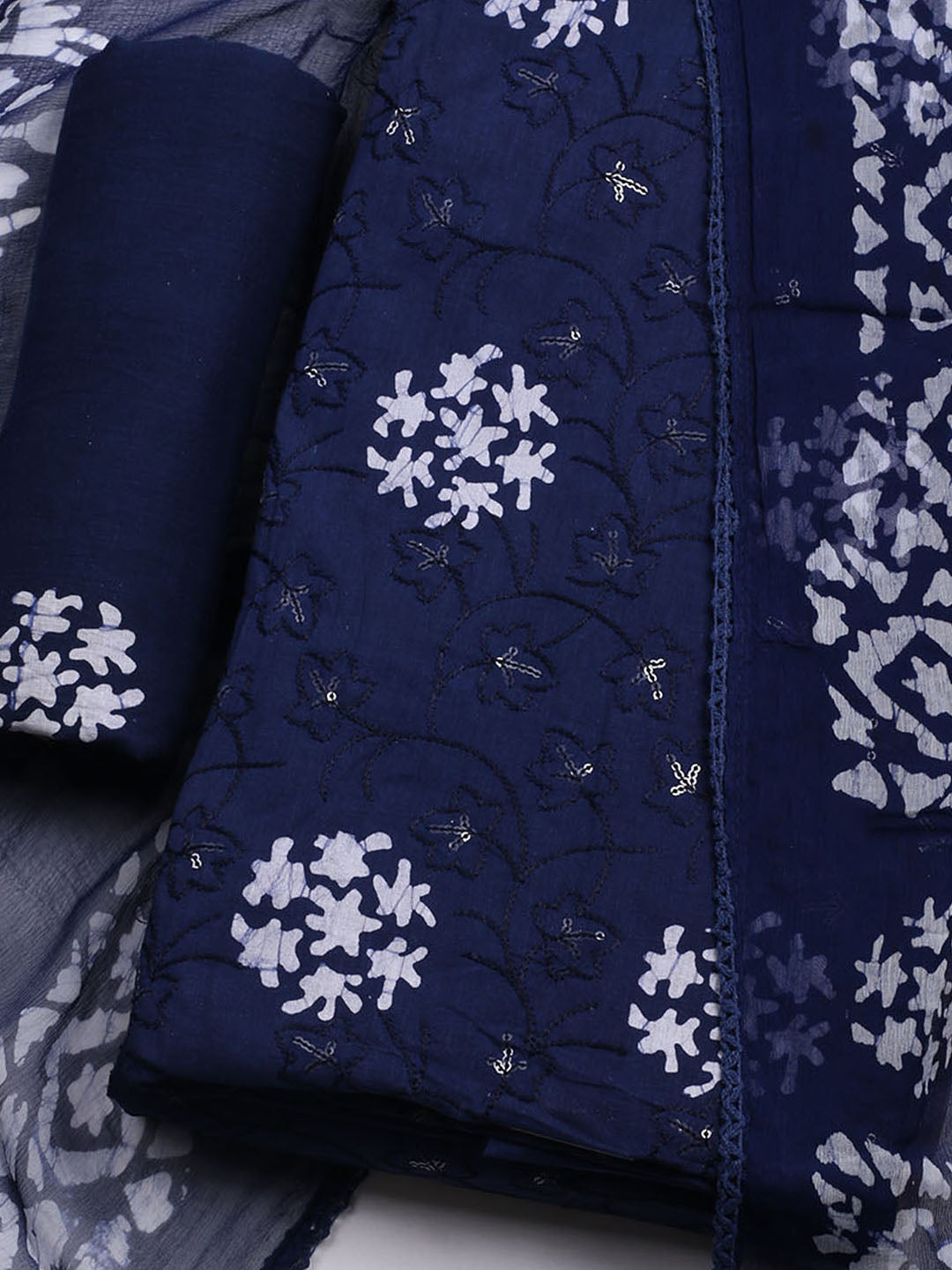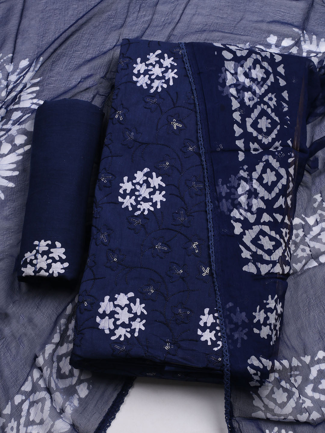 Printed Cotton Blend Unstitched Kurta With Pant & Dupatta