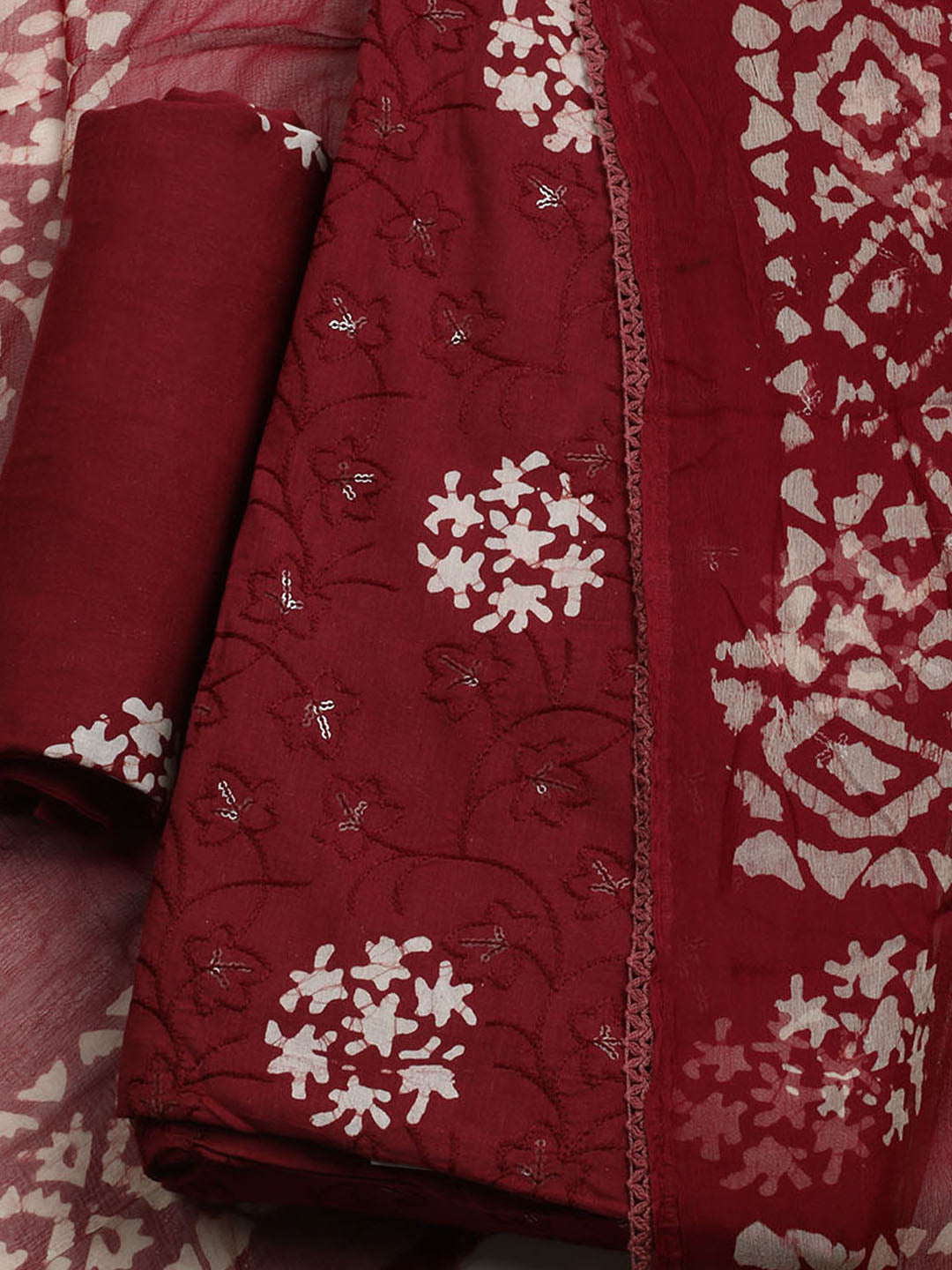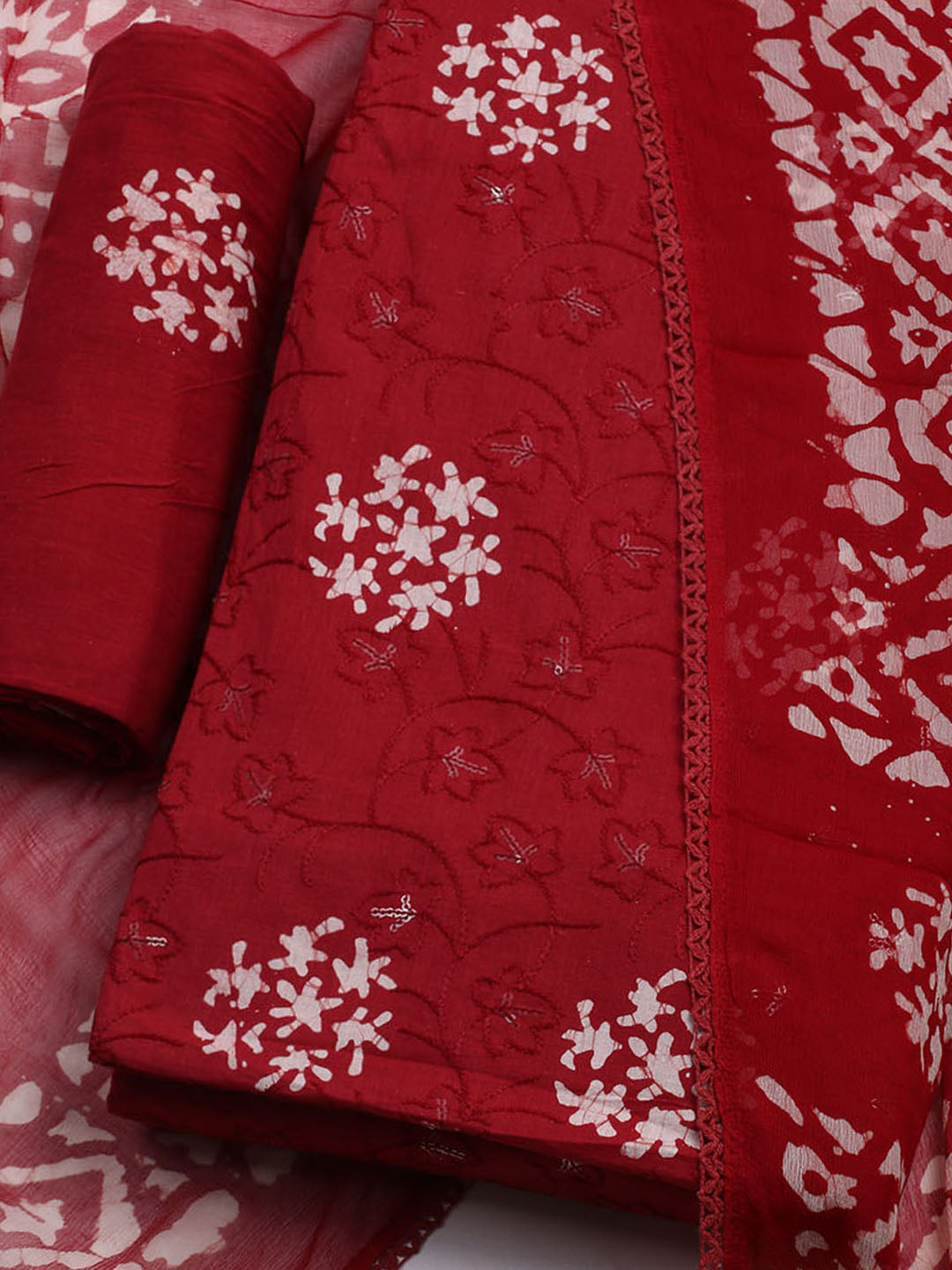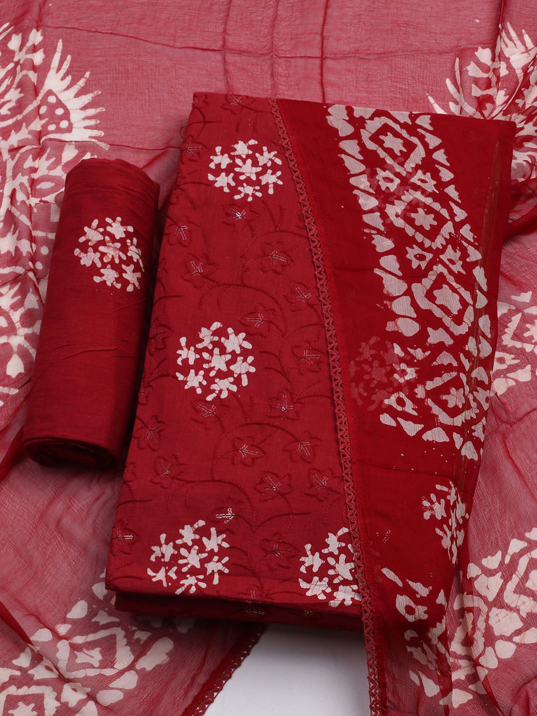 Printed Cotton Blend Unstitched Kurta With Pant & Dupatta