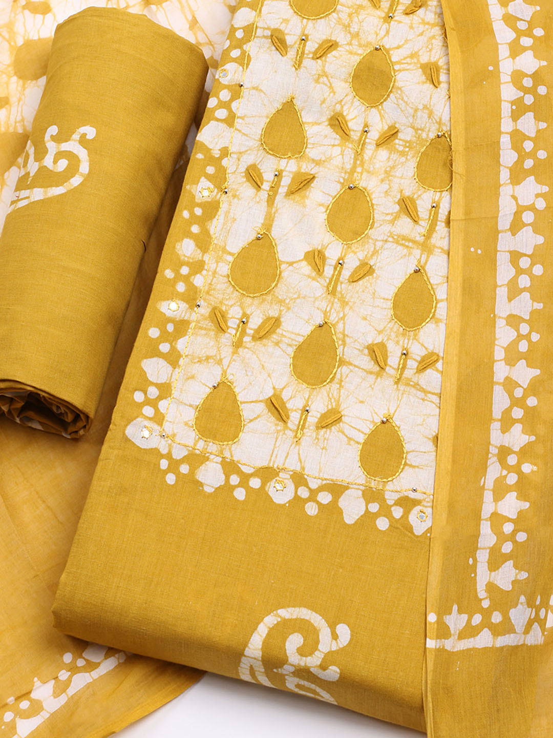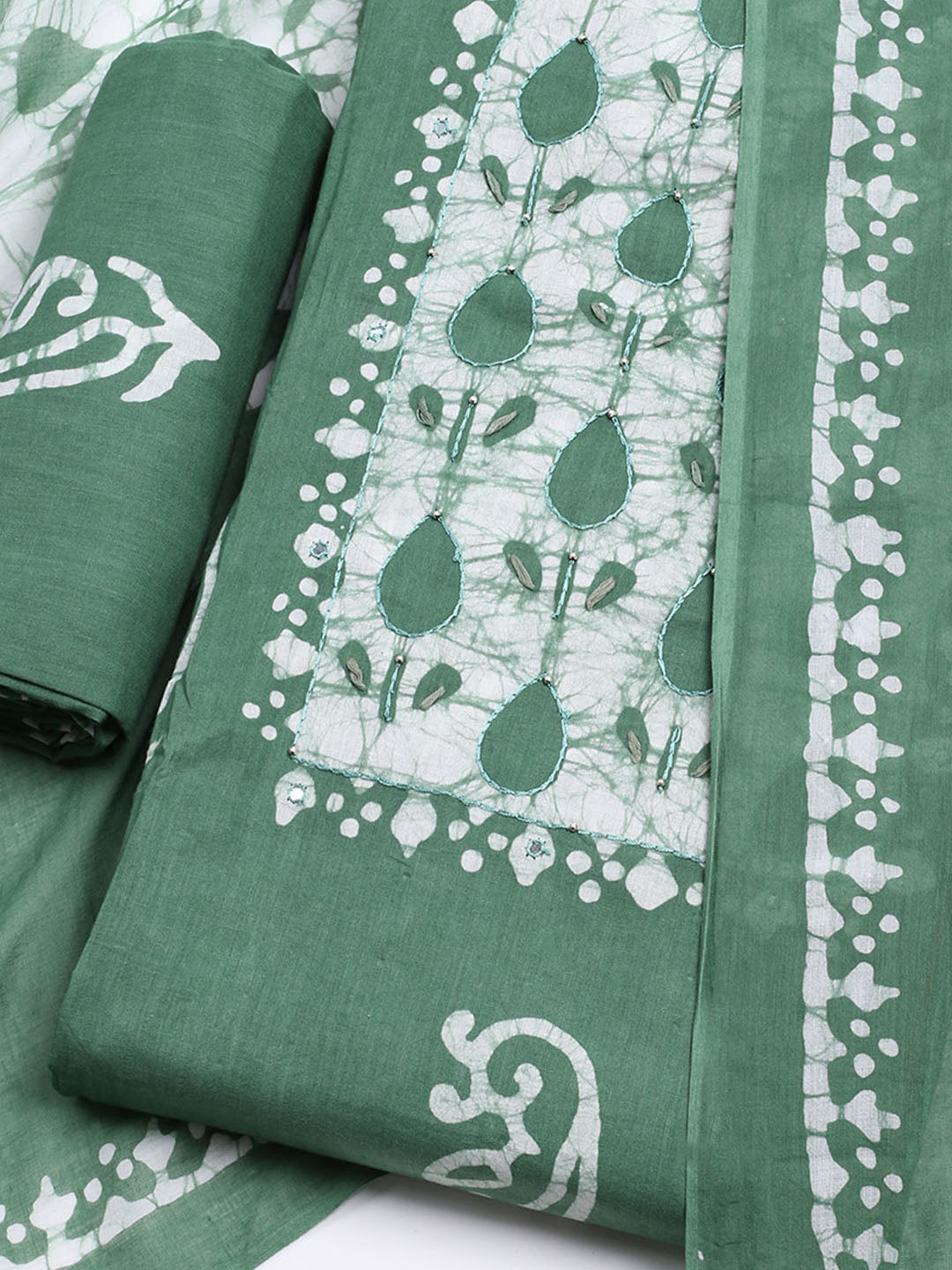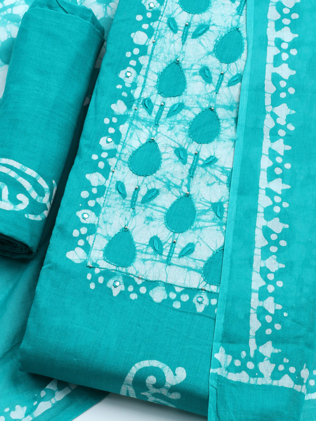 Printed Cotton Blend Unstitched Kurta With Pant & Dupatta