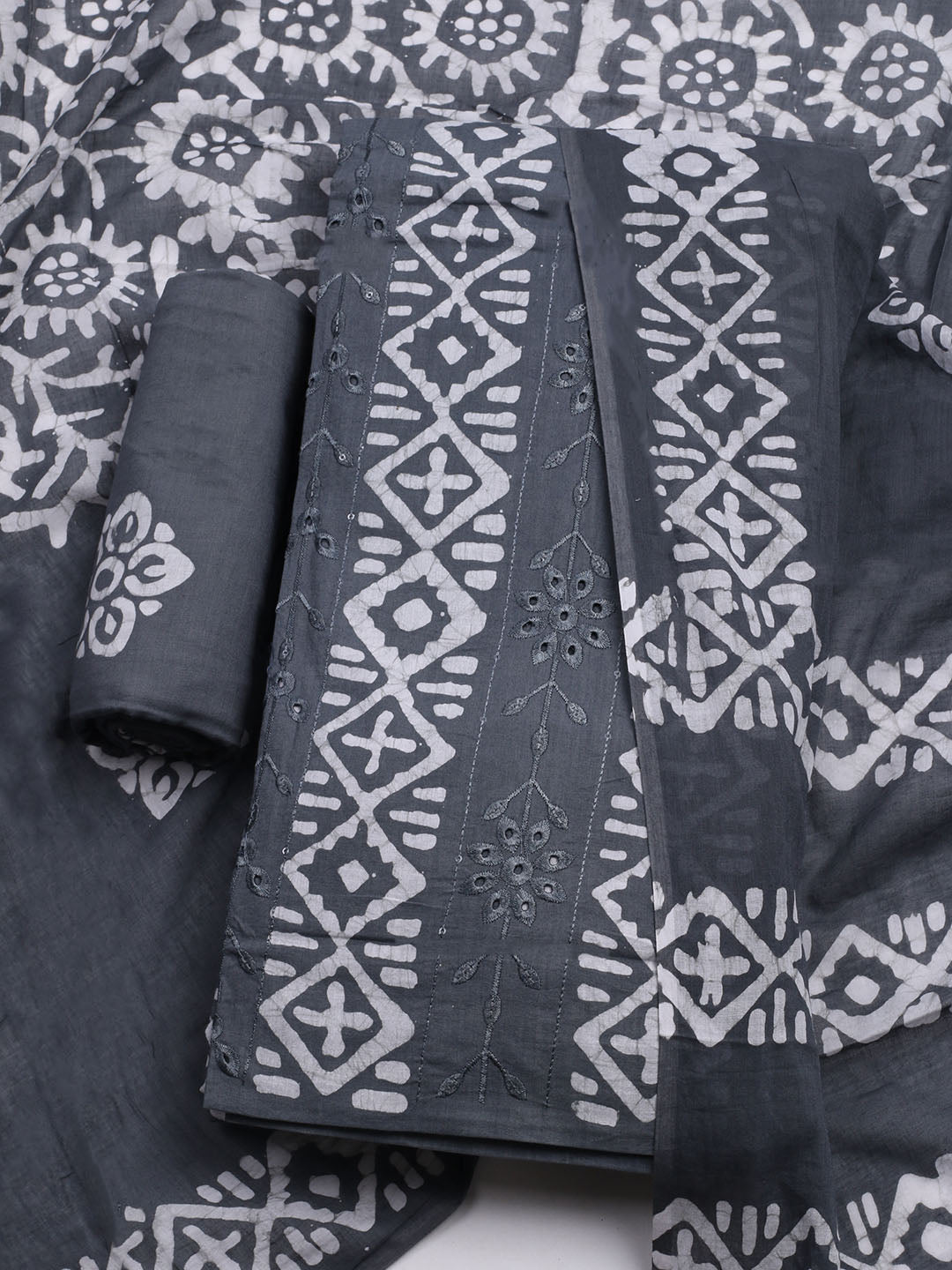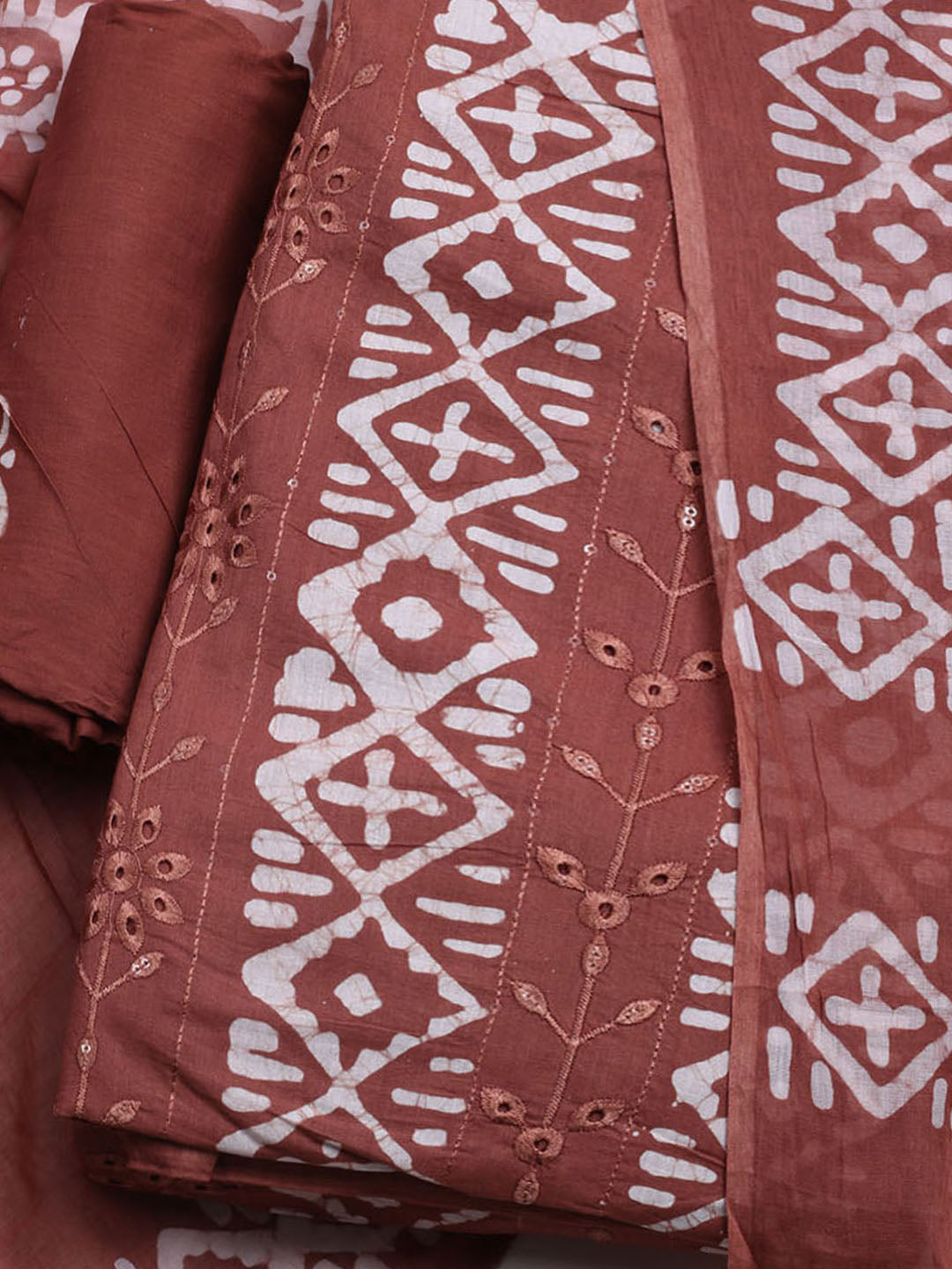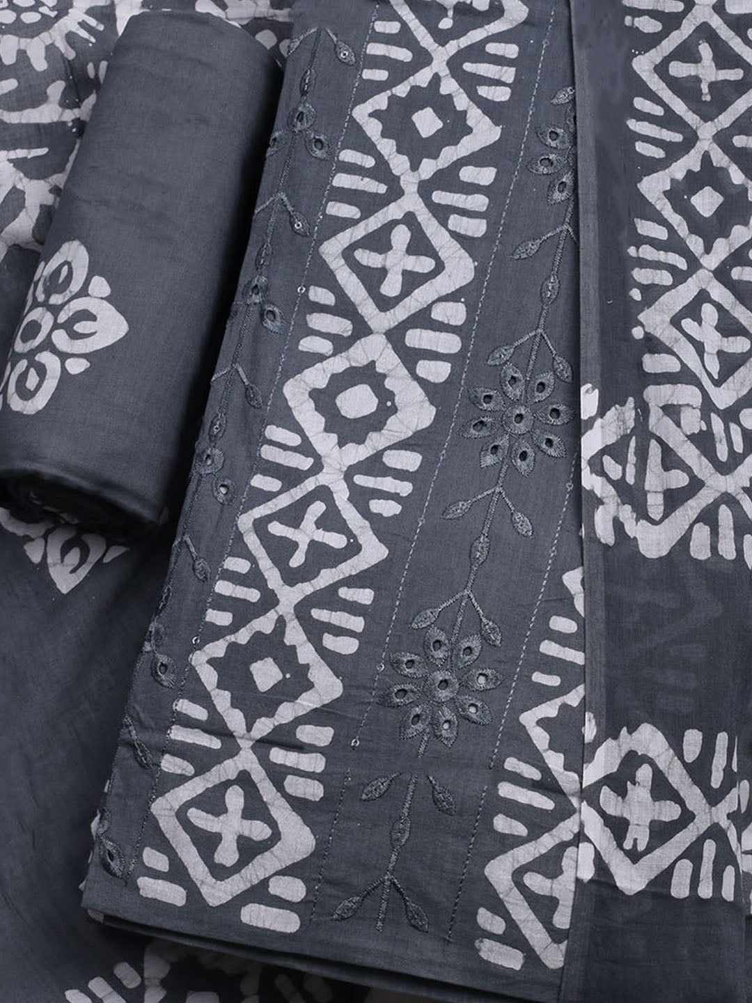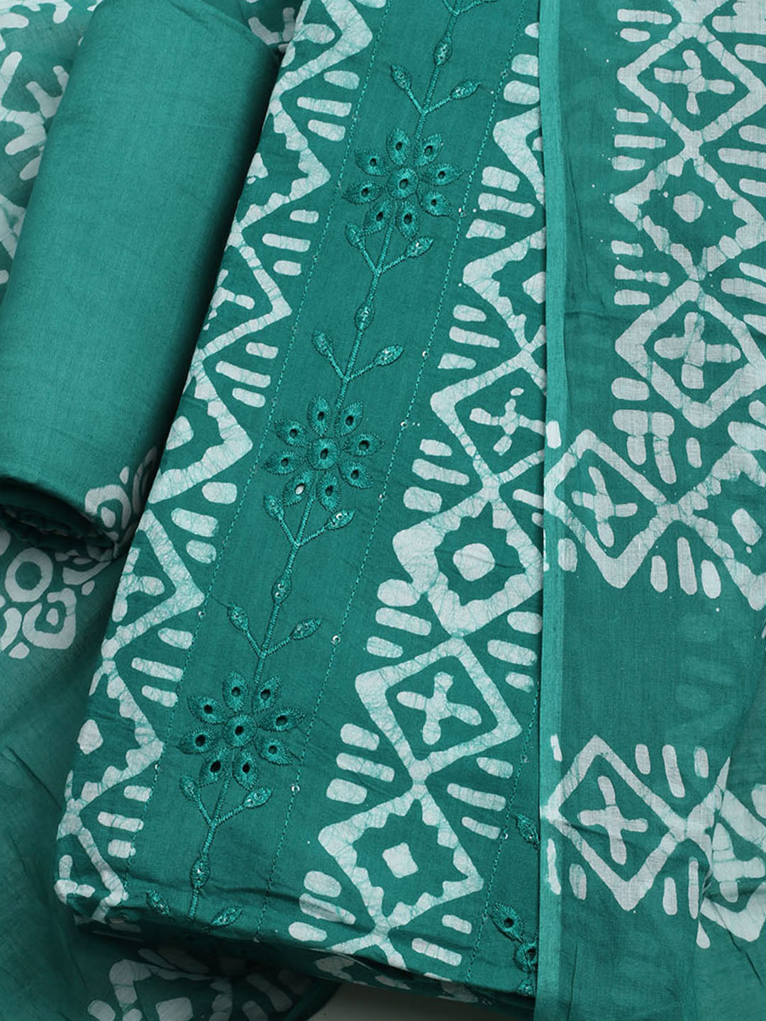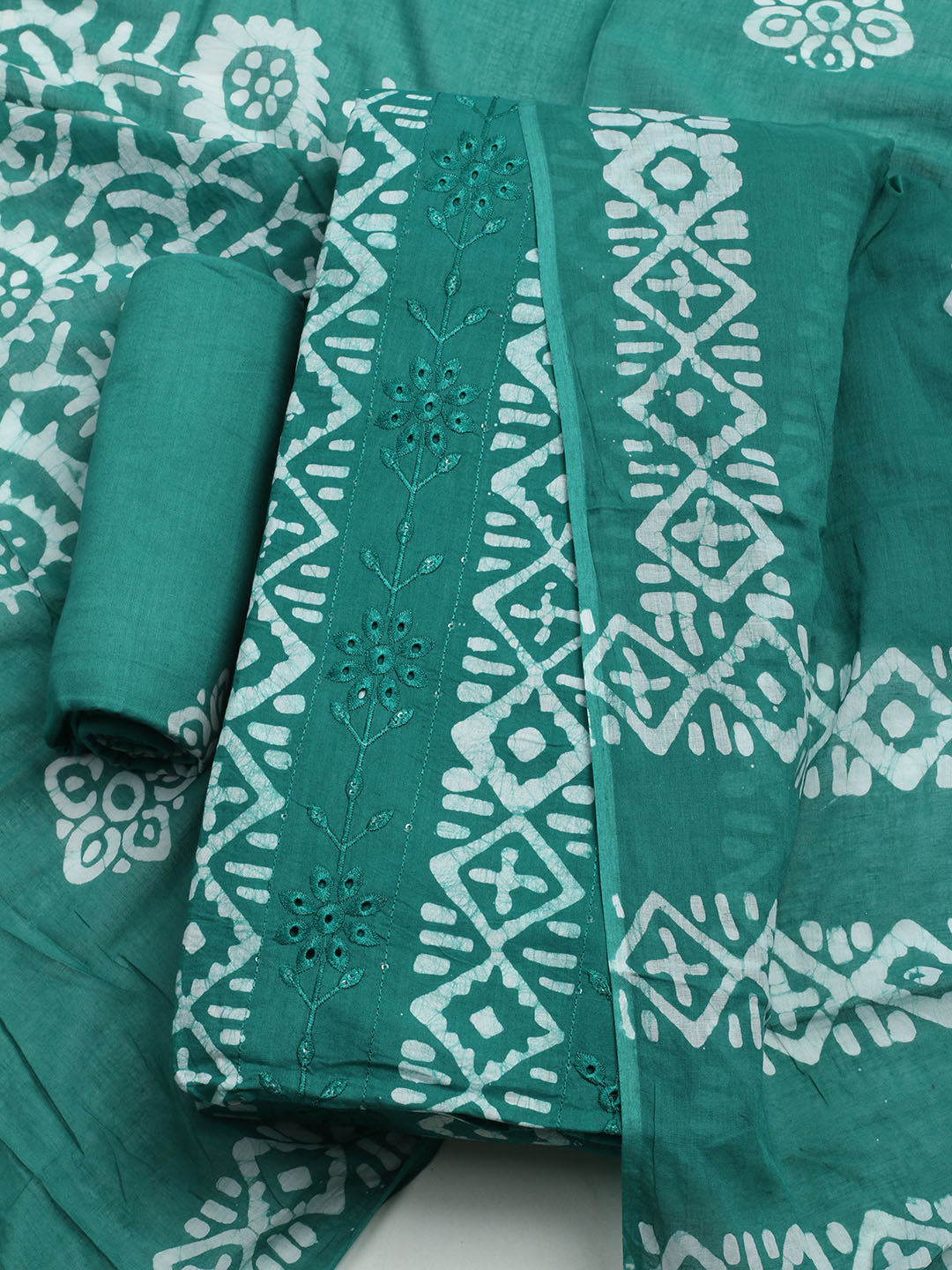 Printed Cotton Blend Unstitched Kurta With Pant & Dupatta