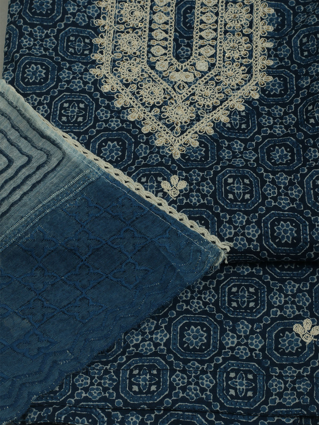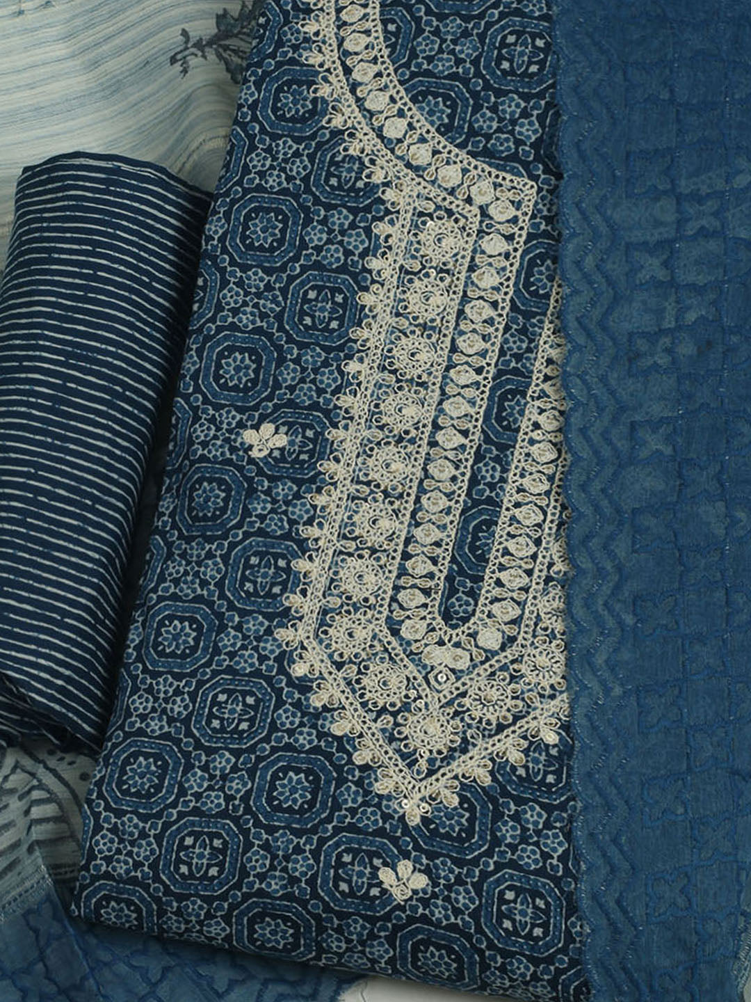 Printed Cotton Unstitched Suits Printed Suit With Pant & Dupatta