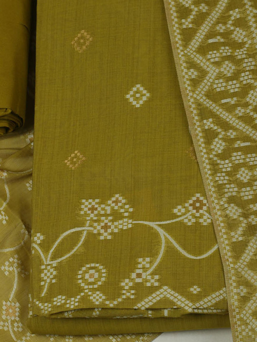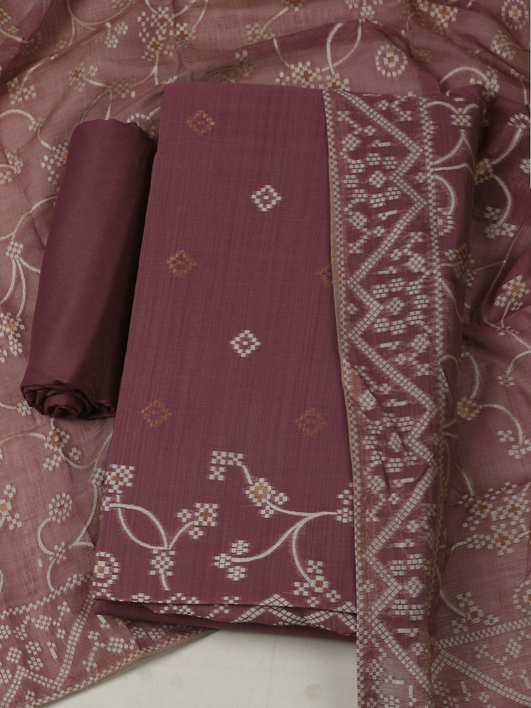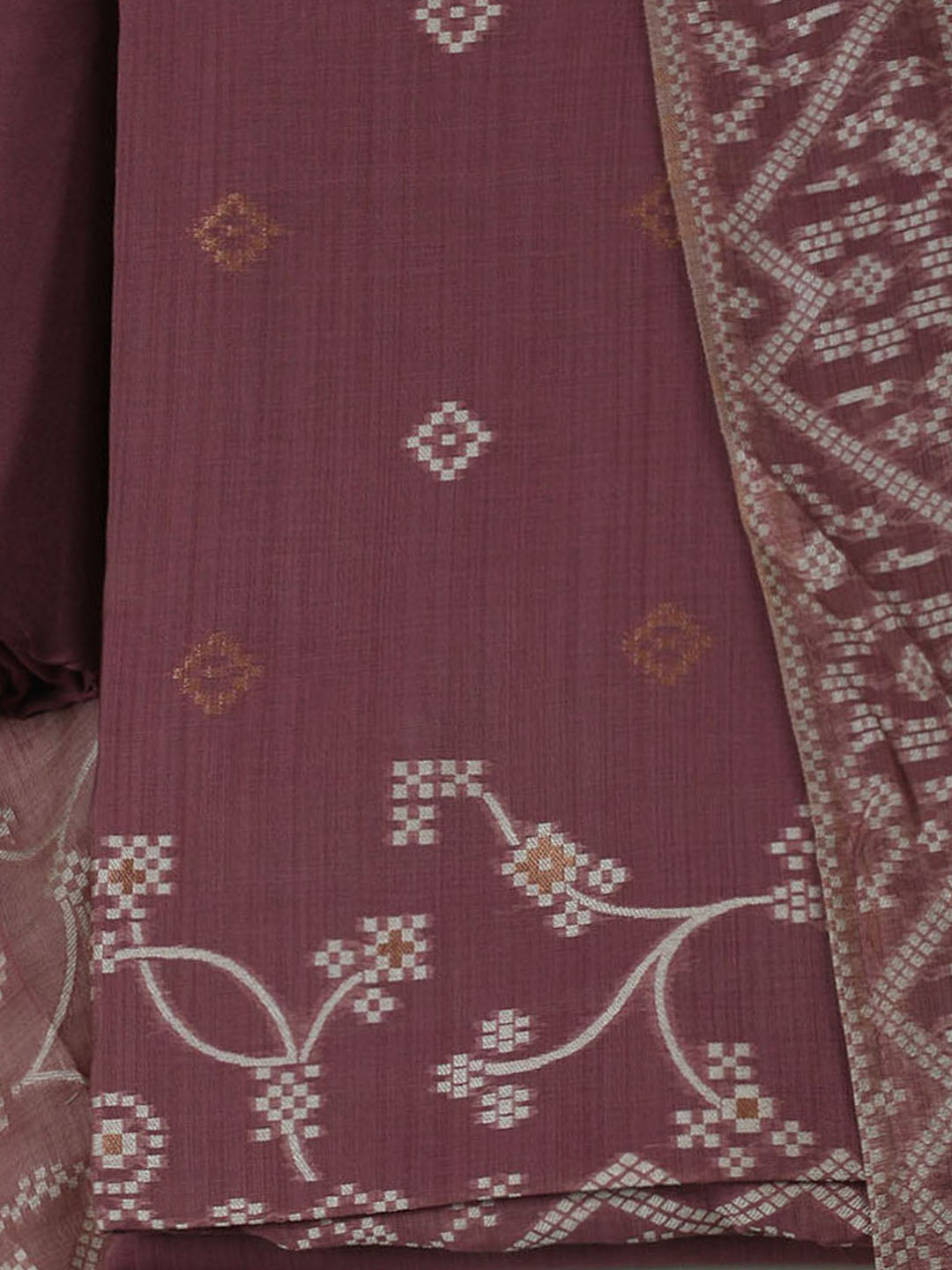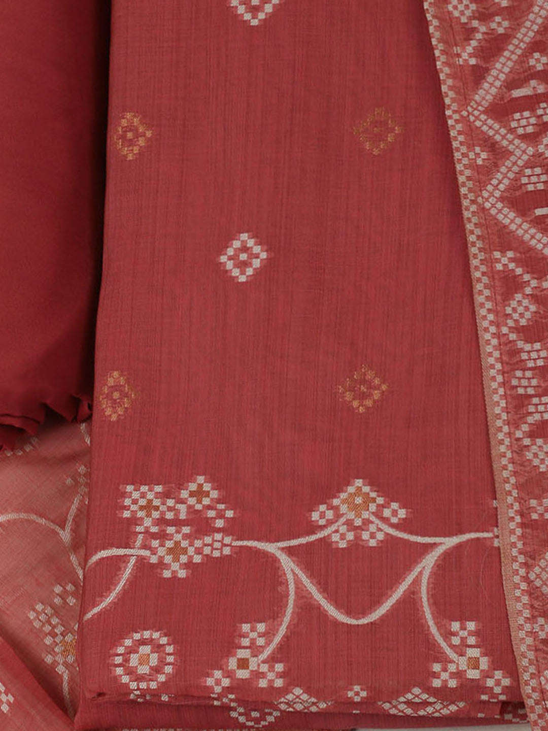 Embroidered Chanderi Unstitched Kurta With Pant & Dupatta