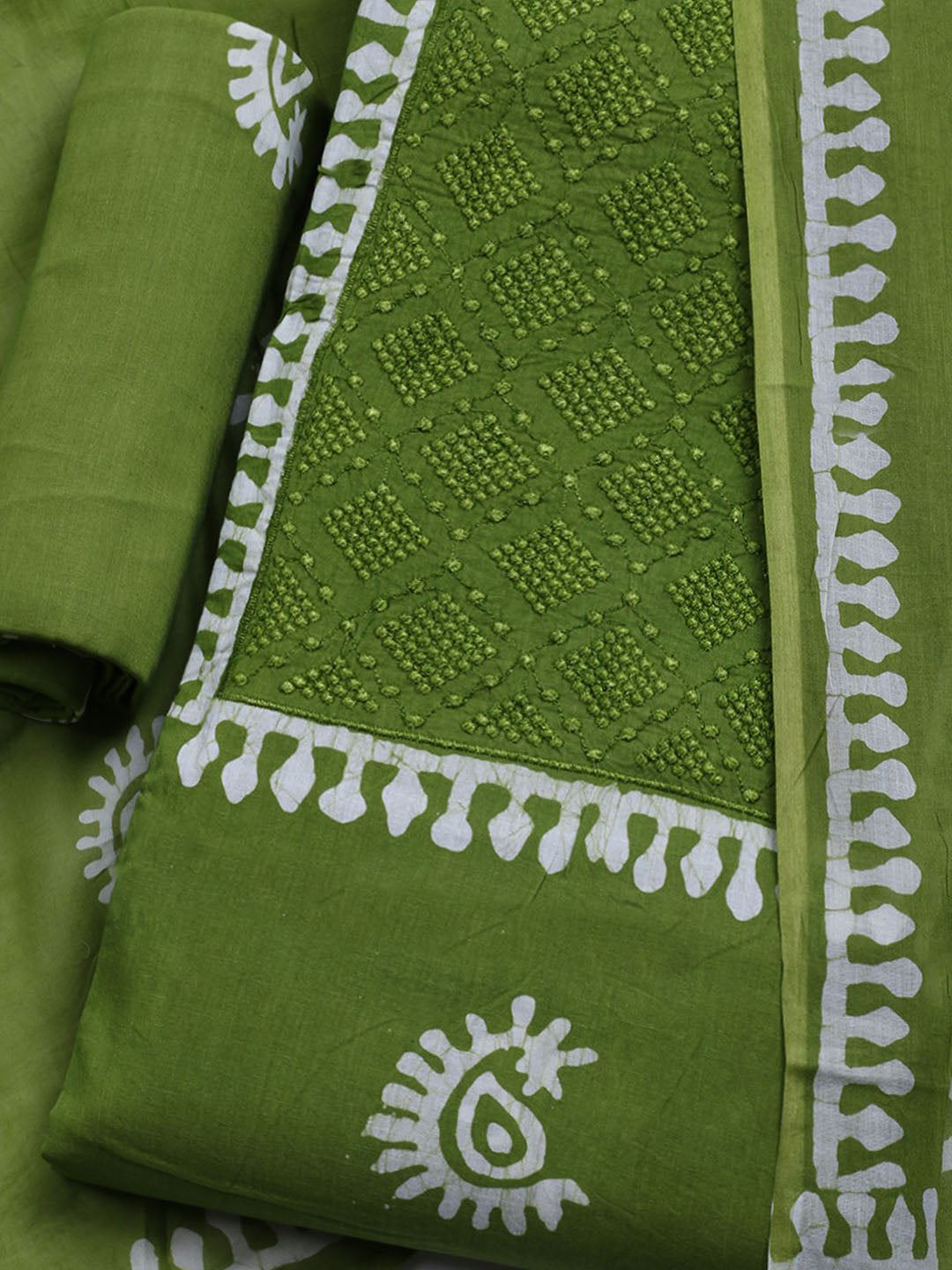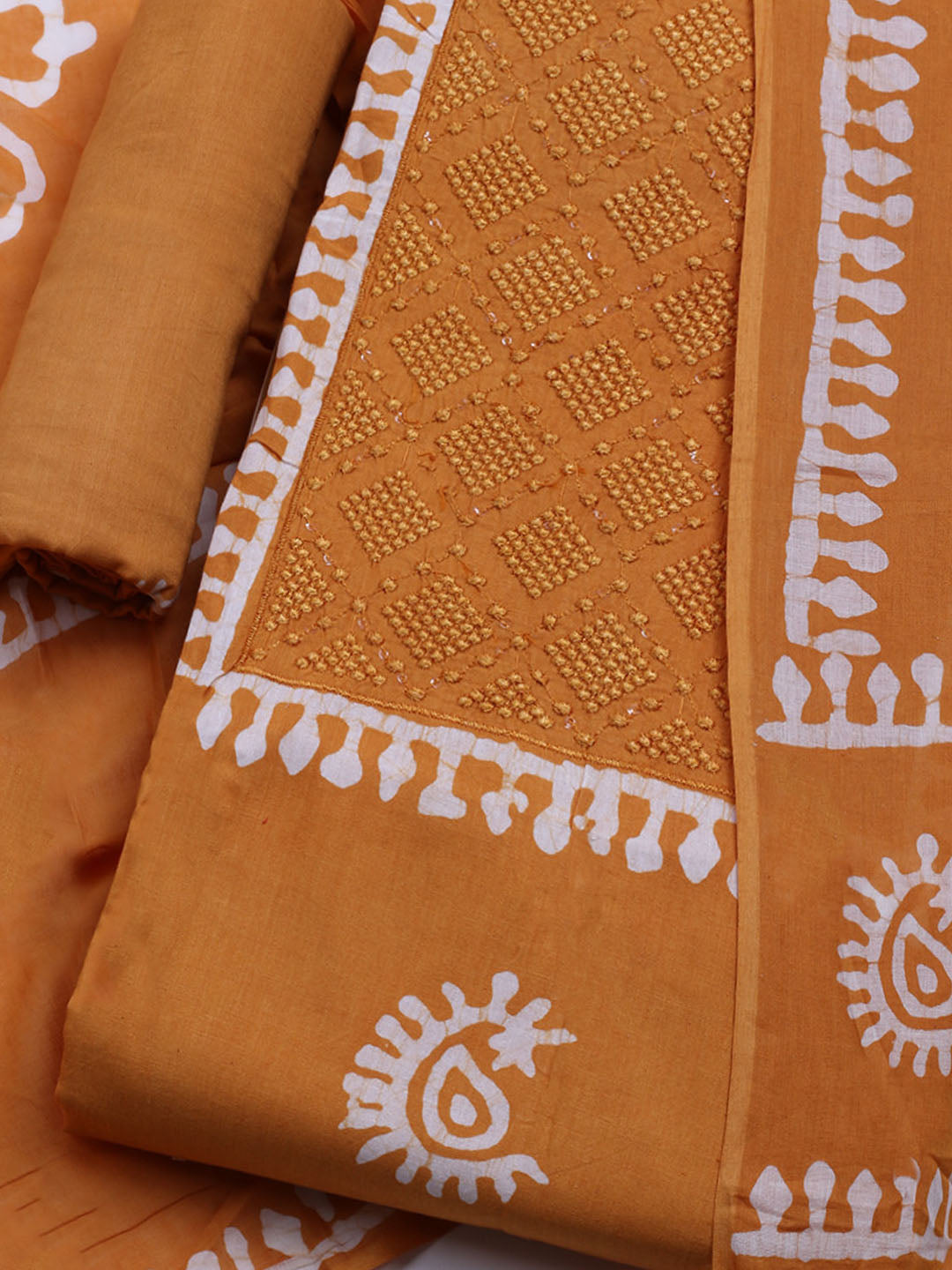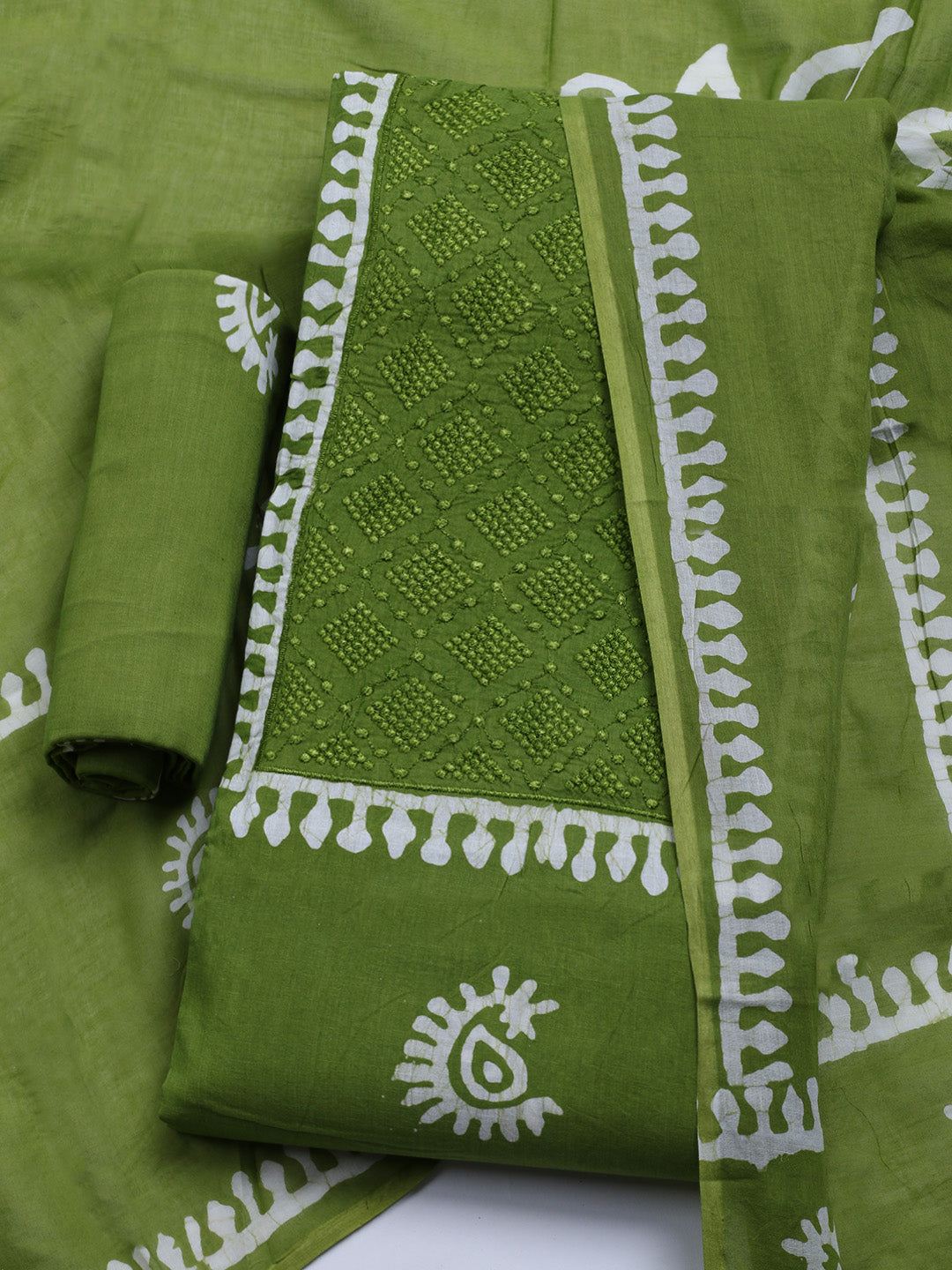 Printed Cotton Blend Unstitched Kurta With Pant & Dupatta