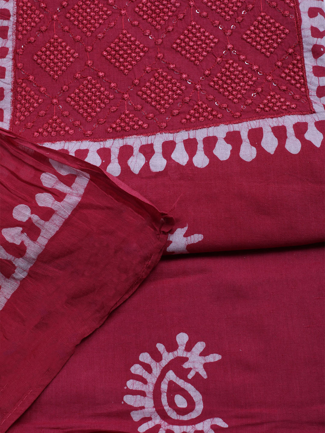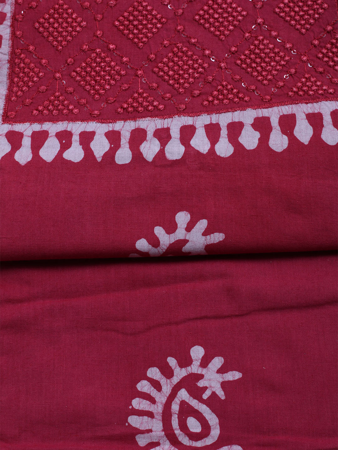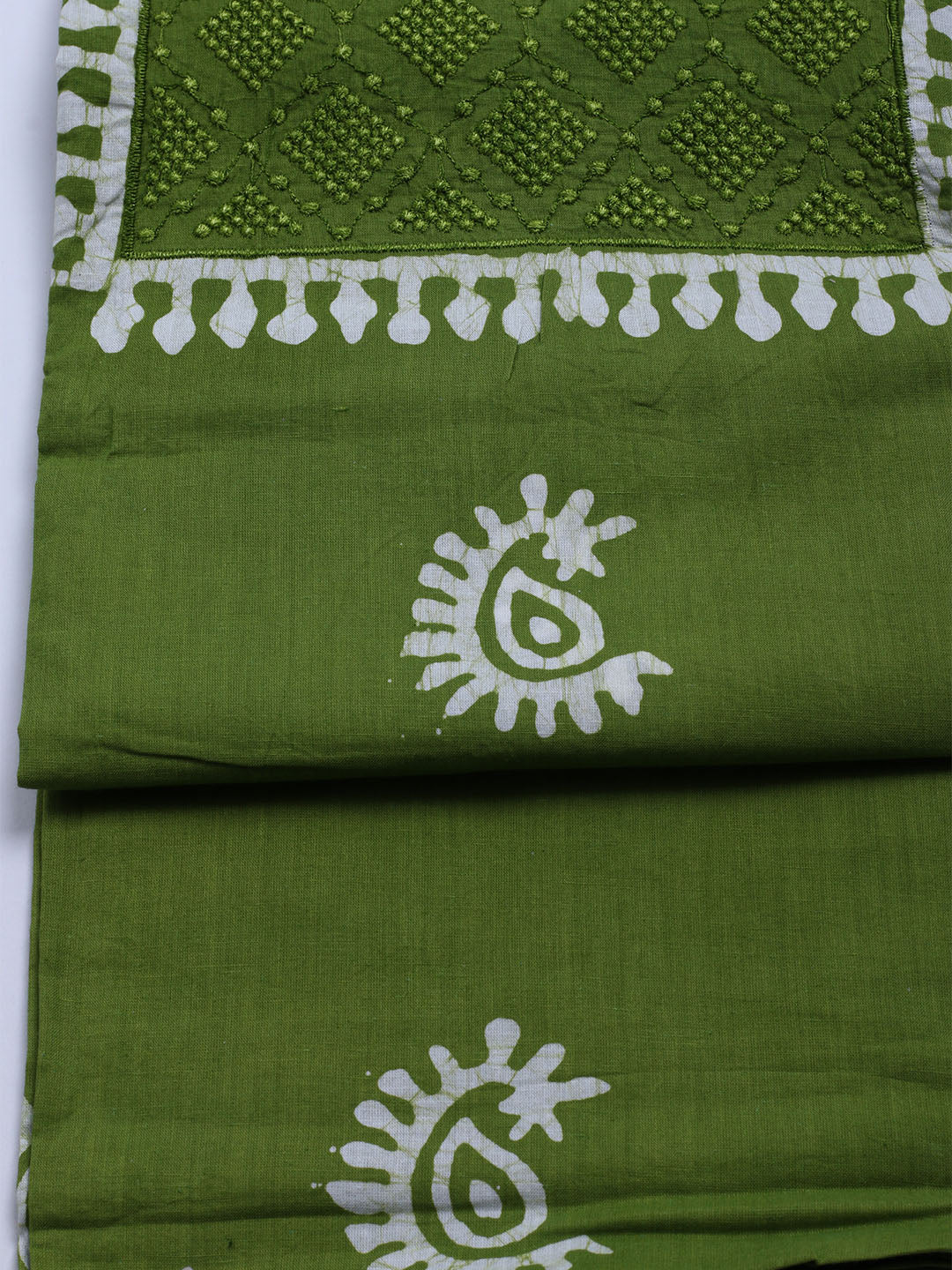 Printed Cotton Blend Unstitched Kurta With Pant & Dupatta