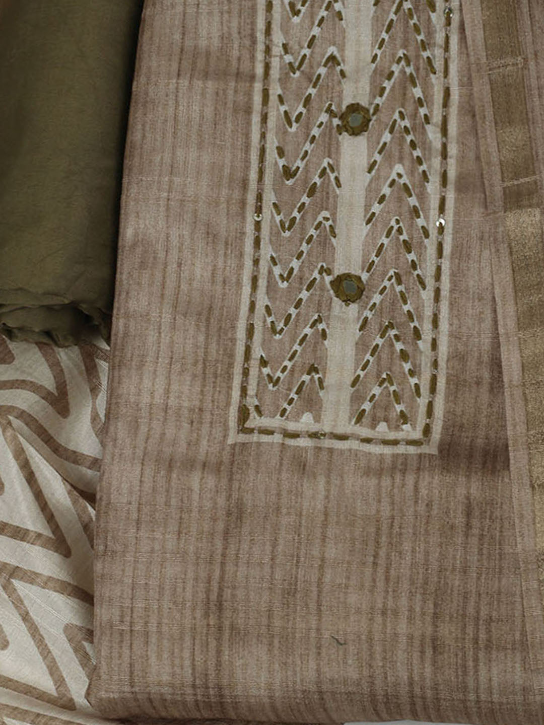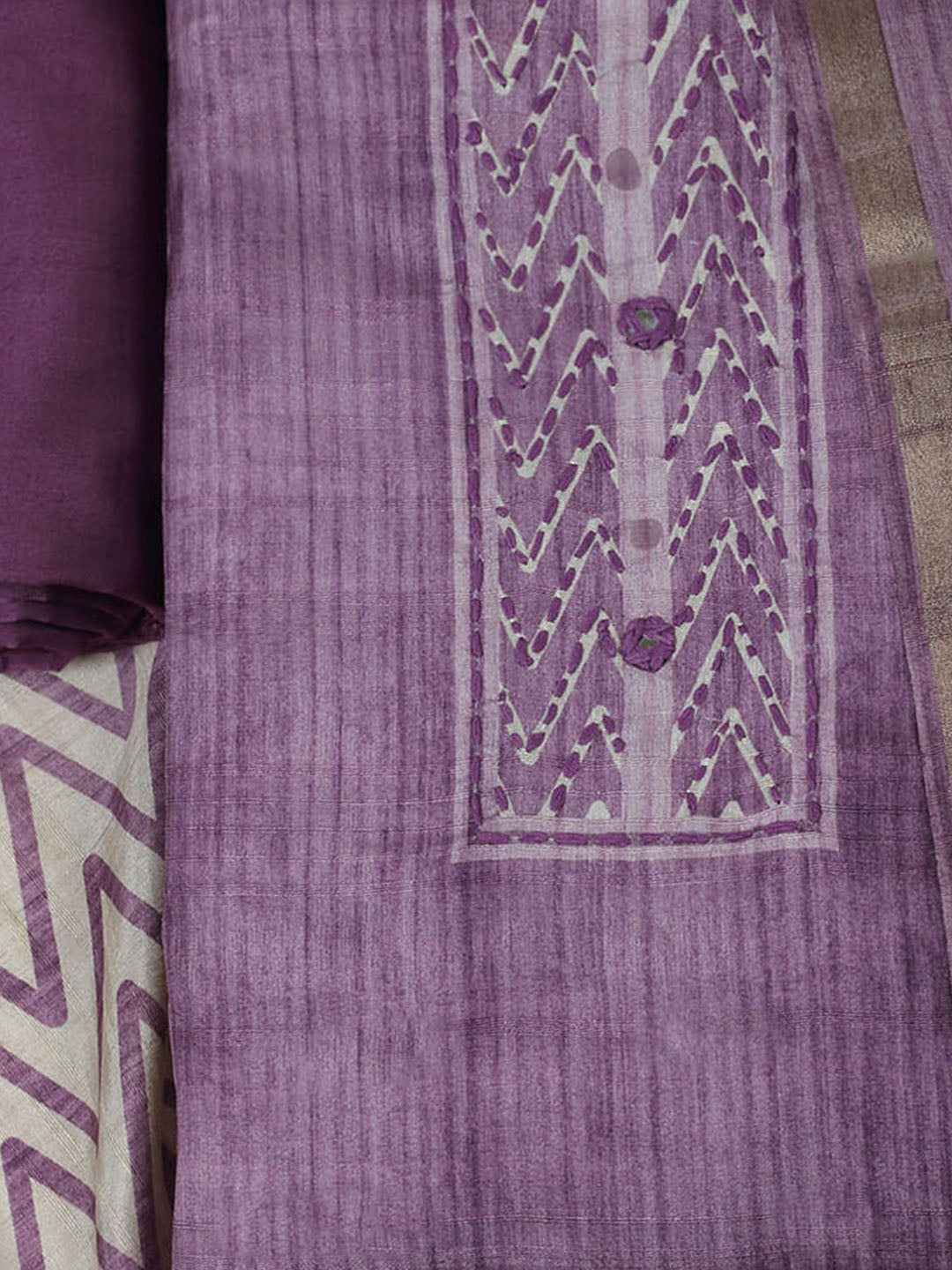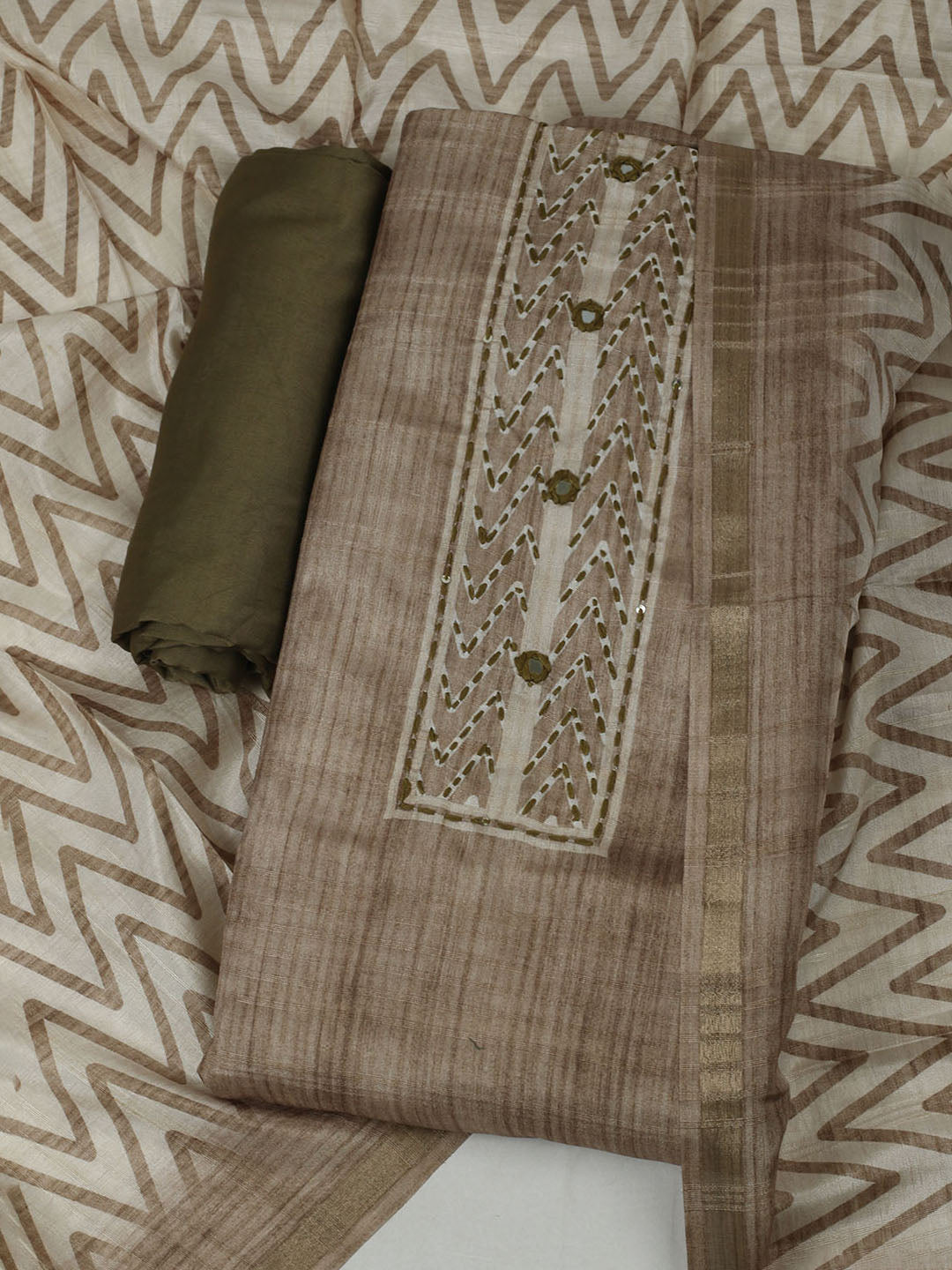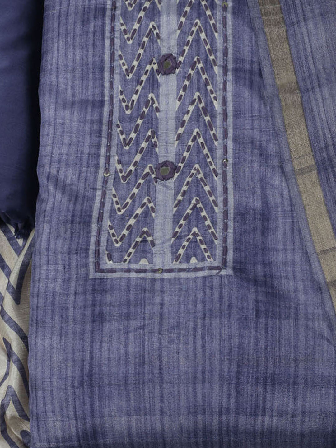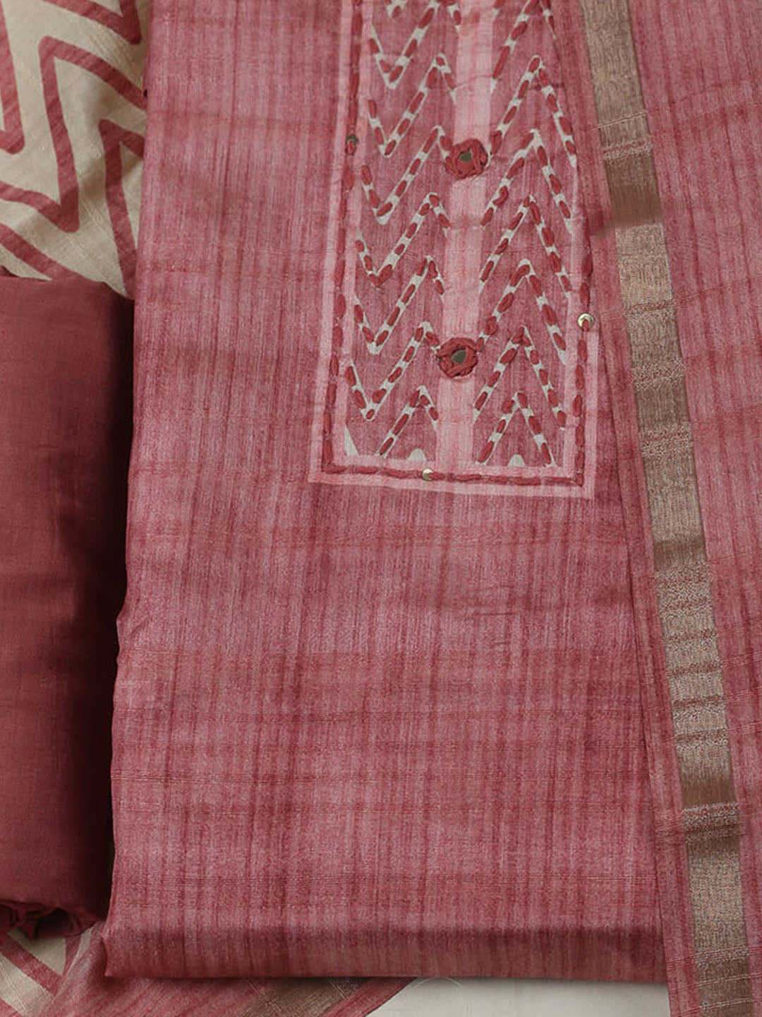 Embroidered Chanderi Unstitched Kurta With Pant & Dupatta