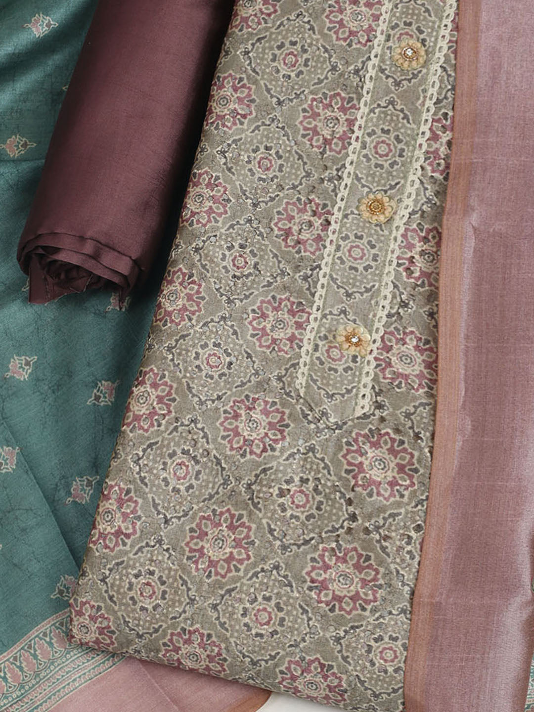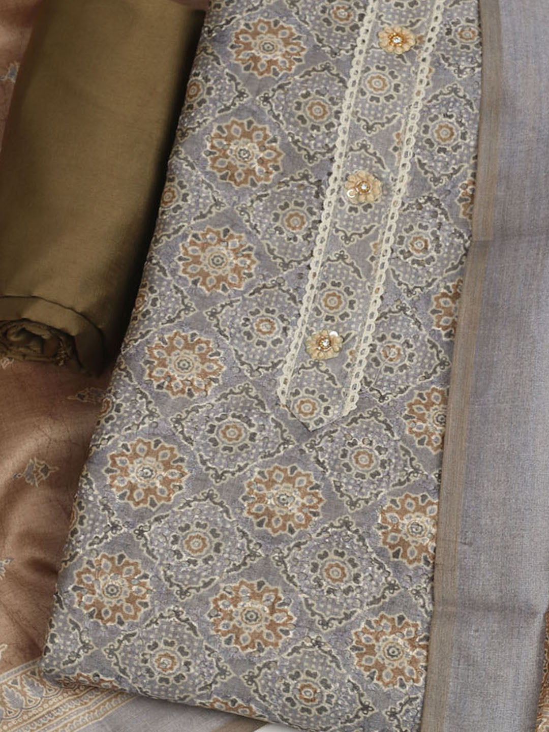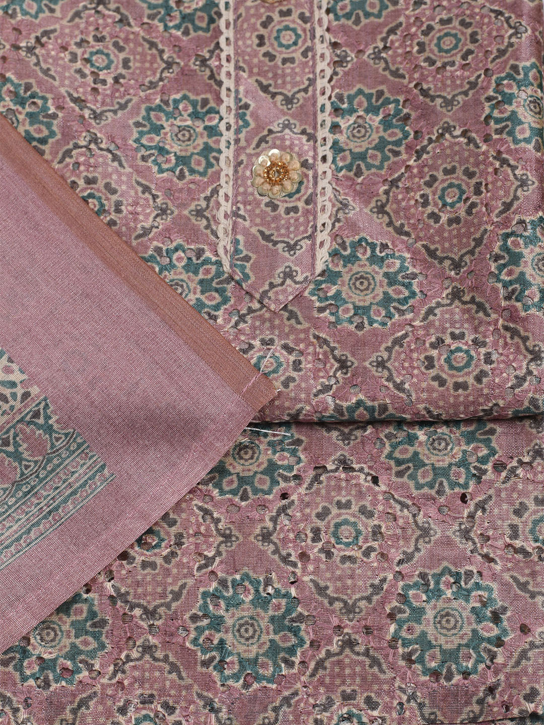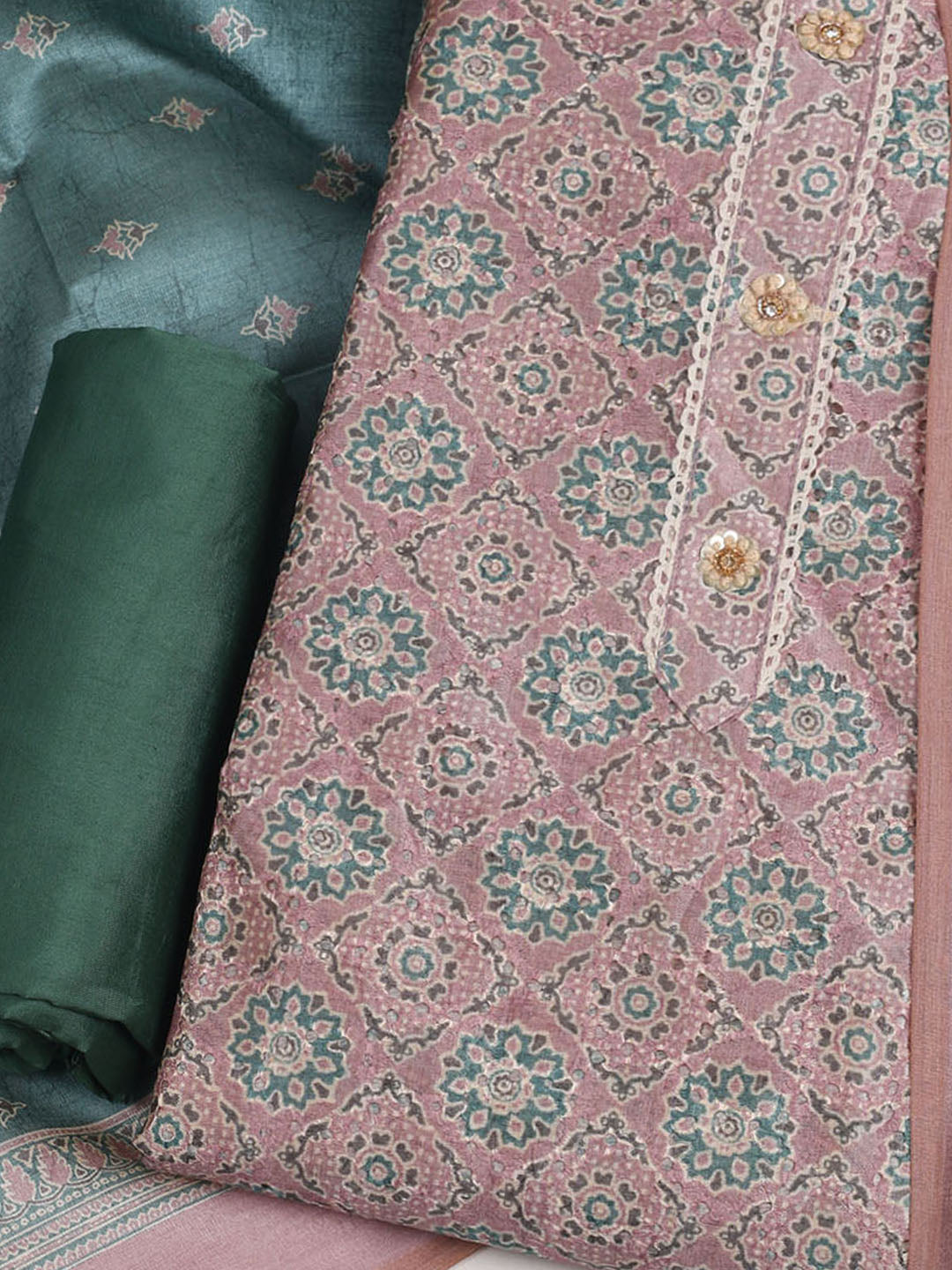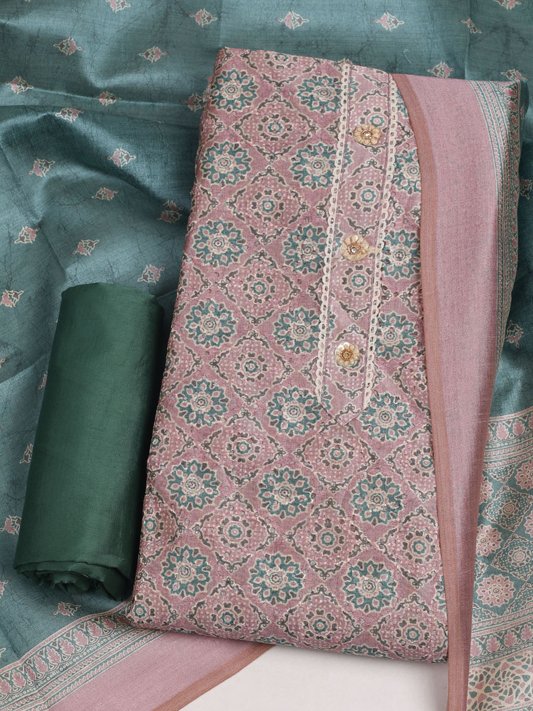 Printed Cotton Unstitched Suit With Pant & Dupatta