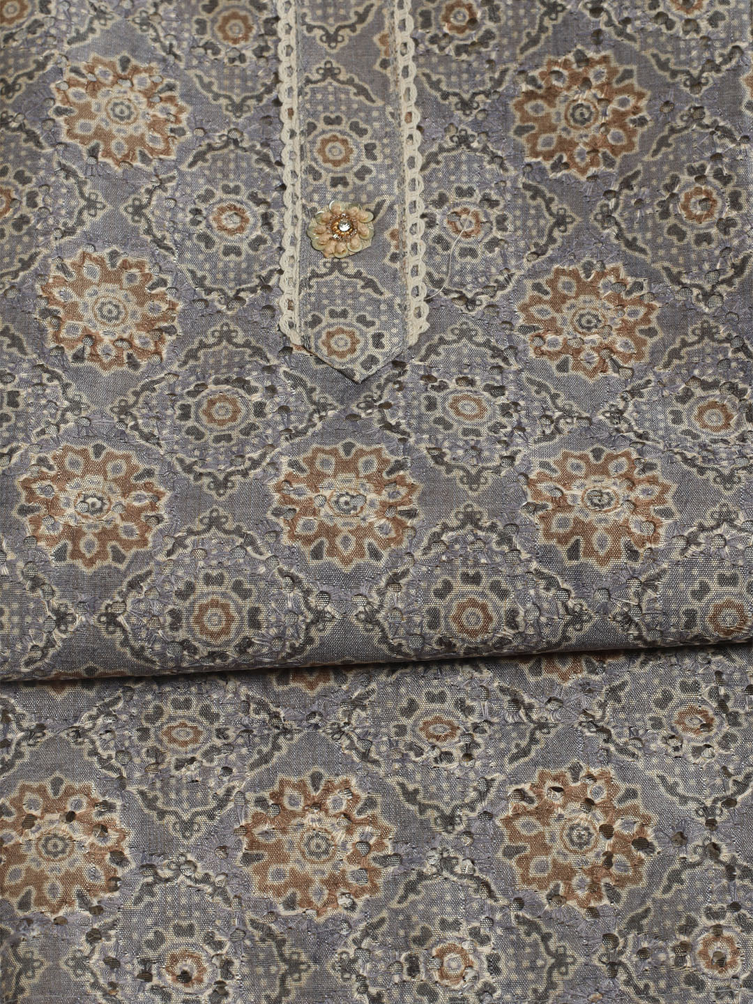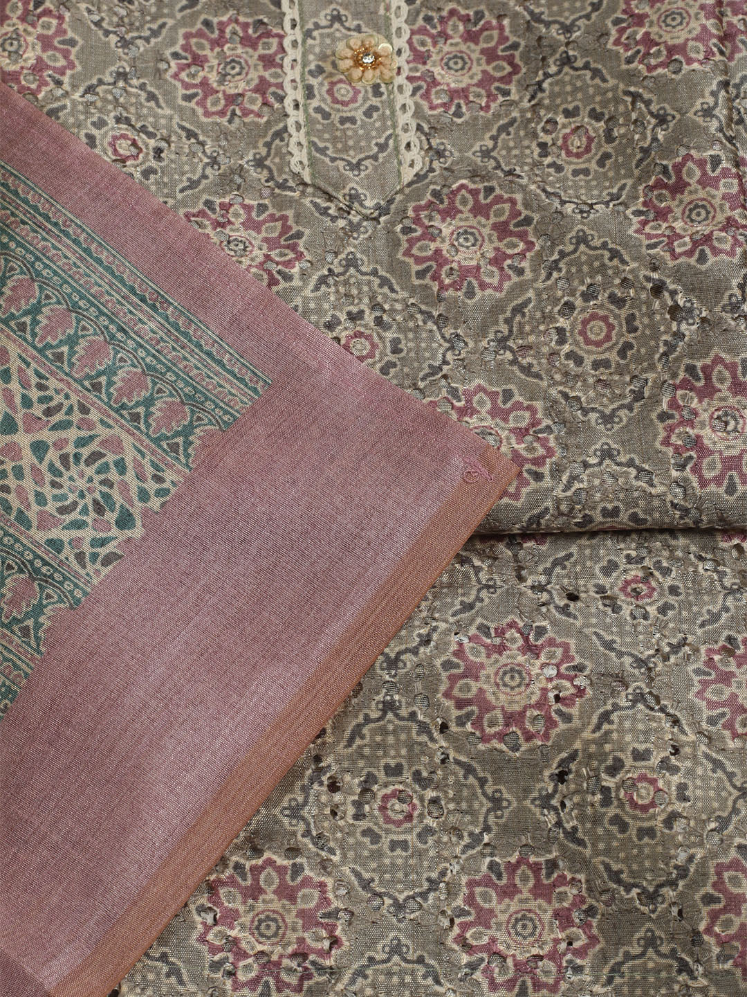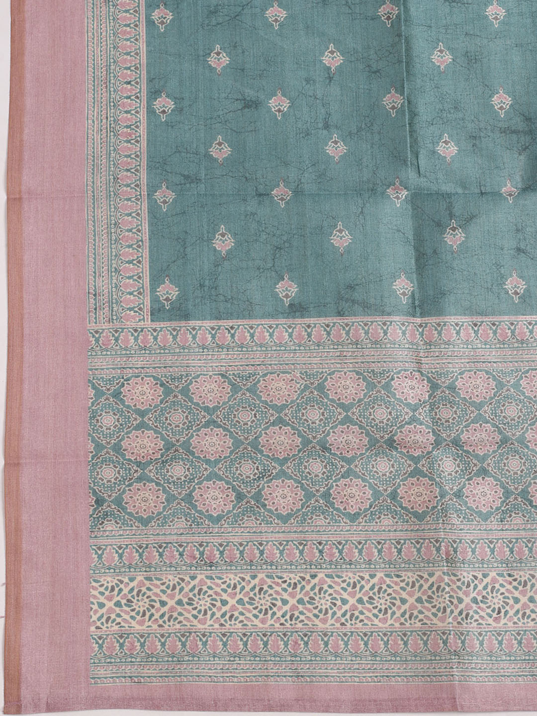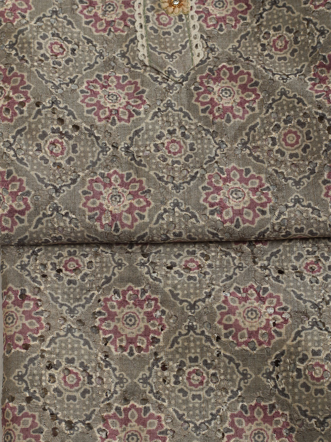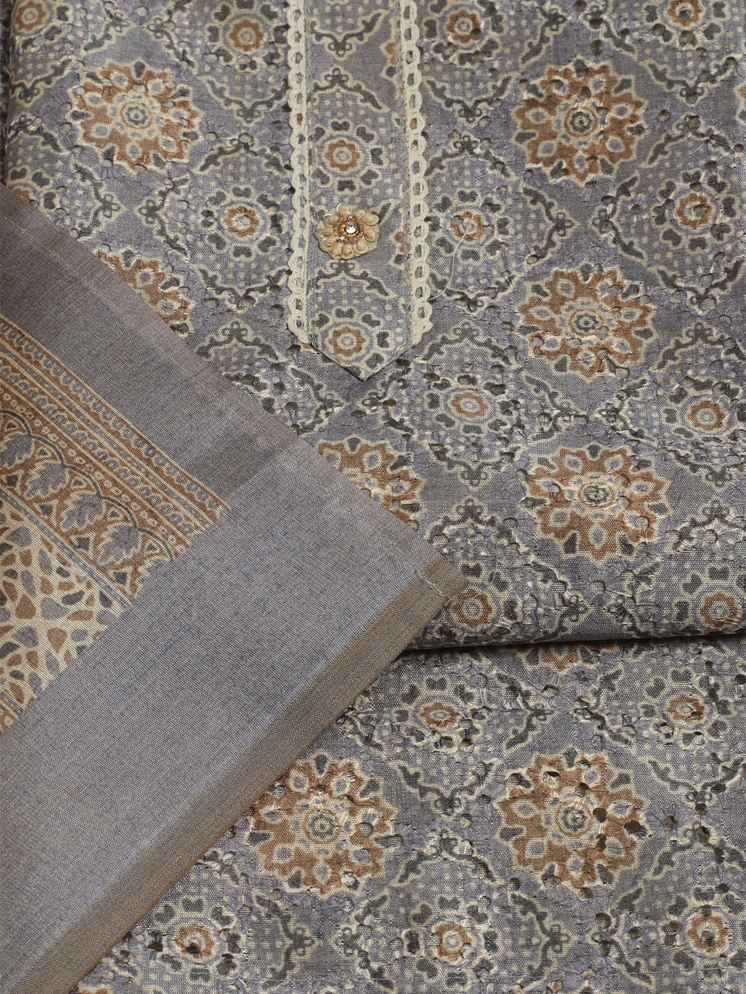 Printed Cotton Unstitched Suit With Pant & Dupatta