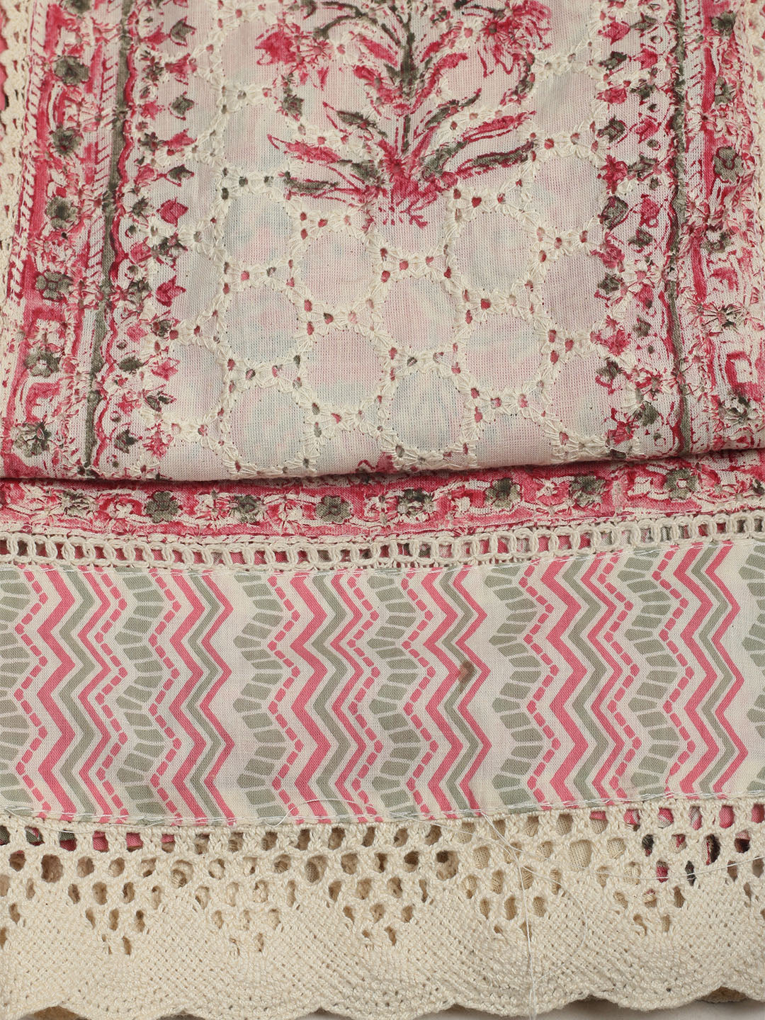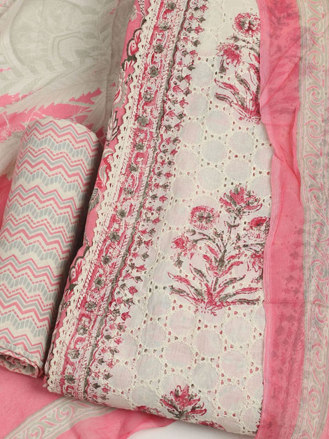 Printed Cotton Unstitched Suit With Pant & Dupatta